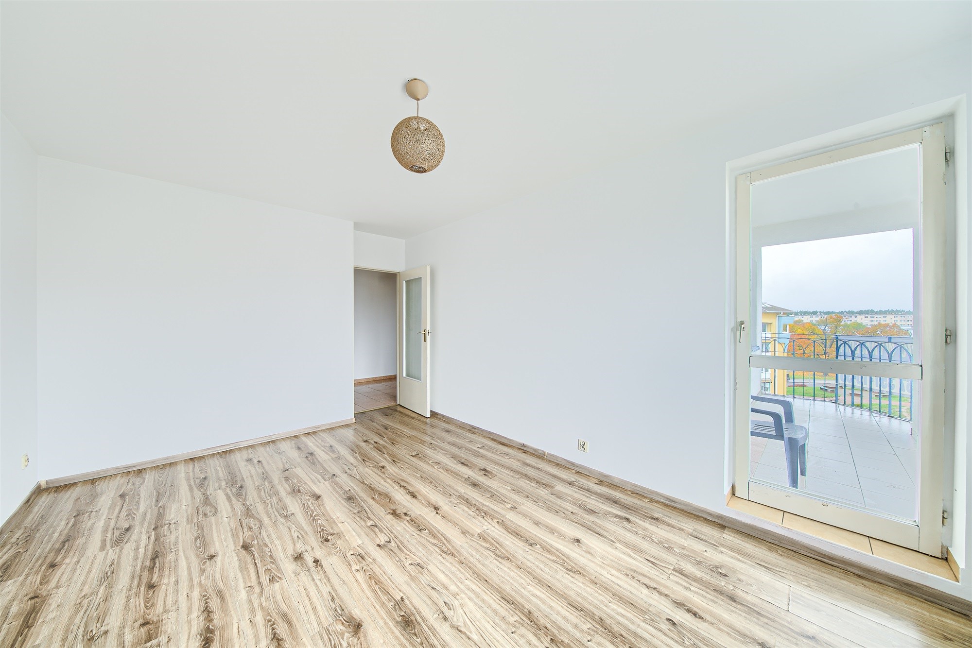 - duży pokój (na podłodze panele) z wyjściem na przestronną loggię,