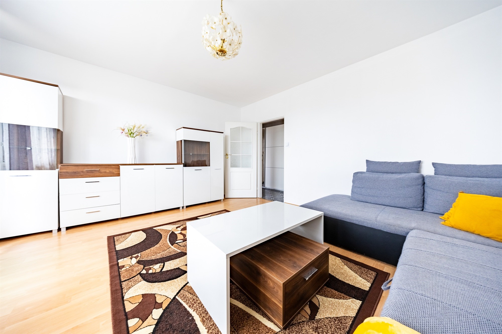 Mieszkanie składa się z jasnego i przestronnego salonu, który posiada duży balkon. To idealne miejsce na poranną kawę lub wieczorny relaks na świeżym powietrzu.
