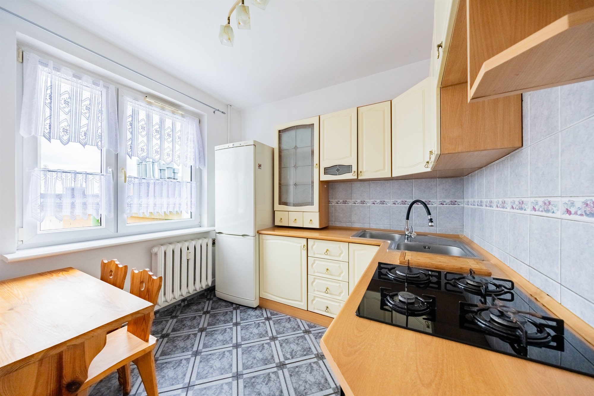 Dwie sypialnie zapewniają prywatność, a osobna kuchnia jest idealna do przygotowywania domowych posiłków.