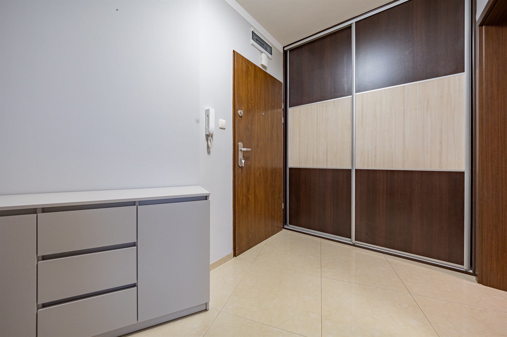 Głównym atutem jest przynależna, przeszklona loggia, która dzięki swojej aranżacji może pełnić funkcję dodatkowego pomieszczenia – idealnego miejsca do pracy zdalnej, czytania książek, relaksu czy wypicia porannej kawy. Do mieszkania przynależy również praktyczna komórka lokatorska, ułatwiająca przechowywanie.