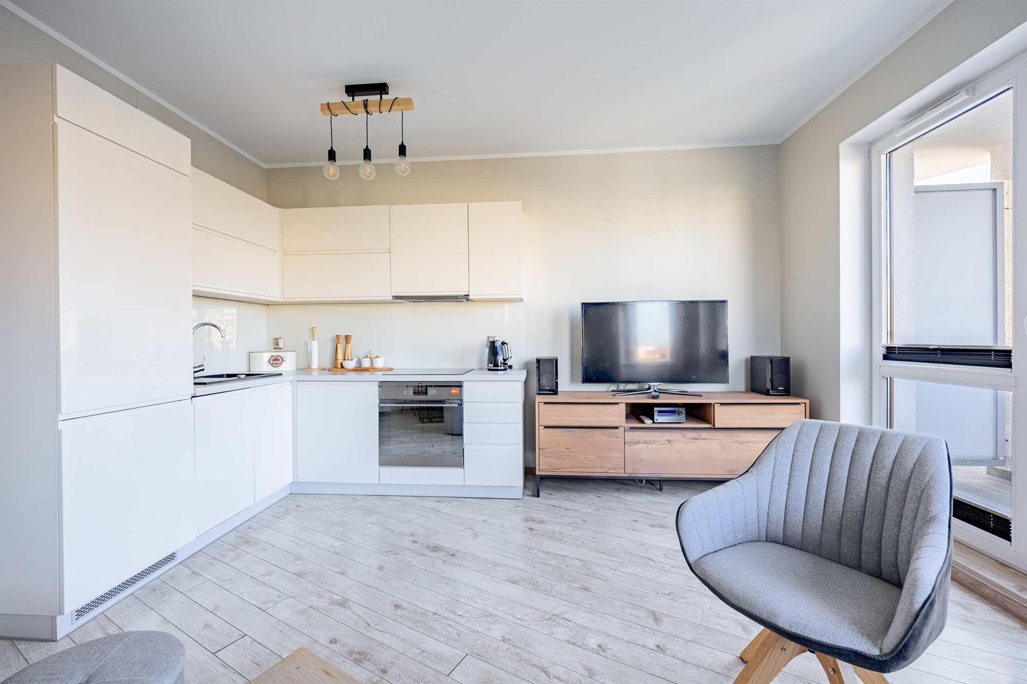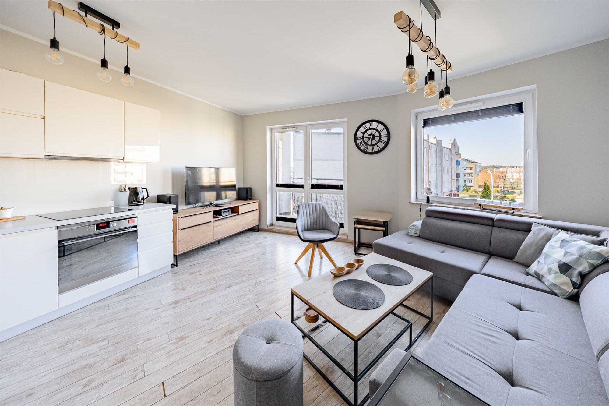 Przemyślany rozkład obejmuje przestronny salon z aneksem kuchennym, przytulną sypialnię, łazienkę z kabiną prysznicową oraz komunikację zapewniającą pełną ergonomię. Mieszkanie jest wyposażone w kompletne umeblowanie oraz sprzęt RTV/AGD, co umożliwia natychmiastowe wprowadzenie się bez dodatkowych nakładów.