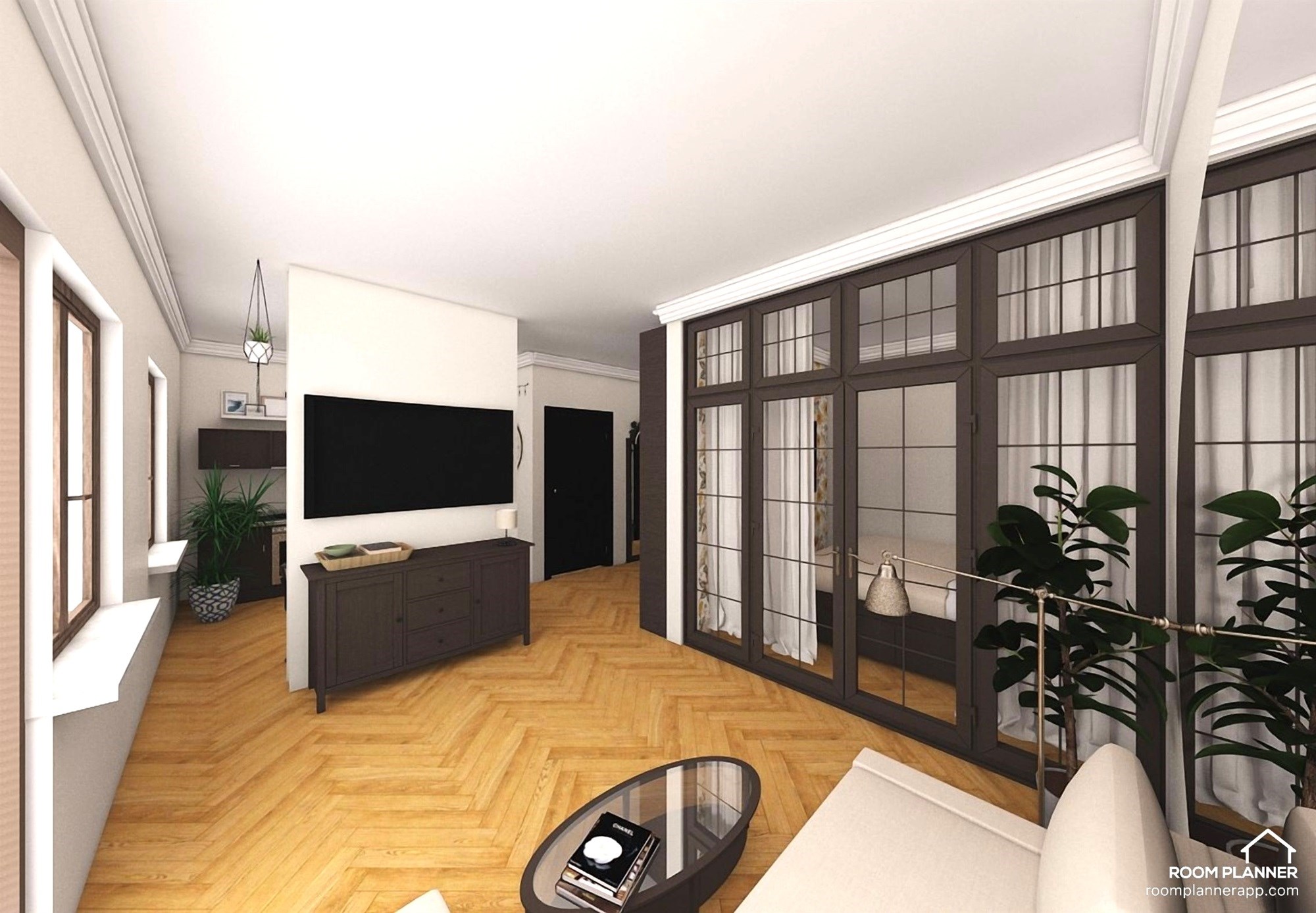 - Pokój dzienny ze strefą sypialnianą – ok. 18,5 m²