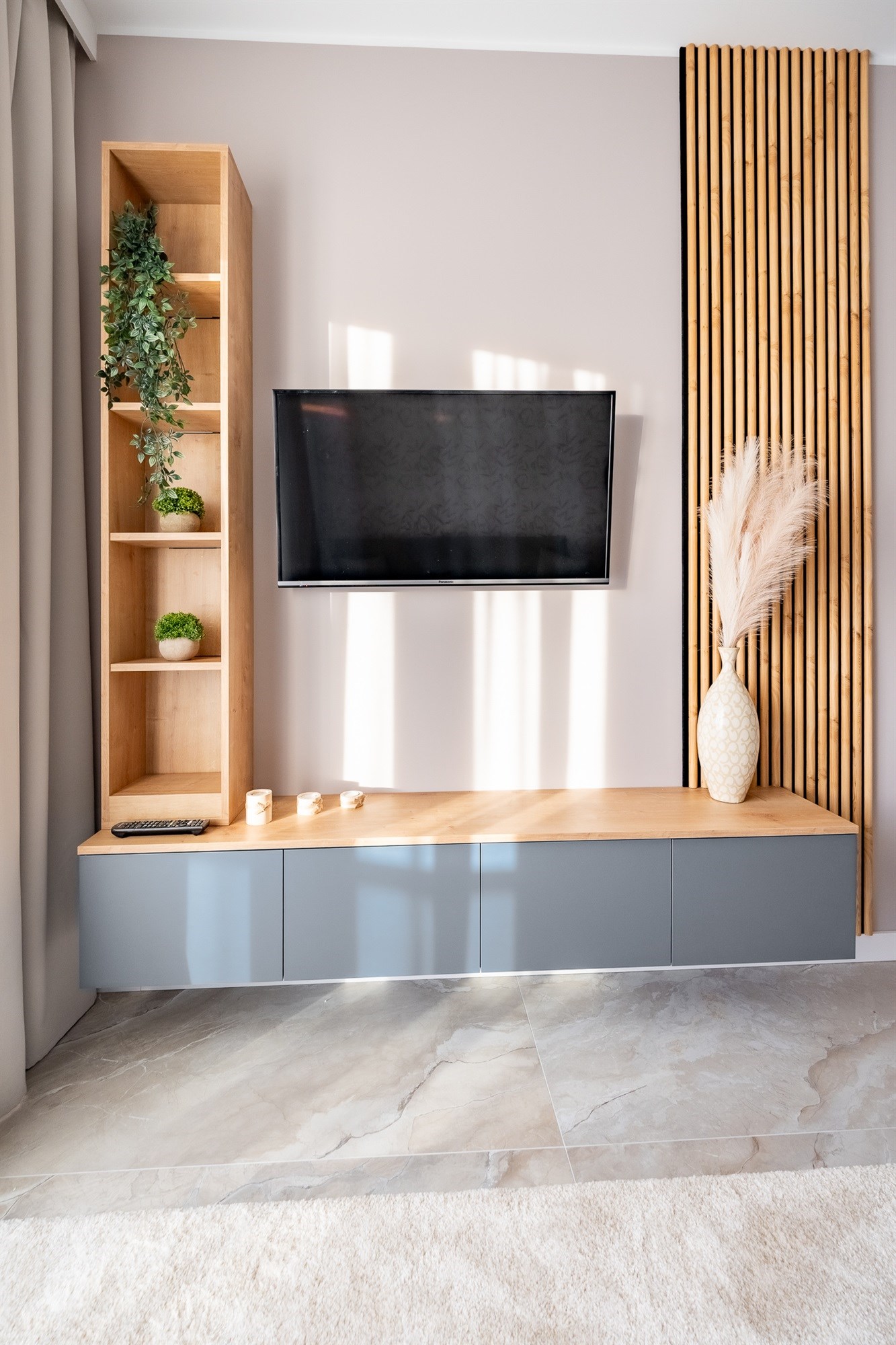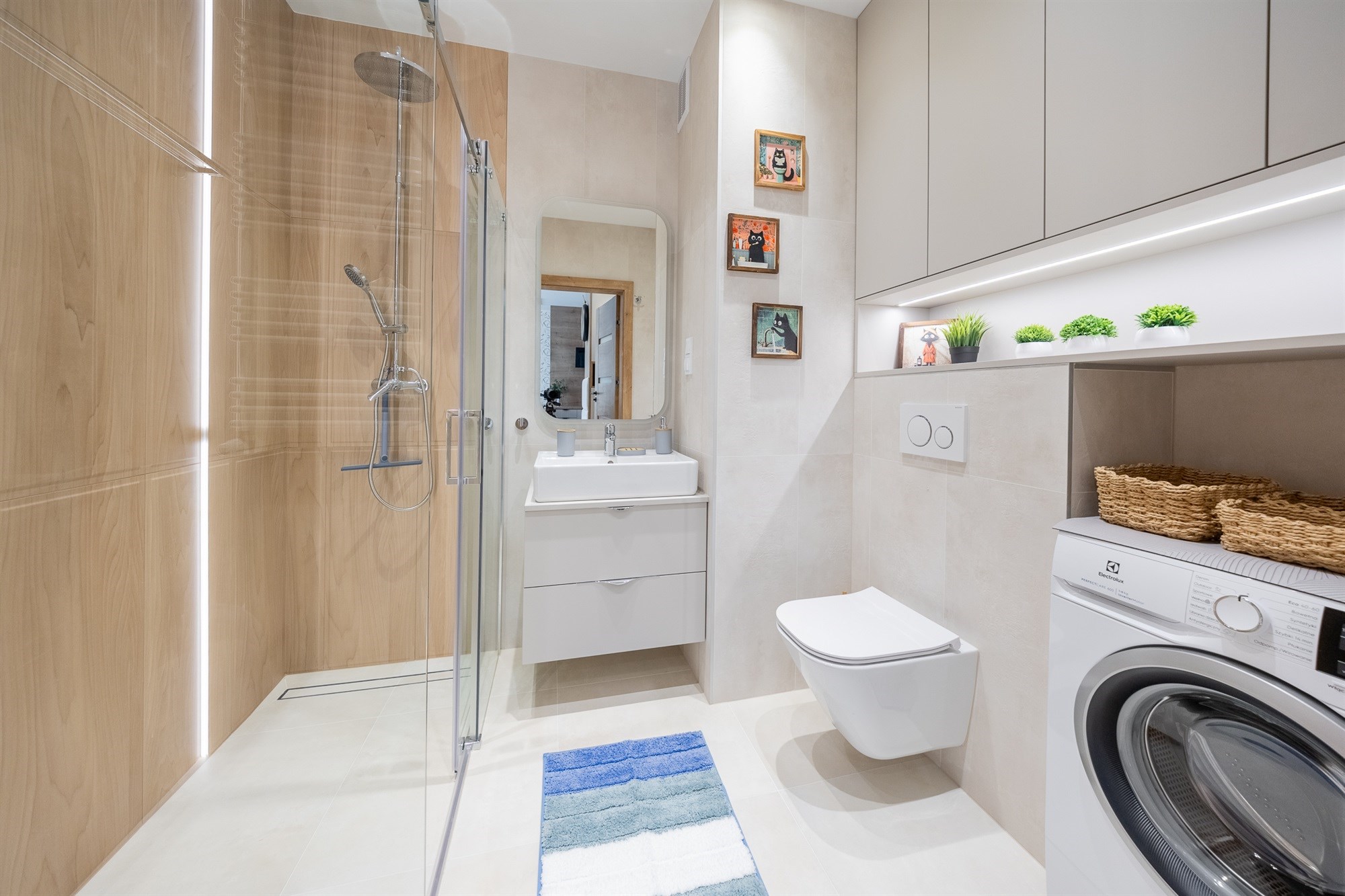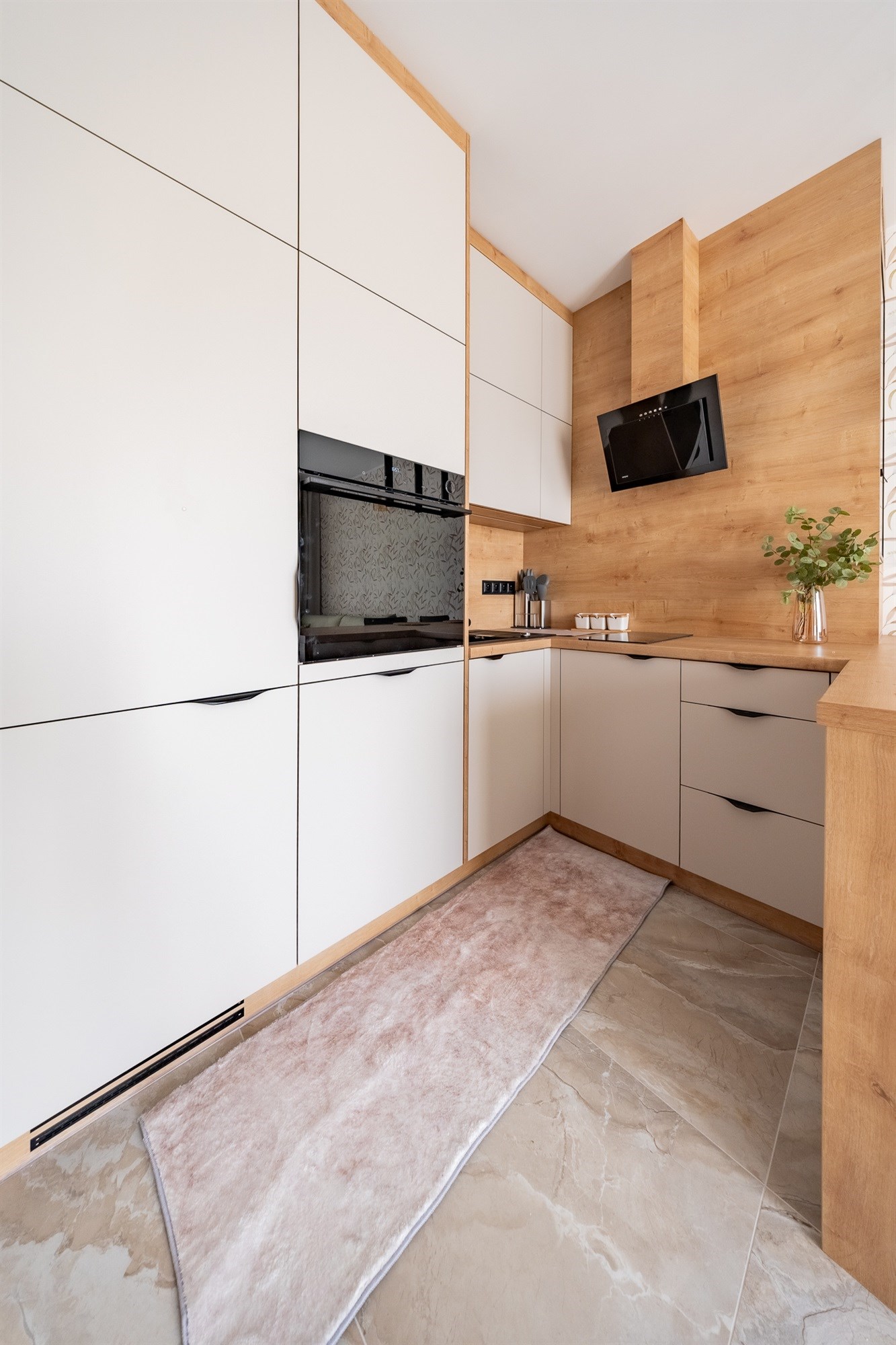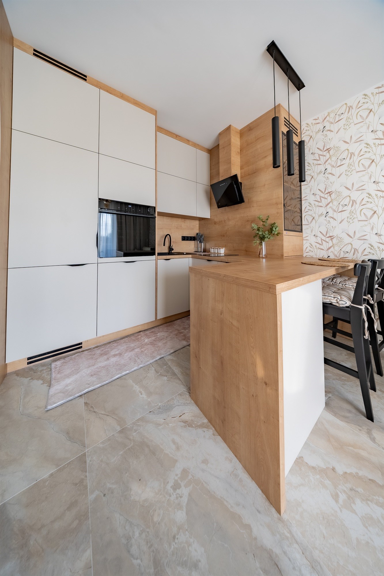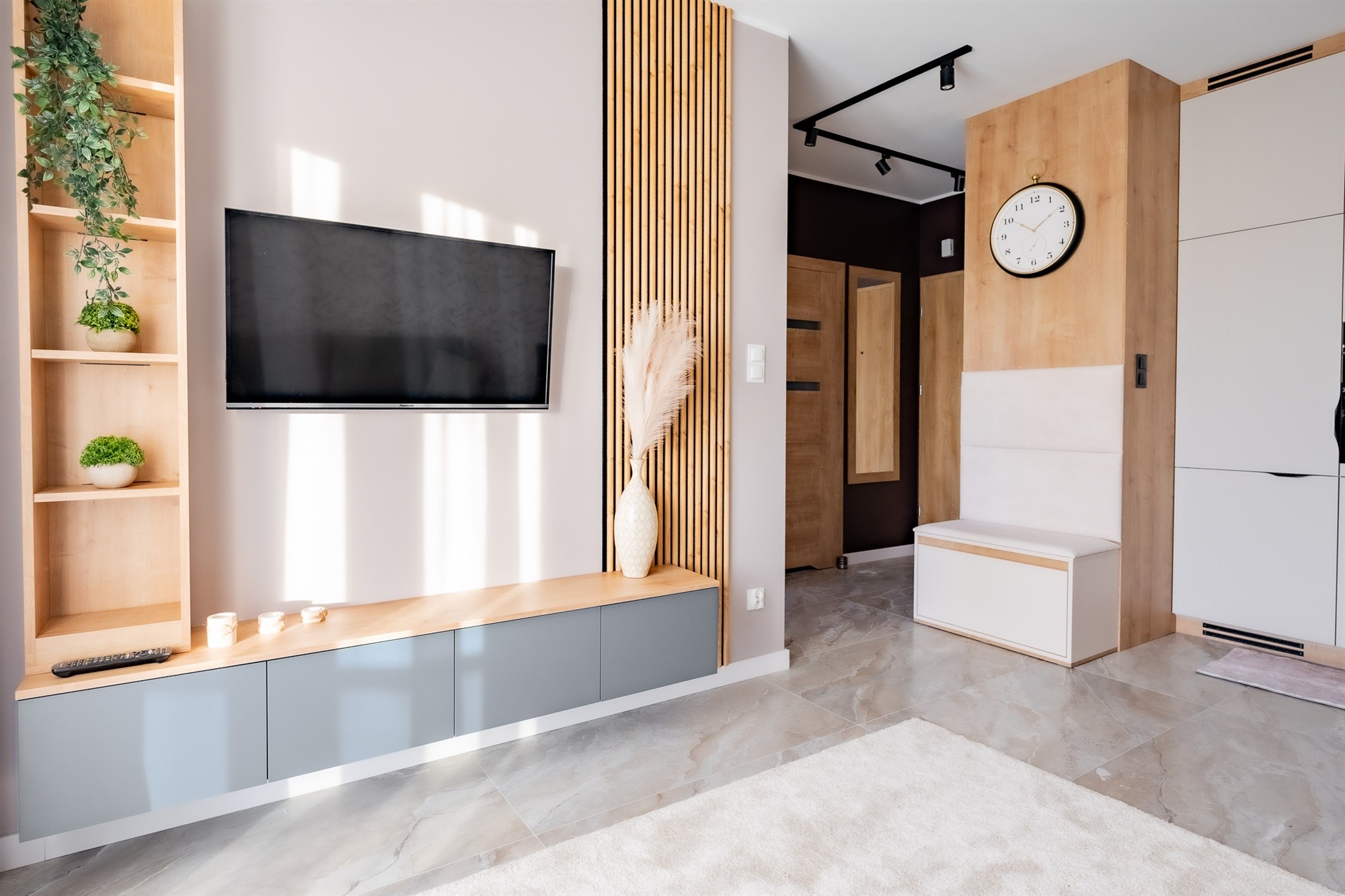 Mieszkanie wykończone jest materiałami z najwyższej jakości, które tworzą elegancką i funkcjonalną przestrzeń do codziennego życia.