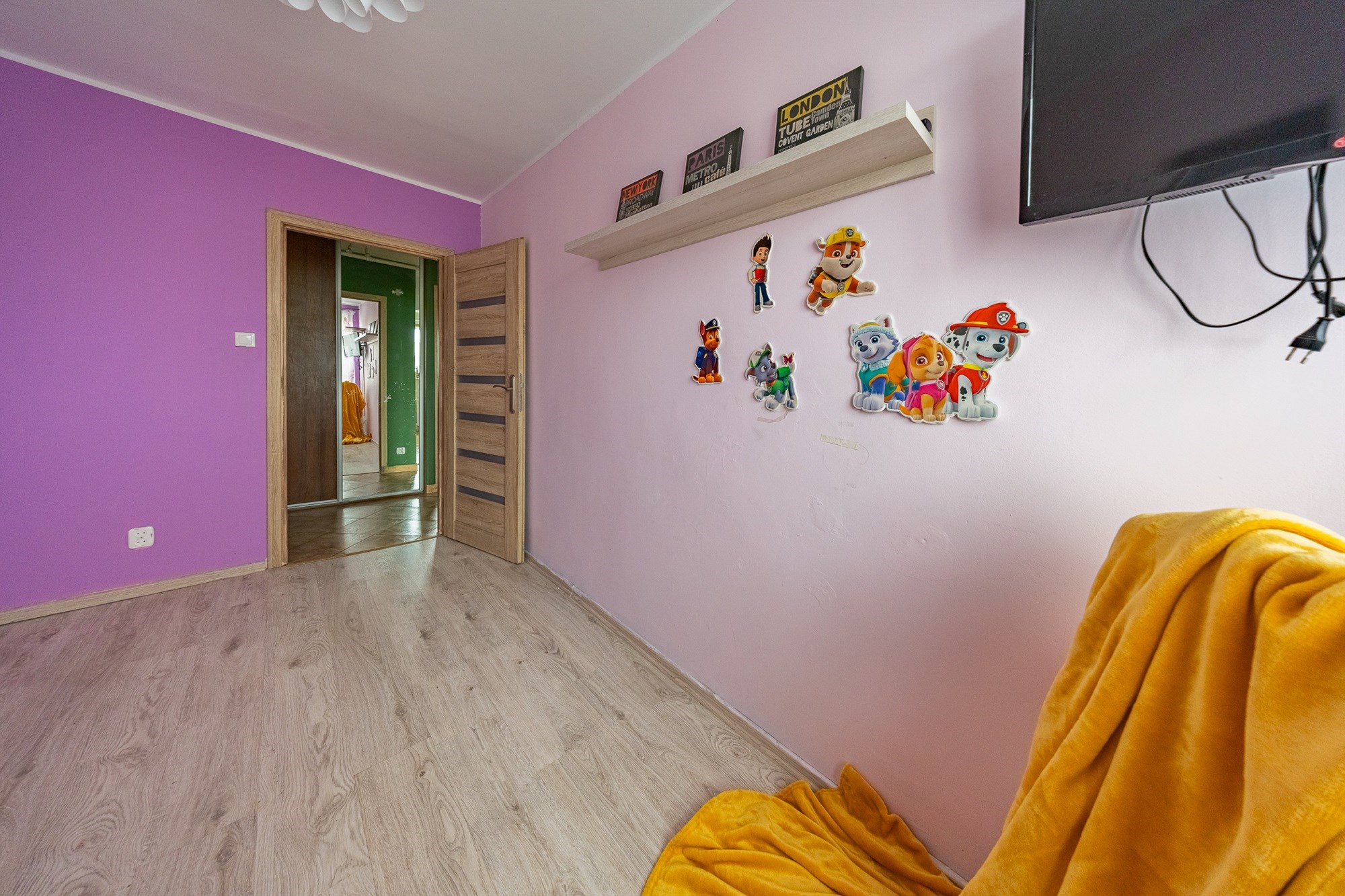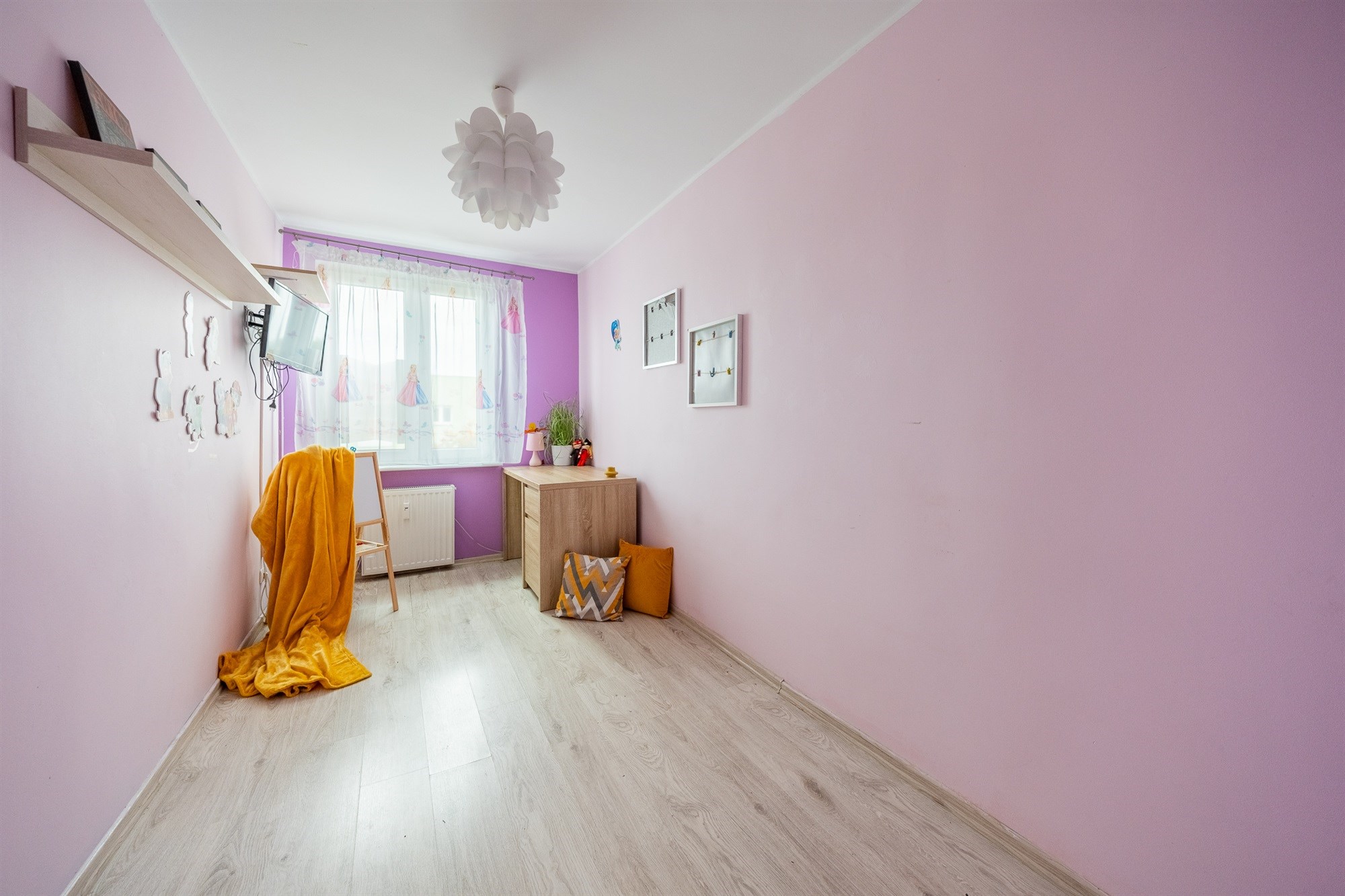 - Na podłogach: panele i płytki