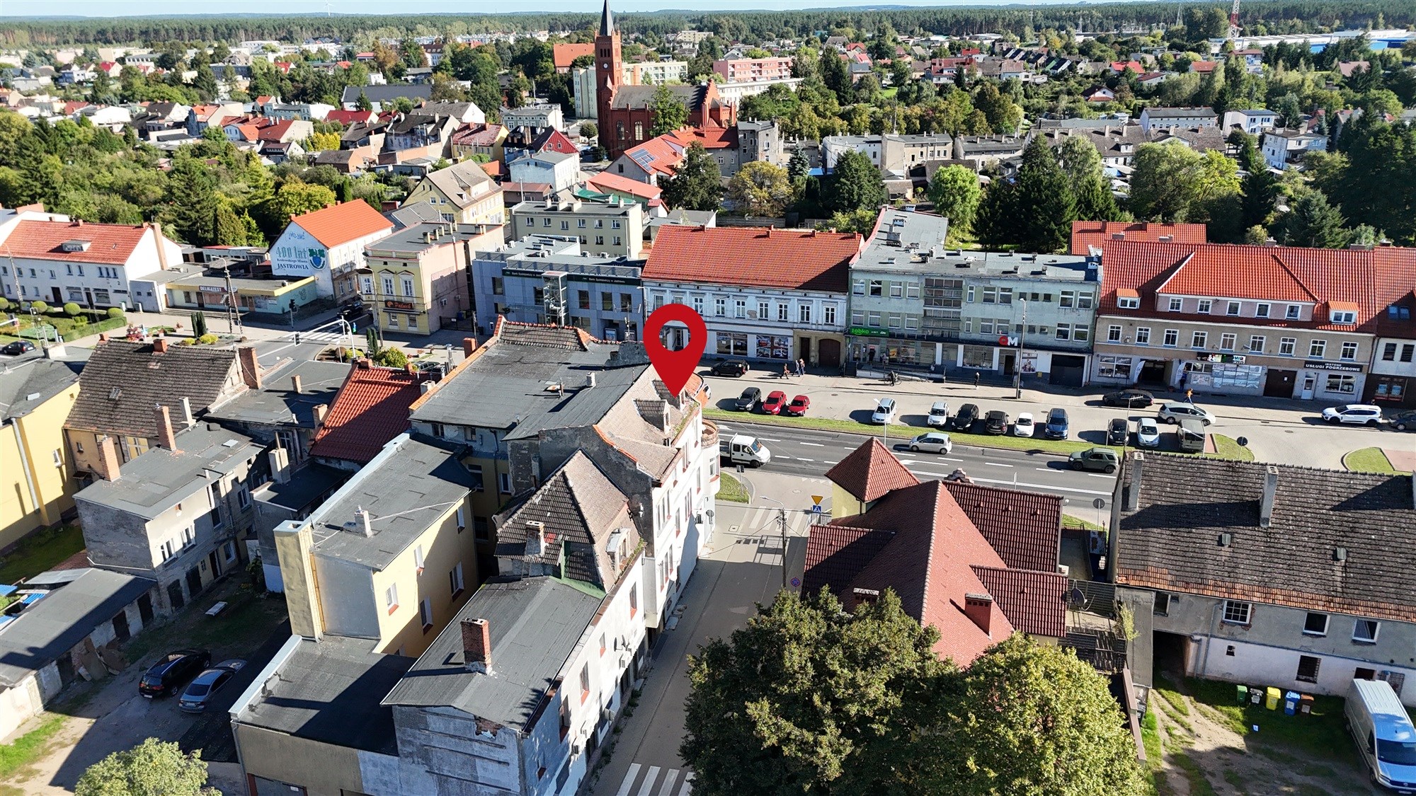 Nieruchomość położona w samym sercu Jastrowia, przy ul. Jagiellońskiej i Poznańskiej – głównej ulicy miasta. To doskonała lokalizacja o dużym natężeniu ruchu, idealna zarówno pod inwestycję mieszkaniową, jak i usługową.