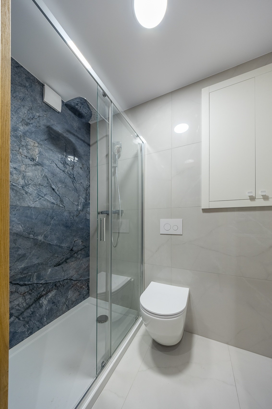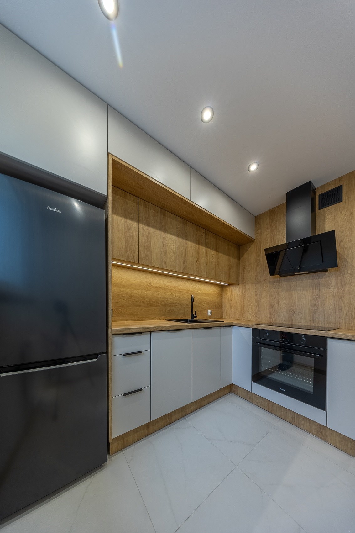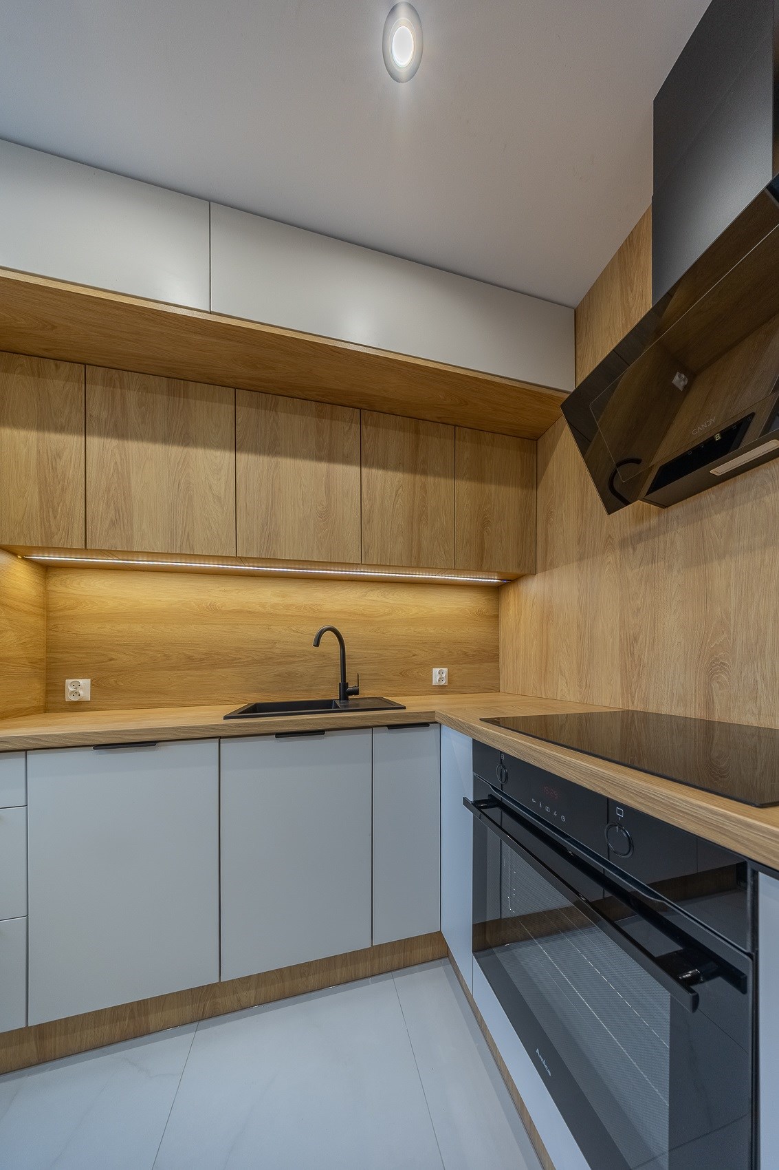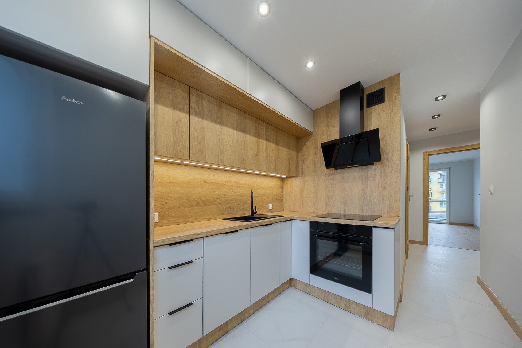 Remont wykonano kompleksowo – skute zostało wszystko aż do muru, a cały lokal zyskał nowe życie na poziomie premium. Na podłogach znajdują się panele wysokiej jakości, ściany karton - gips, podwieszane sufity, a wszystkie instalacje wykonano od nowa. W kuchni zamontowano nowoczesną zabudowę na wymiar wraz z nowym sprzętem AGD na gwarancji, a w łazience zamontowano kompletne, nowe wyposażenie łazienkowe — od ceramiki i armatury po dużą kabinę prysznicową oraz wysokiej jakości płytki.