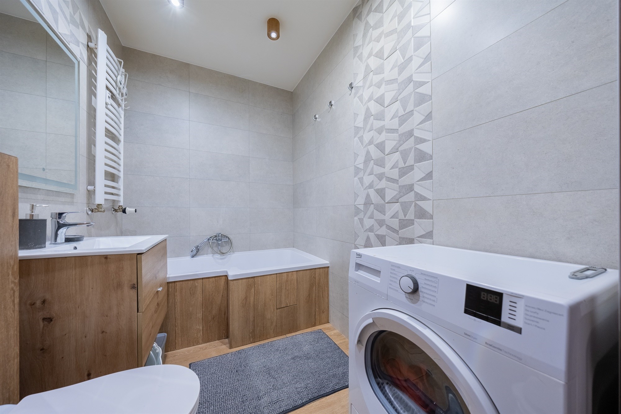 - wyraźnie wydzielona strefa dzienna i prywatna – układ ceniony przez klientów i najemców.