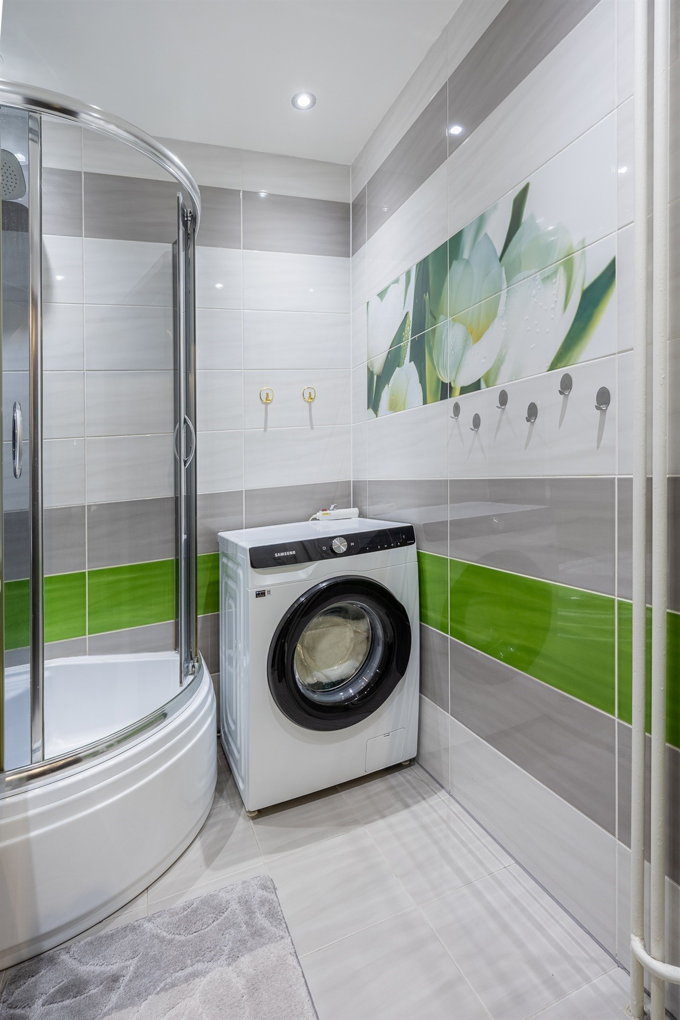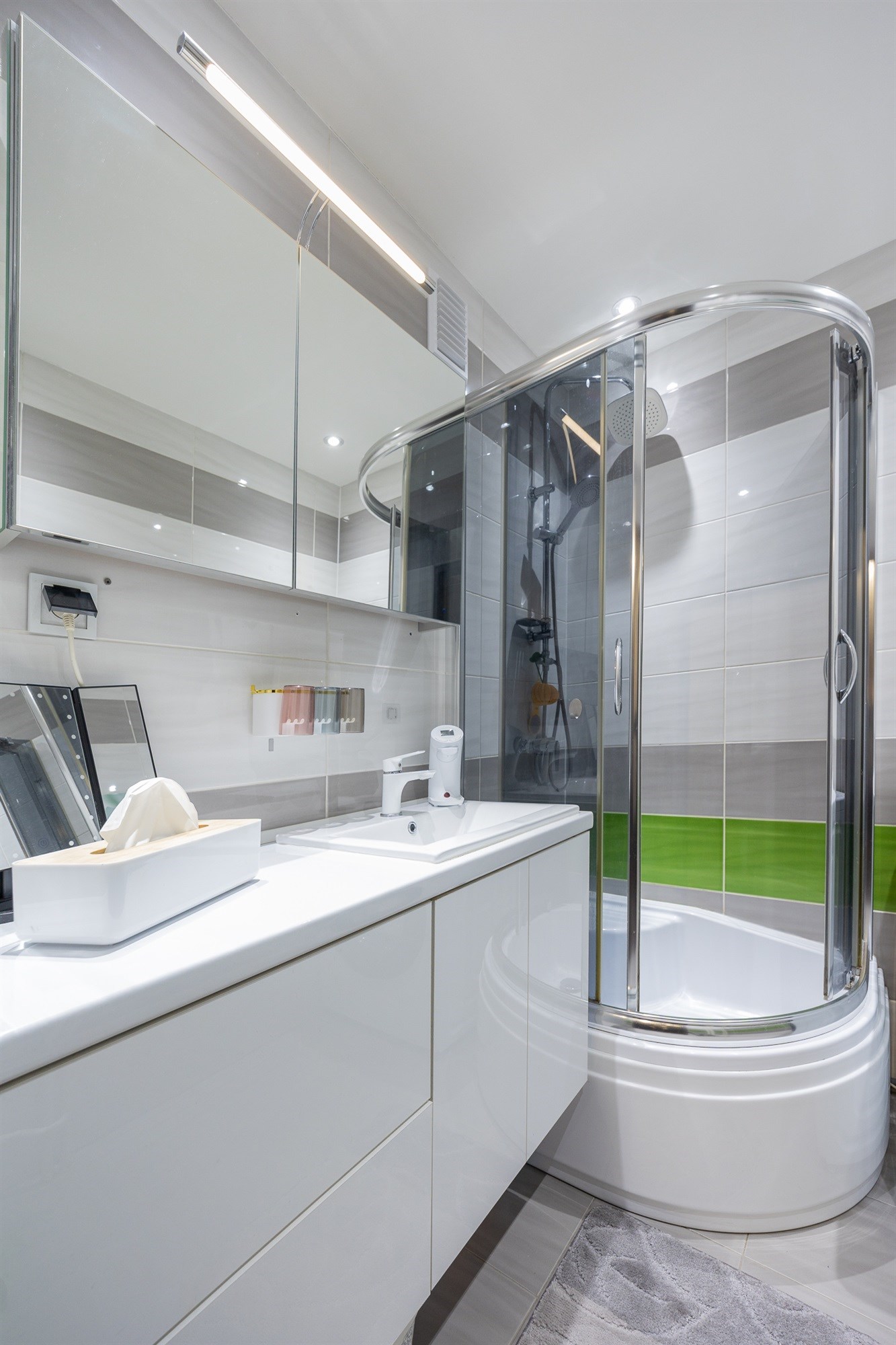 Komfortowa łazienka z wygodną kabiną prysznicową.