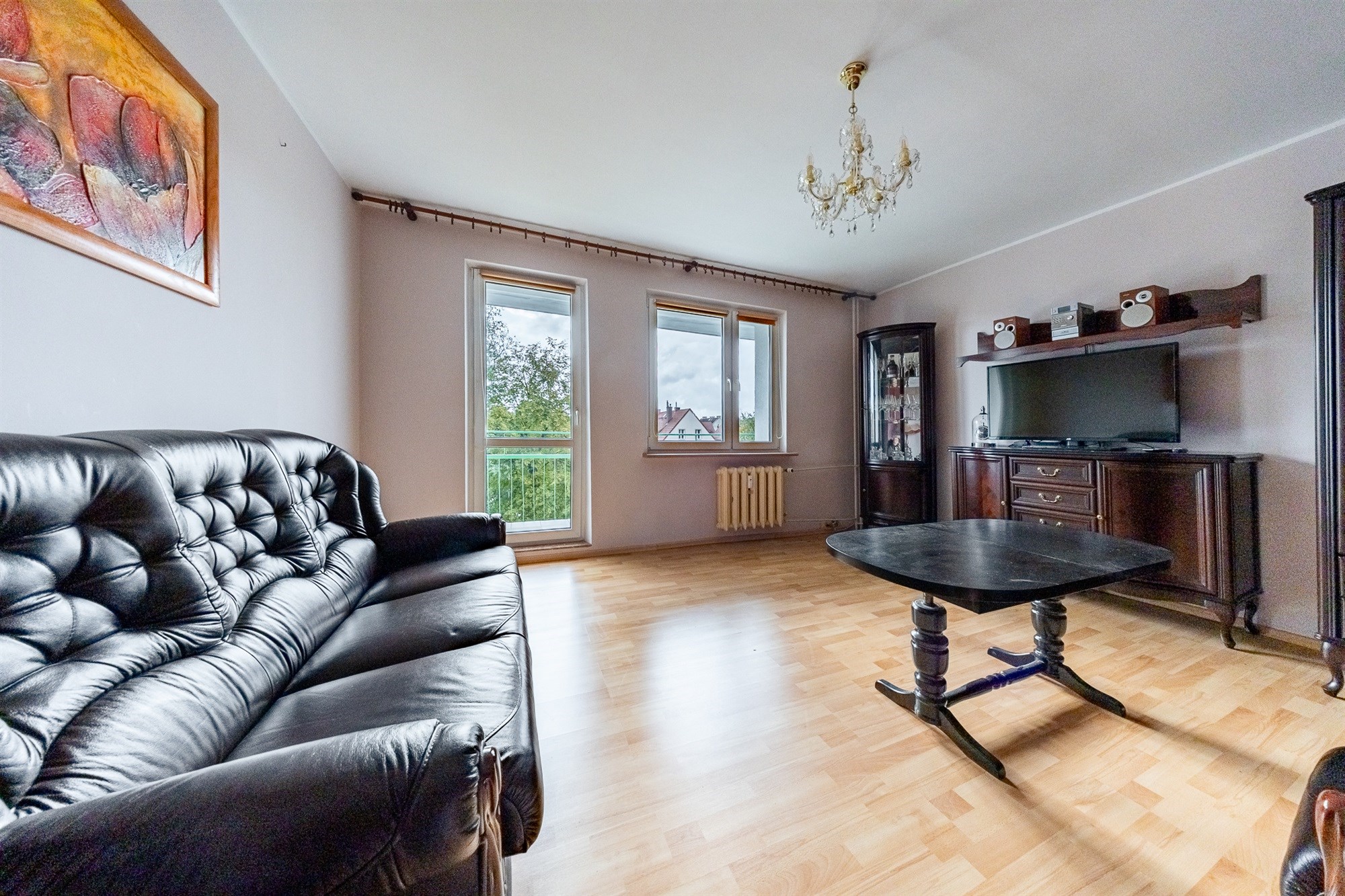 - Duży balkon z widokiem na zieleń