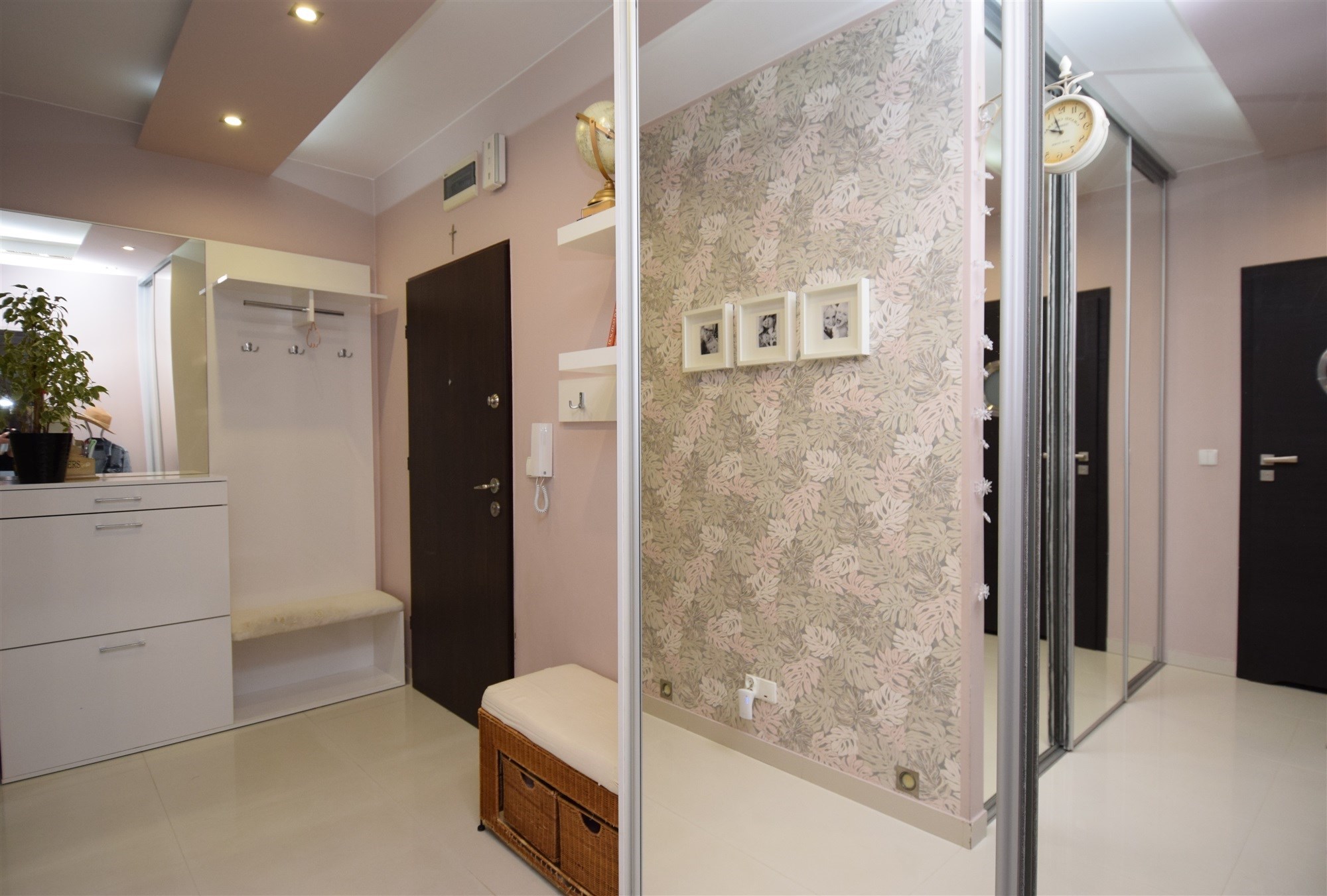 • Duży, funkcjonalny przedpokój z zabudową typu „komandor”, szafkami na obuwie i wygodnymi siedziskami.