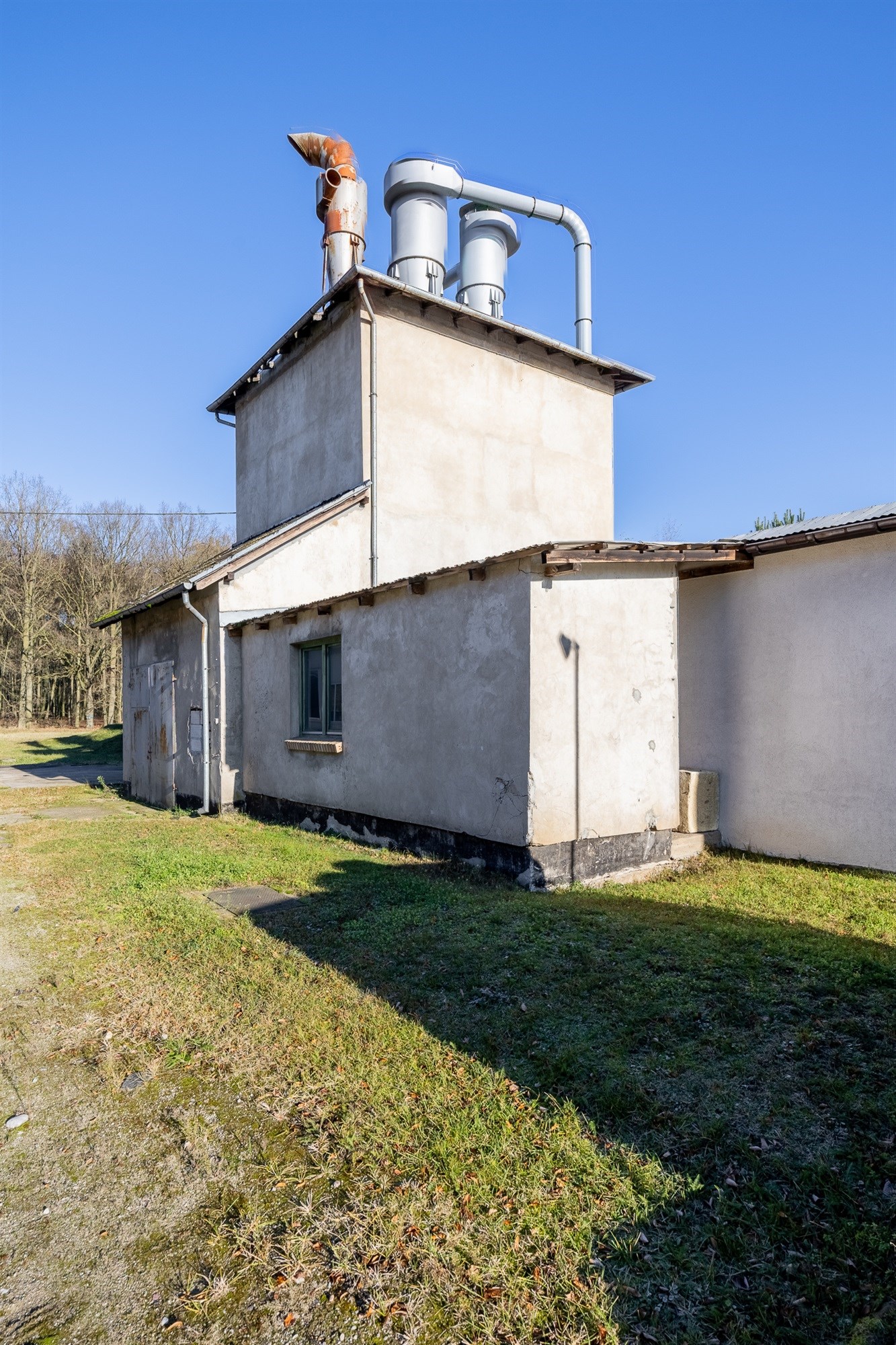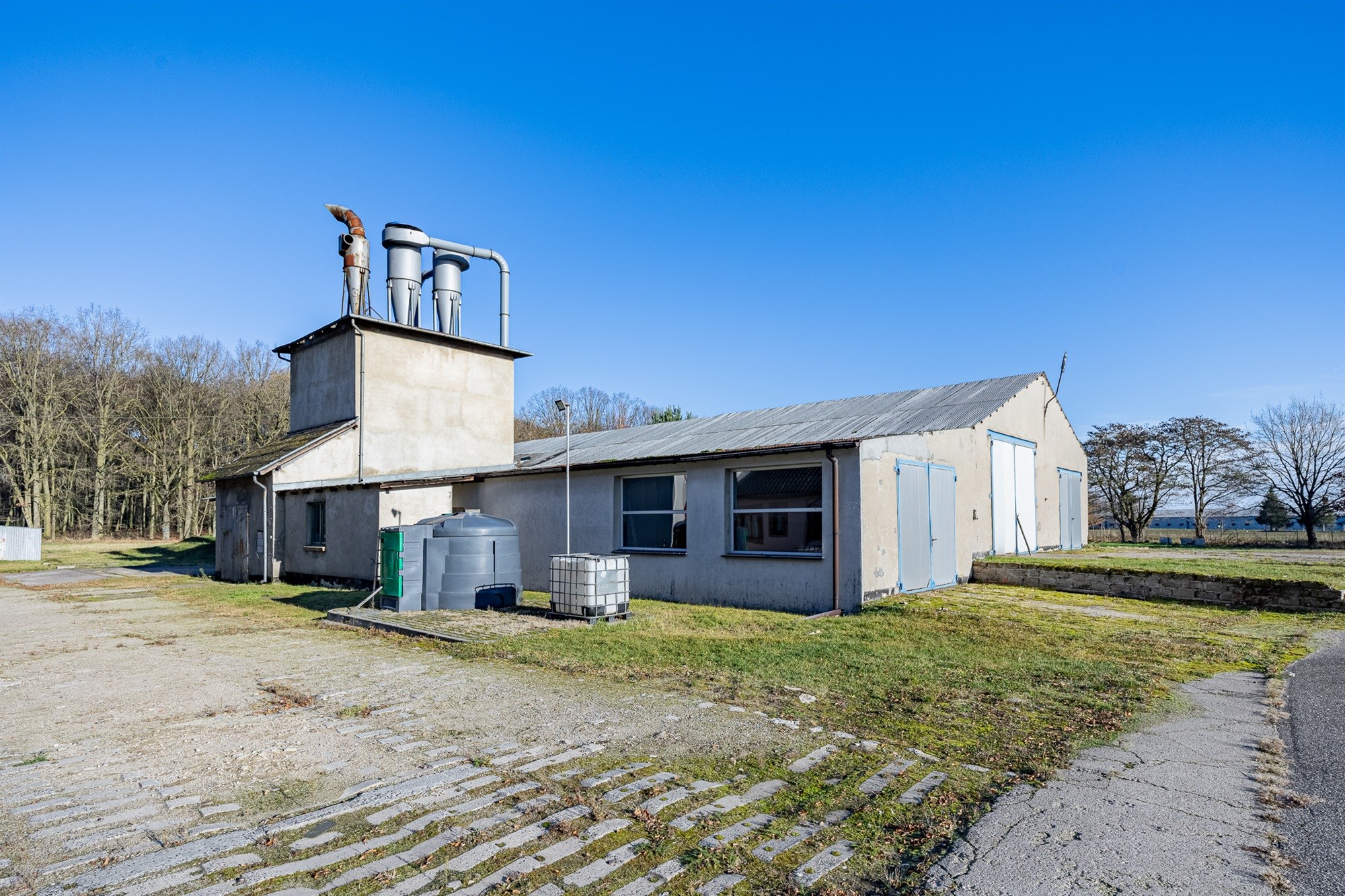 - budynki pomocnicze: wiata trakowa (250 m²), budynek kotłowni/magazyn (zdemontowane urządzenia kotłowni) ,