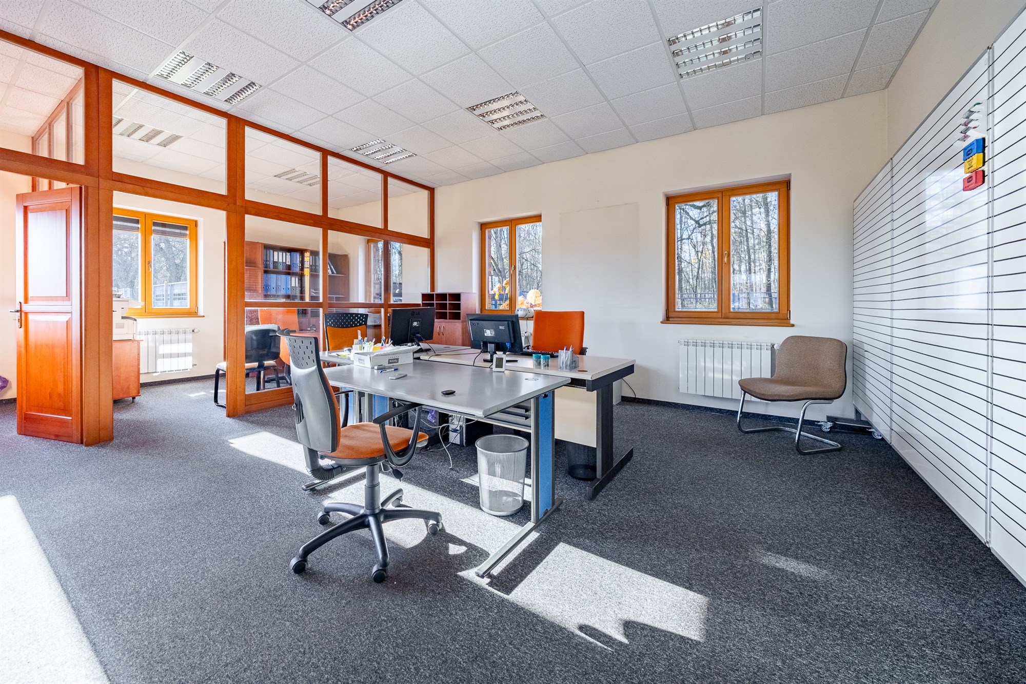 - układ: jasne pomieszczenia biurowe, serwerownia/archiwum, pełne zaplecze socjalne (kuchnia, jadalnia, szatnie, natryski, sanitariaty).