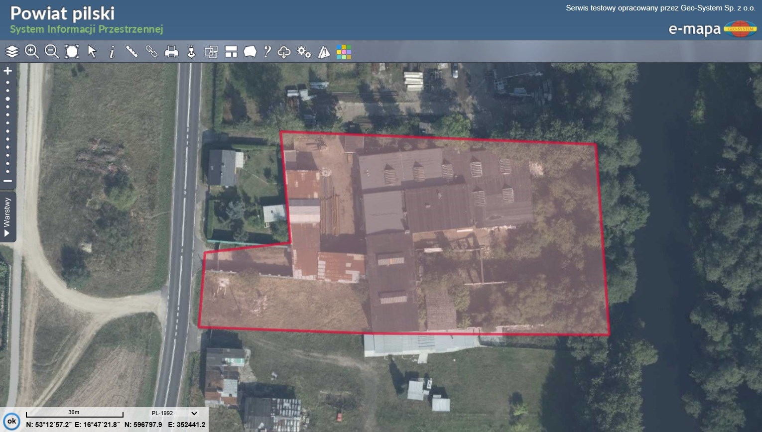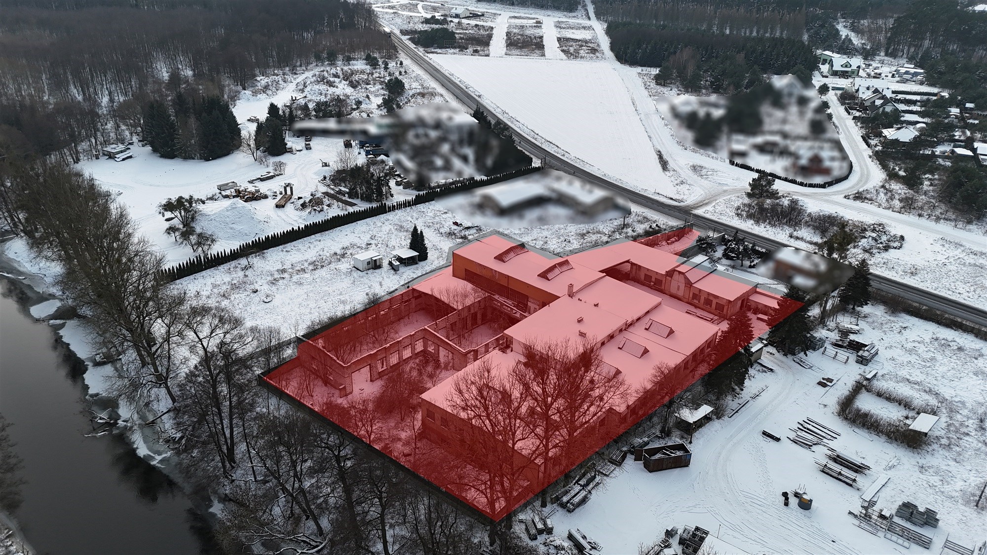 Nieruchomość od wschodniej strony graniczy z linią brzegową rzeki, która stanowi naturalną granicę działki. Takie usytuowanie łączy potencjał przemysłowy z walorami krajobrazowymi.