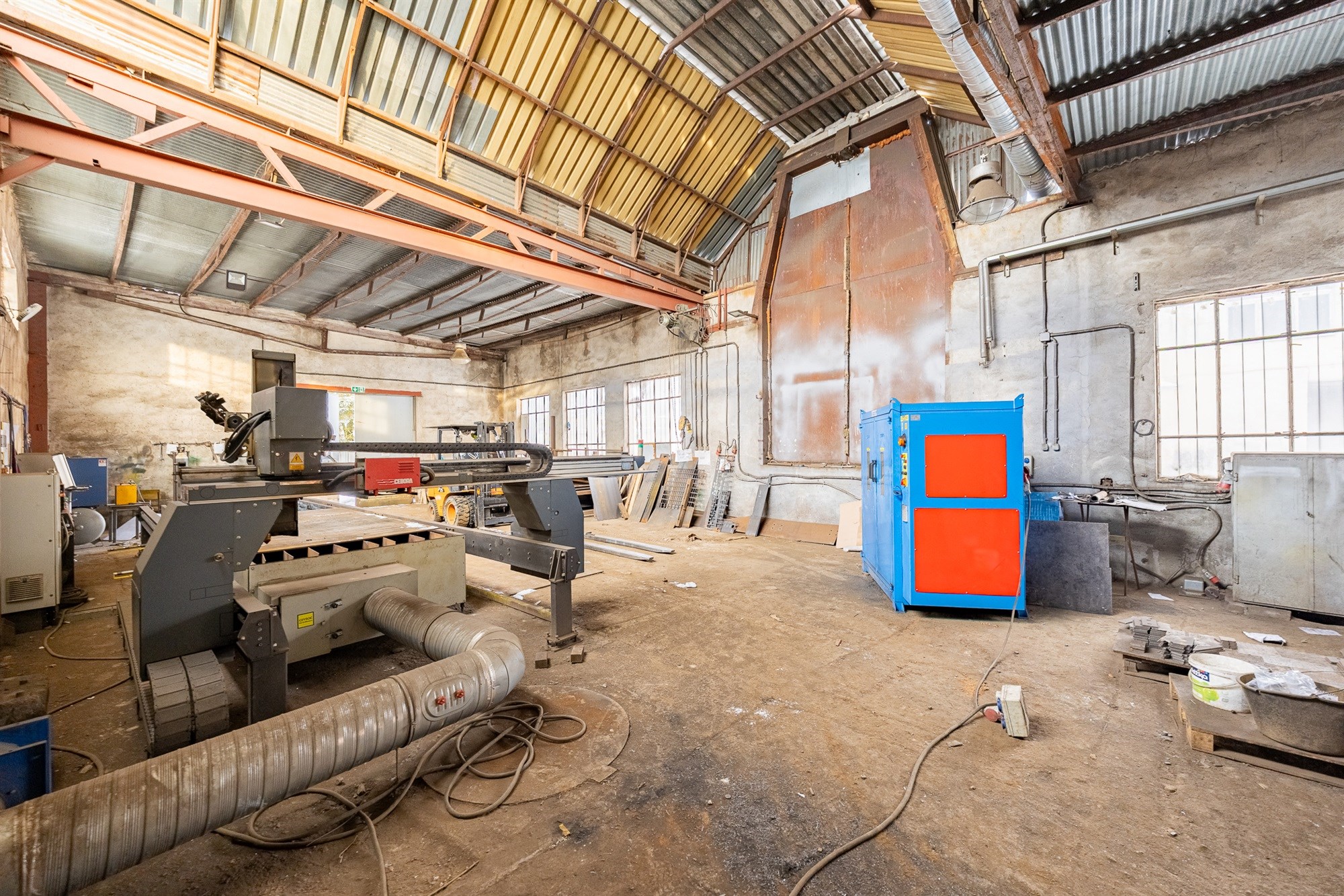 - Hala z suwnicą 2 tony (457 m²): gotowa do użytku, świetna na linię produkcyjną lub montażową.