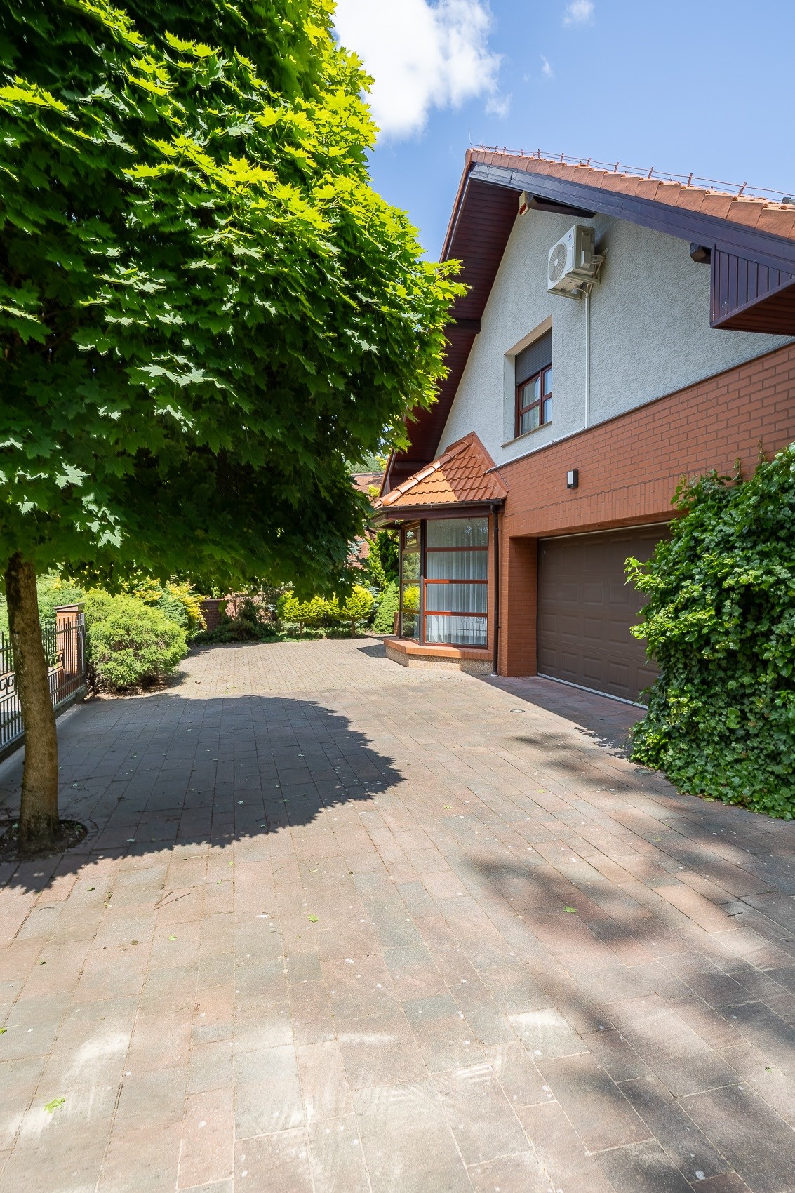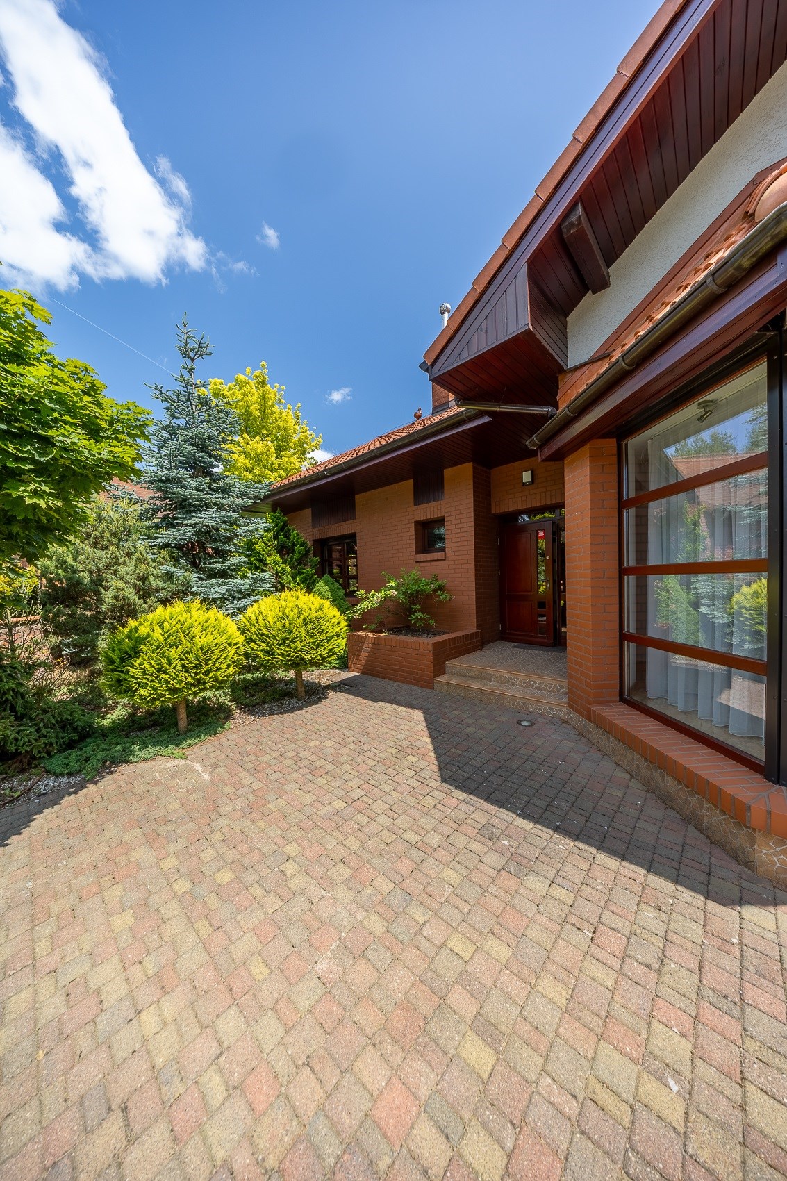 Całość posesji ogrodzona – od frontu reprezentacyjne ogrodzenie z klinkierowych słupków i kutych przęseł, na terenie posesji znajduje się miejsce na dodatkowe parkowanie.