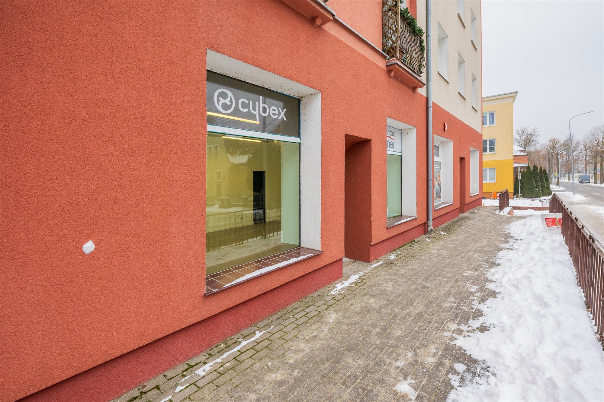 - Pełna dostępność: dojście do lokalu jest zaopatrzone w wygodny podjazd dla wózków, dzięki czemu Twoja oferta jest dostępna dla każdego – od osób niepełnosprawnych po rodziców z wózkami dziecięcymi (kluczowe przy gabinetach medycznych czy usługach).