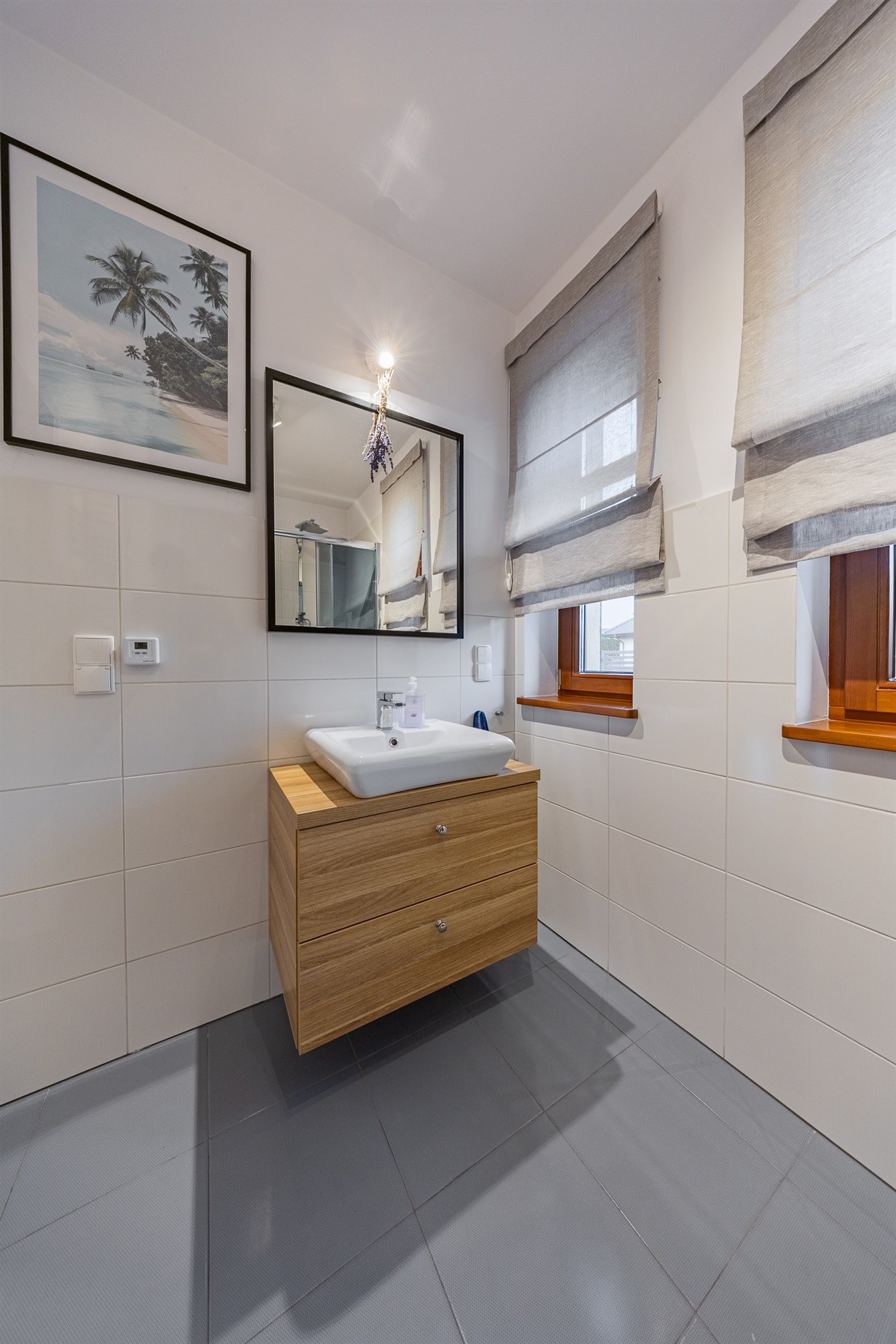 - Garaż (20,97 m²) – zamykany na pilota, z bezpośrednim wejściem do domu. co stanowi ogromny komfort na co dzień. Posiada otwartą przestrzeń aż do dachu, co daje dodatkowe możliwości przechowywania.