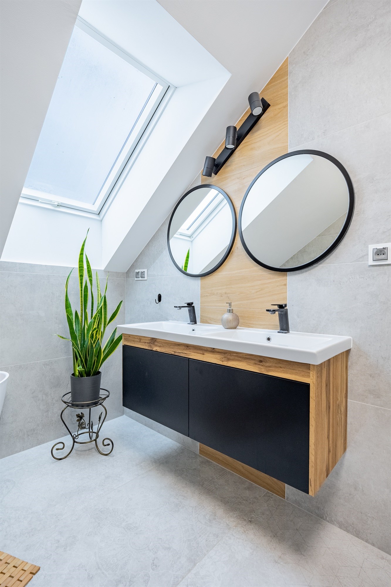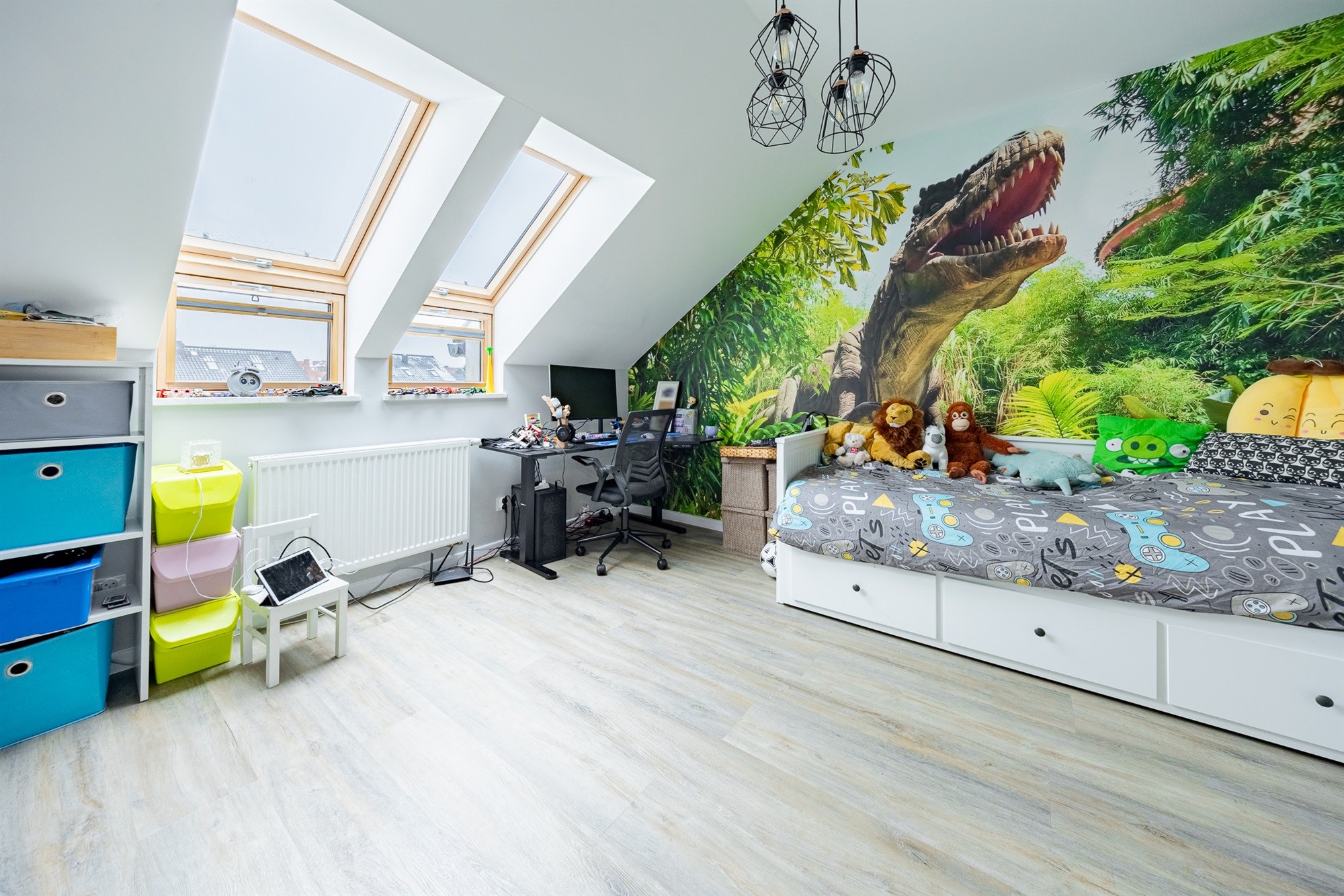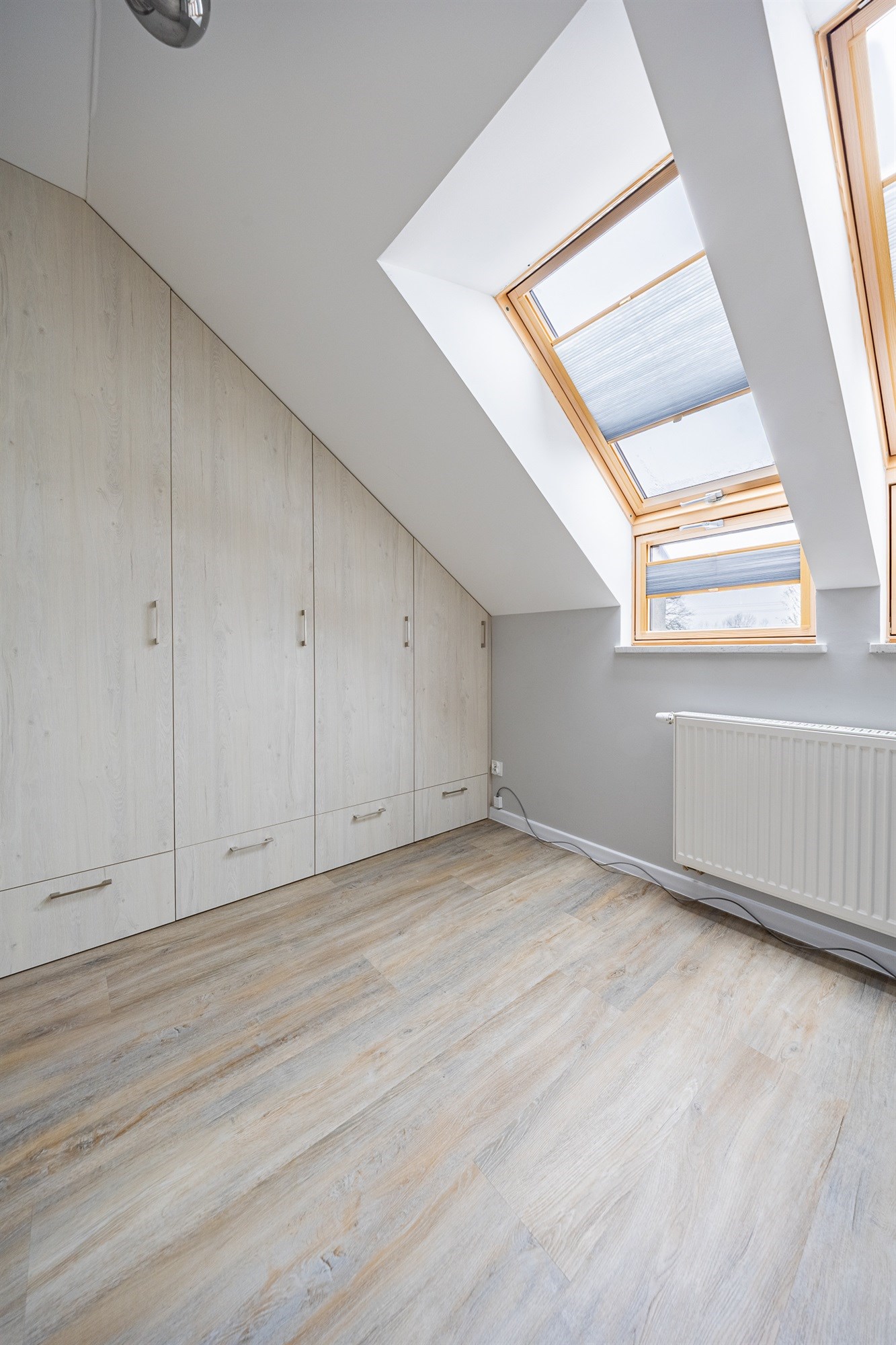 - Trzy sypialnie: (11,34 m², 12,32 m², 8,50 m²) – jasne i ustawne dzięki oknom dachowym kolankowym. Na podłogach komfortowe panele winylowe. W jednym z pokoi szafy w zabudowie