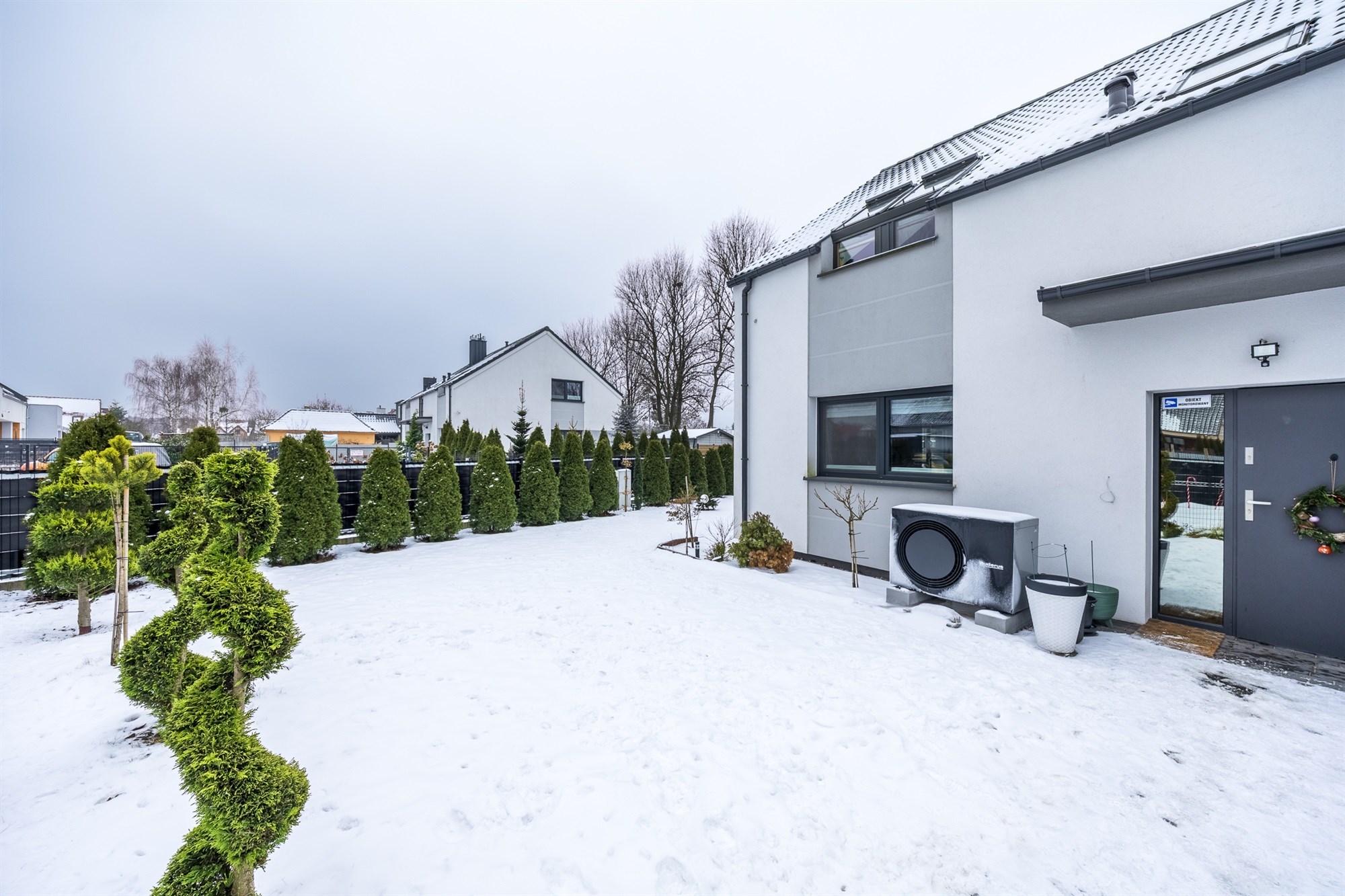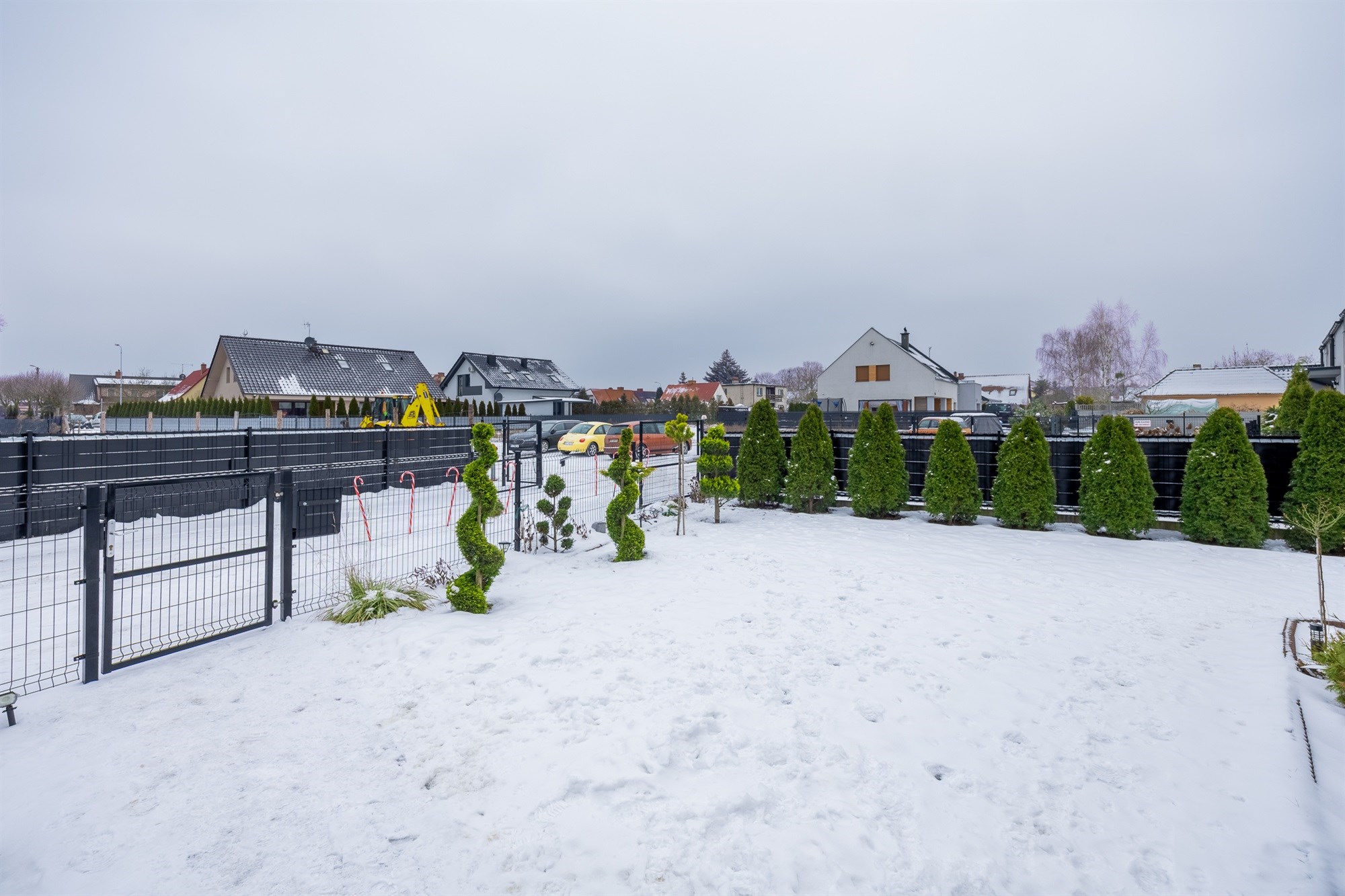 - Ogród: zadbany i zagospodarowany – kręcone bukszpany, tuje i zadbany trawnik tworzą przyjemny parawan prywatności. Wyprowadzona woda na zewnątrz ułatwia pielęgnację zieleni.