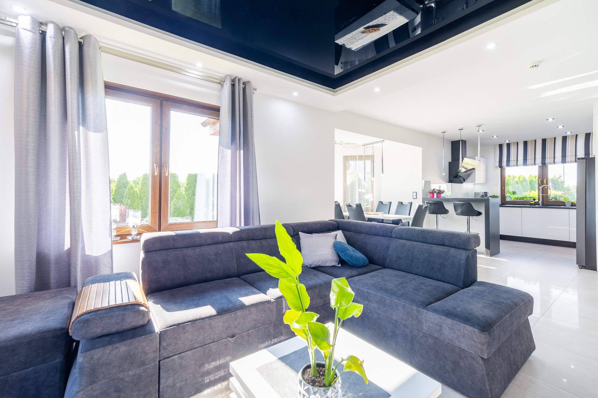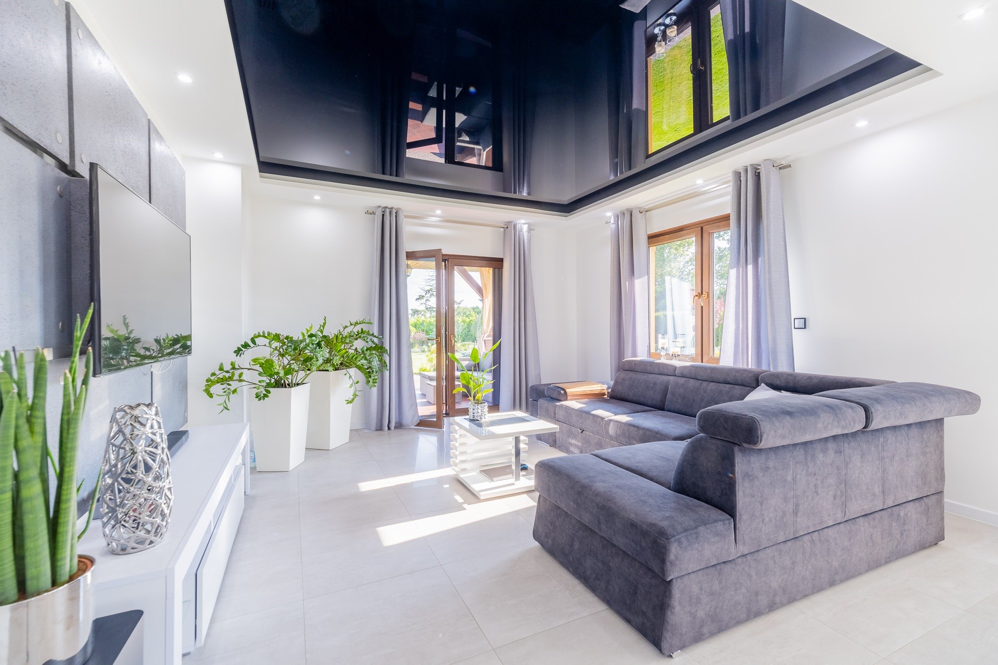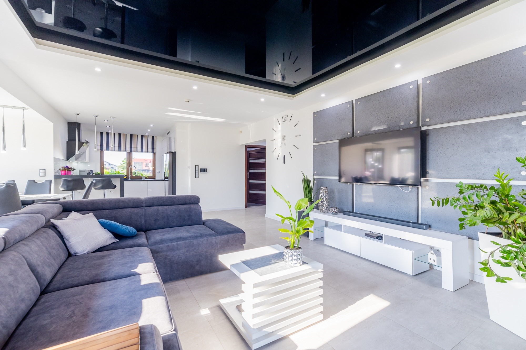 - Przestronny Salon: Idealne miejsce na rodzinne wieczory, z możliwością zainstalowania kominka, który doda ciepła i uroku. Sufity napinane w salonie to nowoczesny akcent.