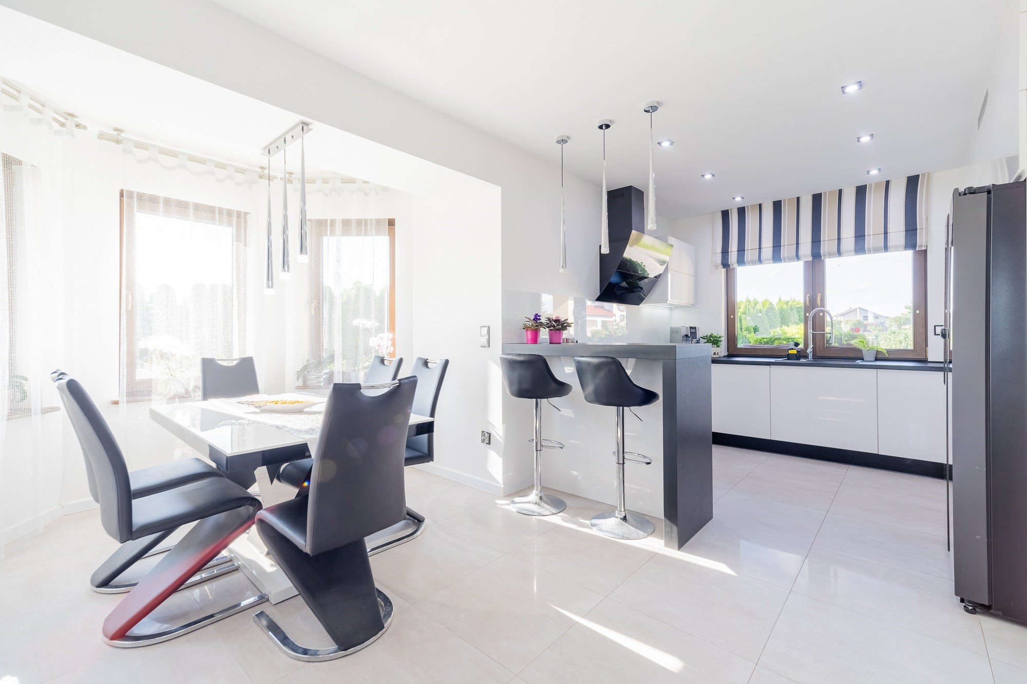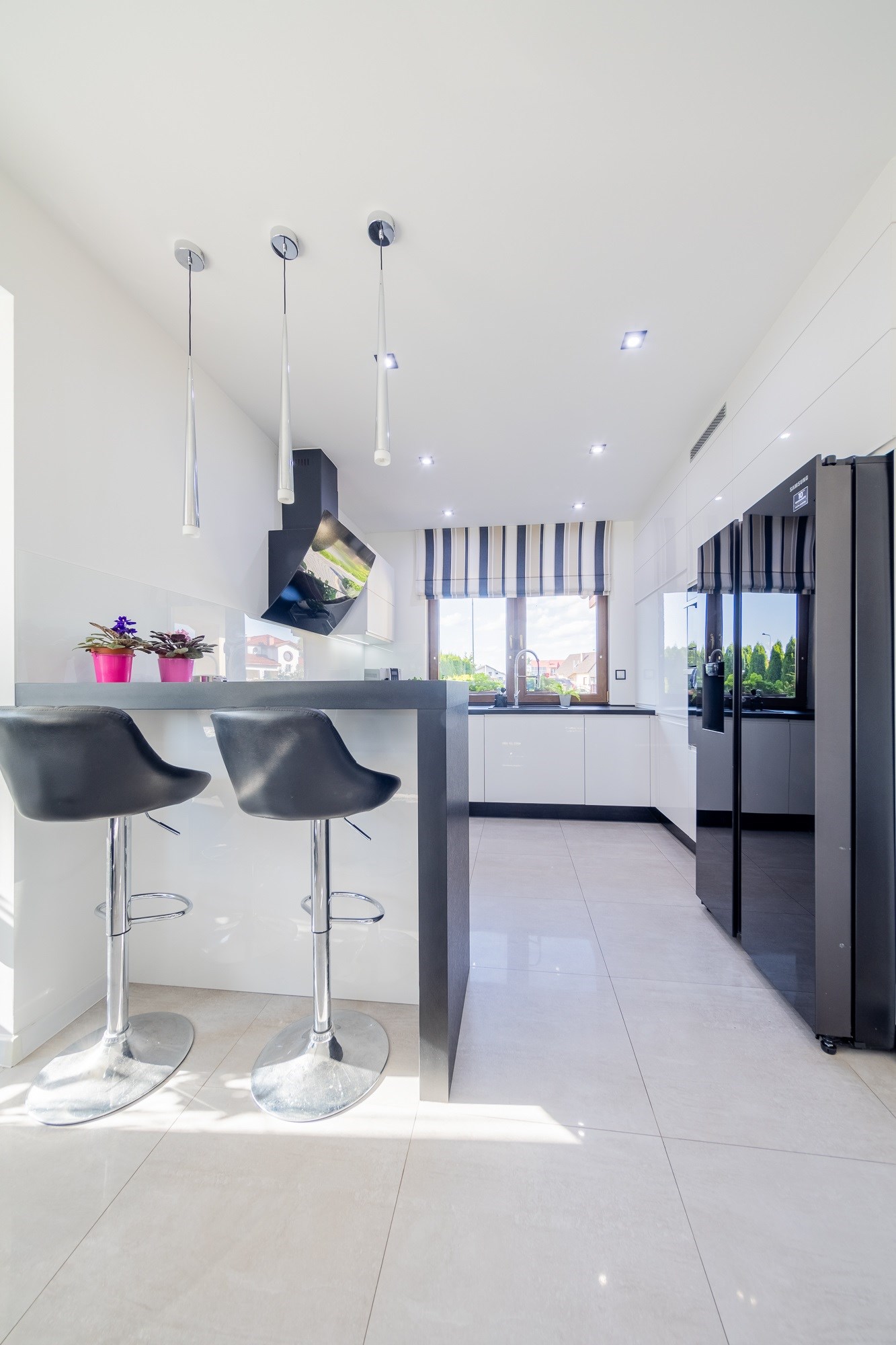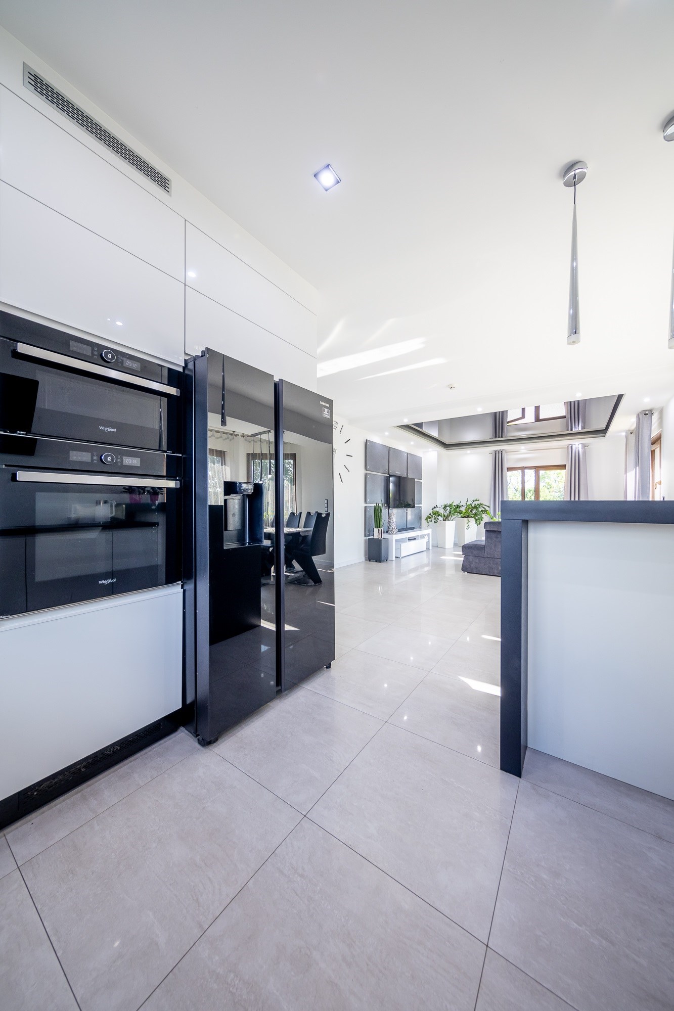 - Nowoczesna Kuchnia Marzeń: Serce domu, wyposażone w wysokiej klasy sprzęt AGD marki Whirlpool (płyta indukcyjna, piekarnik, mikrofalówka, zmywarka) oraz lodówko-zamrażarkę Side-by-Side Samsung. Gotowanie dla rodziny nigdy nie było tak przyjemne!