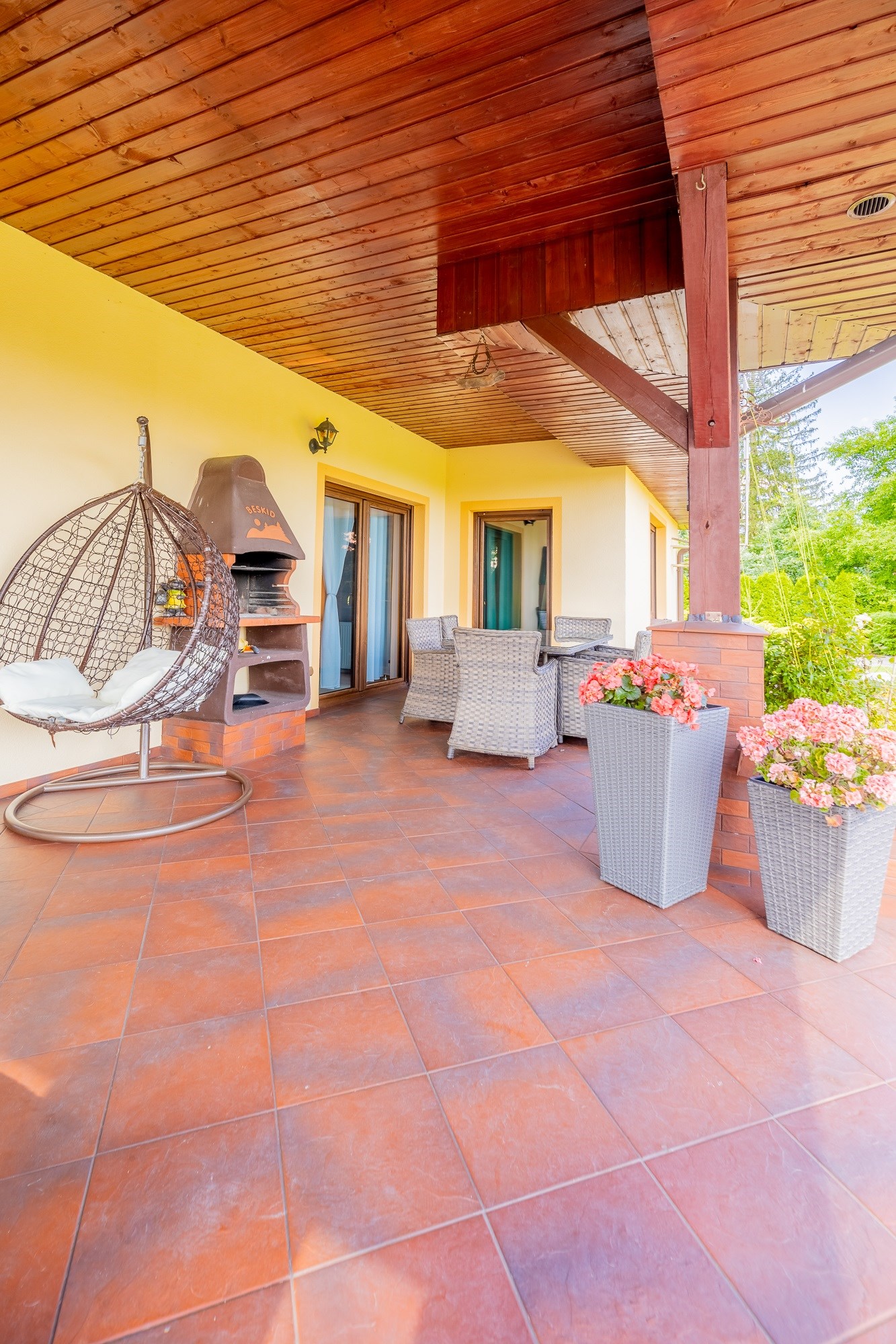 - Taras na Słońce: Duży, zadaszony taras od strony południowej z murowanym grillem – idealne miejsce na letnie przyjęcia, rodzinne obiady i relaks po pracy.