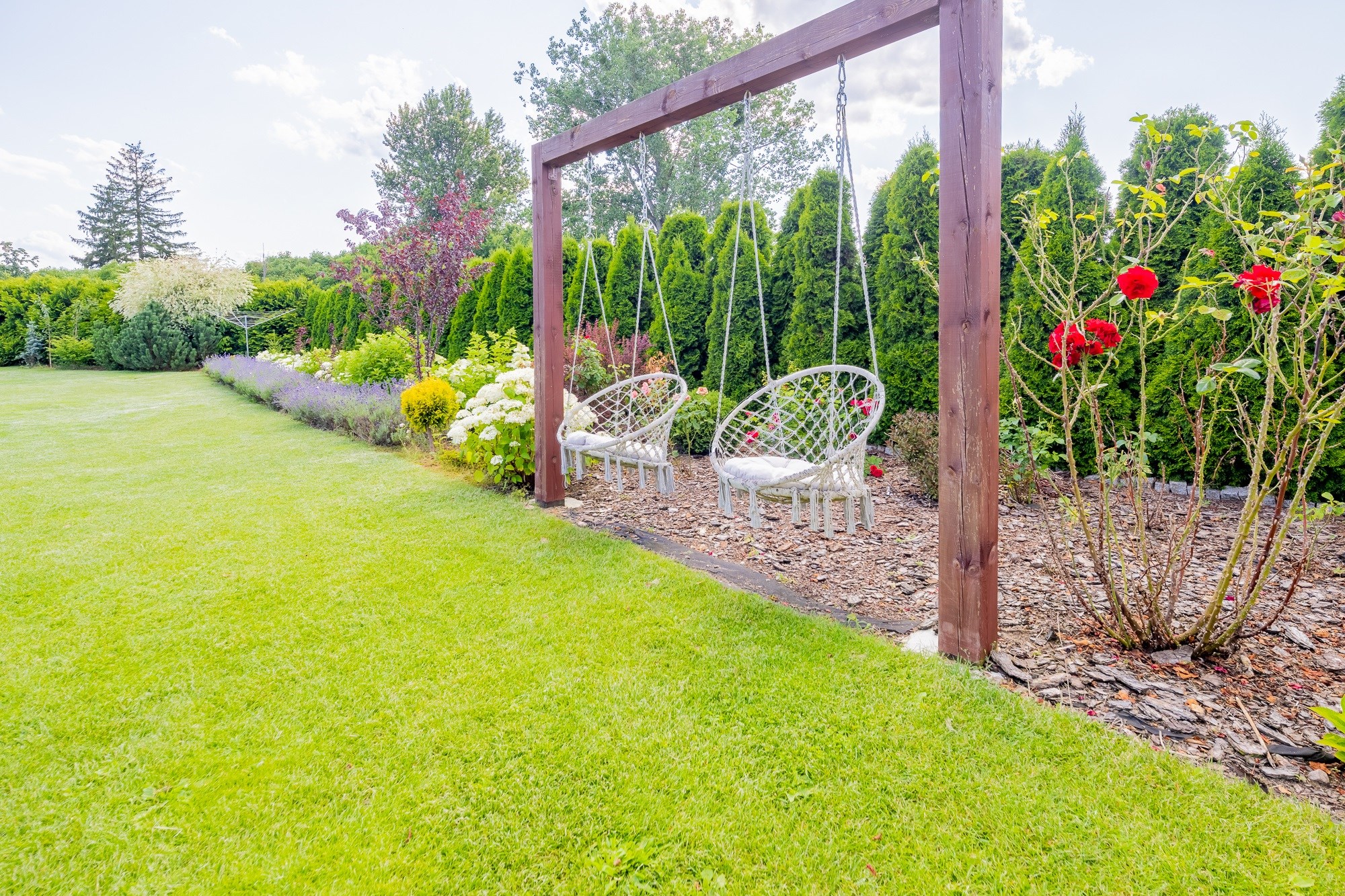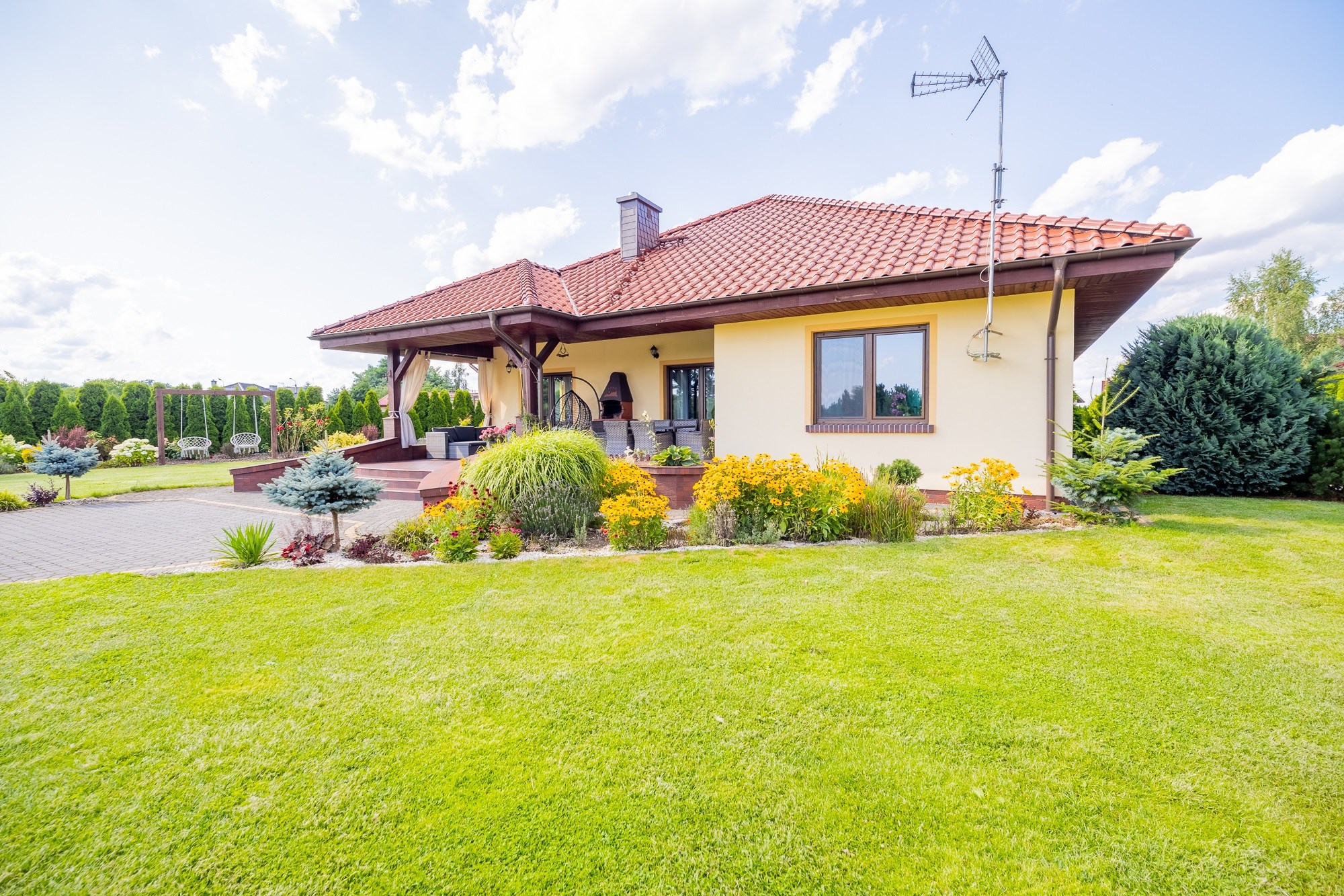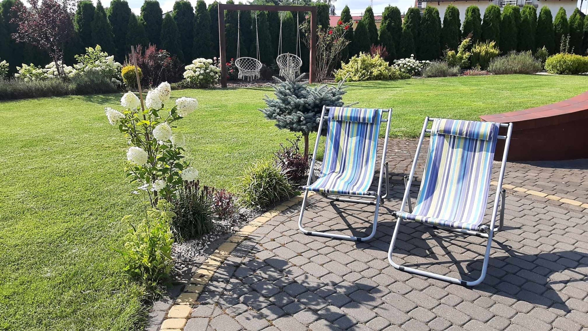 - Oaza Zieleni: Liczne nasadzenia: hortensje, lawendy, świerki, sosny, róże i wiele innych, tworzą malowniczy krajobraz i zapewniają prywatność.
