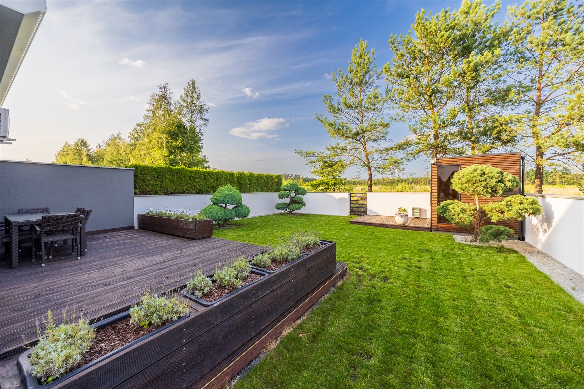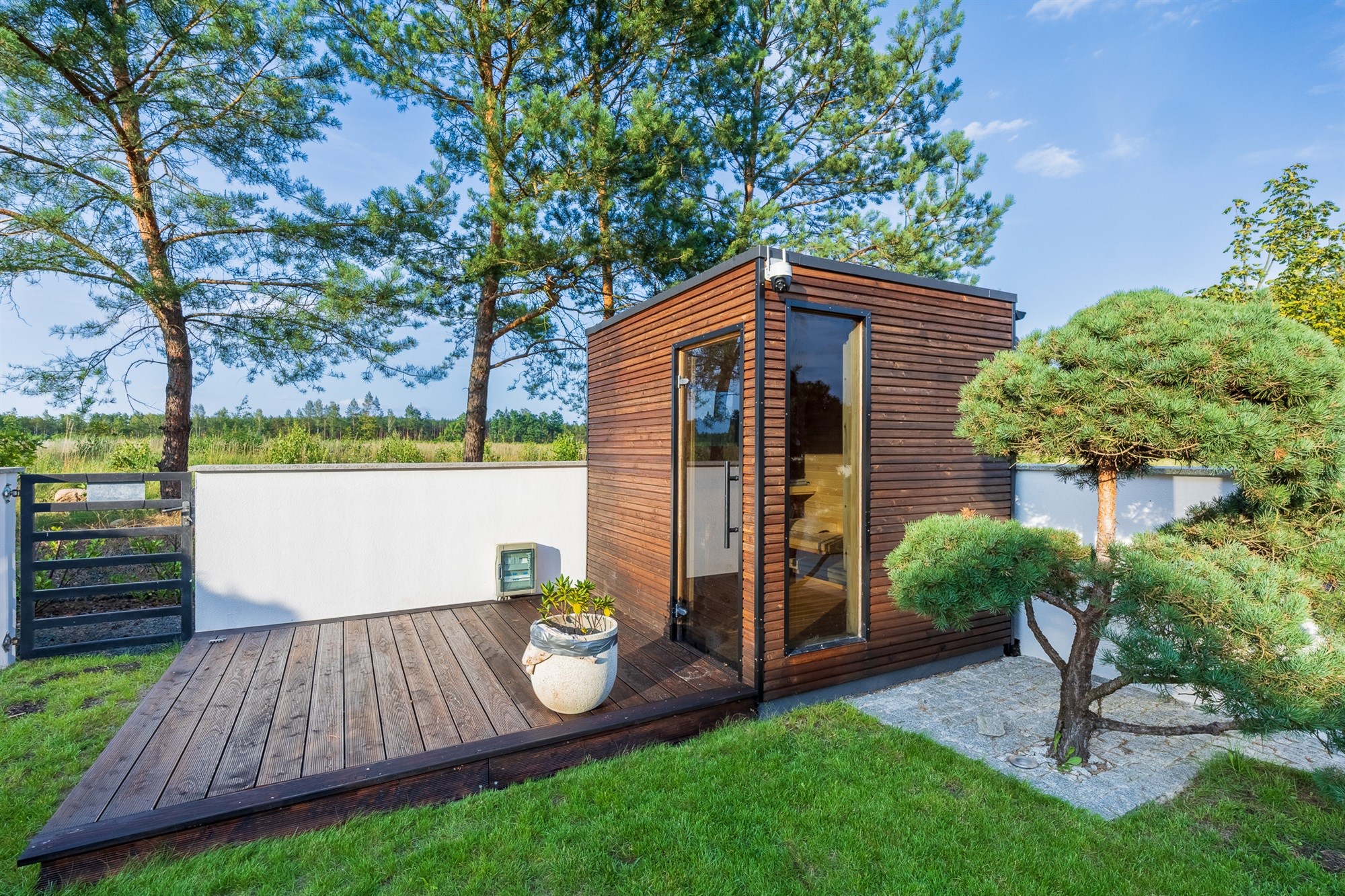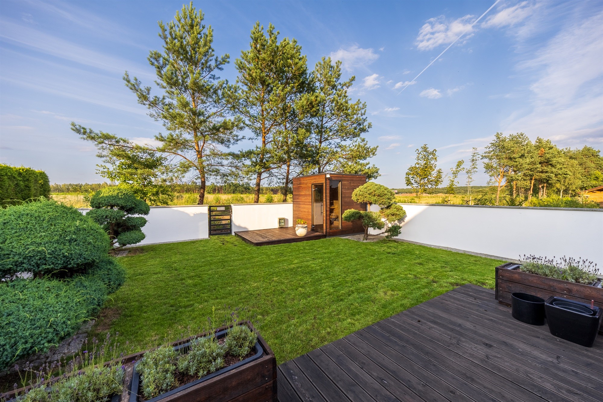 Dodatkowym atutem nieruchomości jest komfortowa sauna ogrodowa, która pozwala cieszyć się chwilą odprężenia o każdej porze roku.