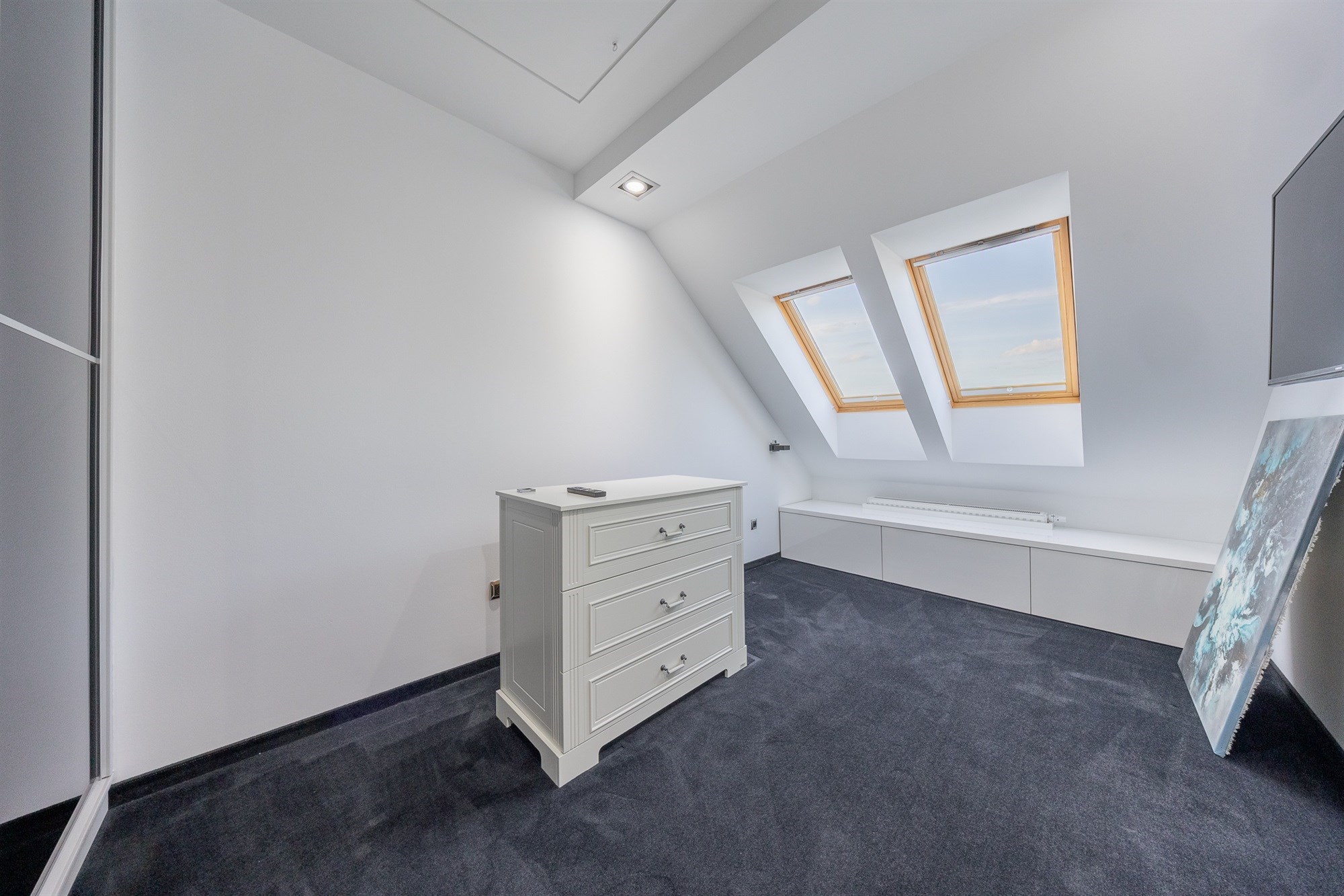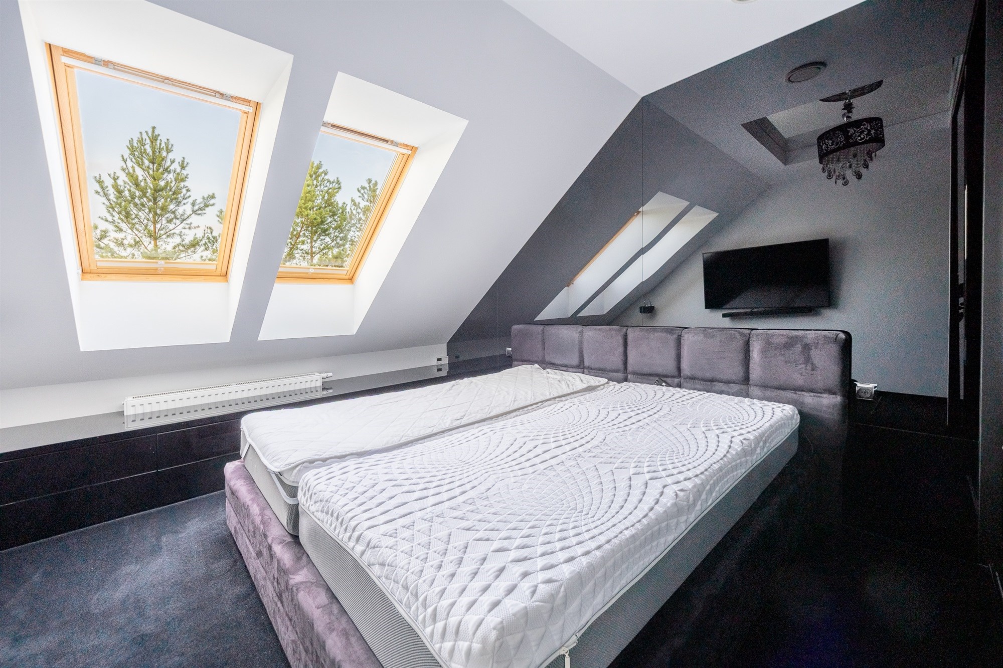 Sypialnie na piętrze są umeblowane, każda wyposażona w szafy, a także telewizory w każdym pokoju. Dzięki dużej ilości szaf i przestrzeni do przechowywania dom jest nie tylko nowoczesny, ale i bardzo funkcjonalny.