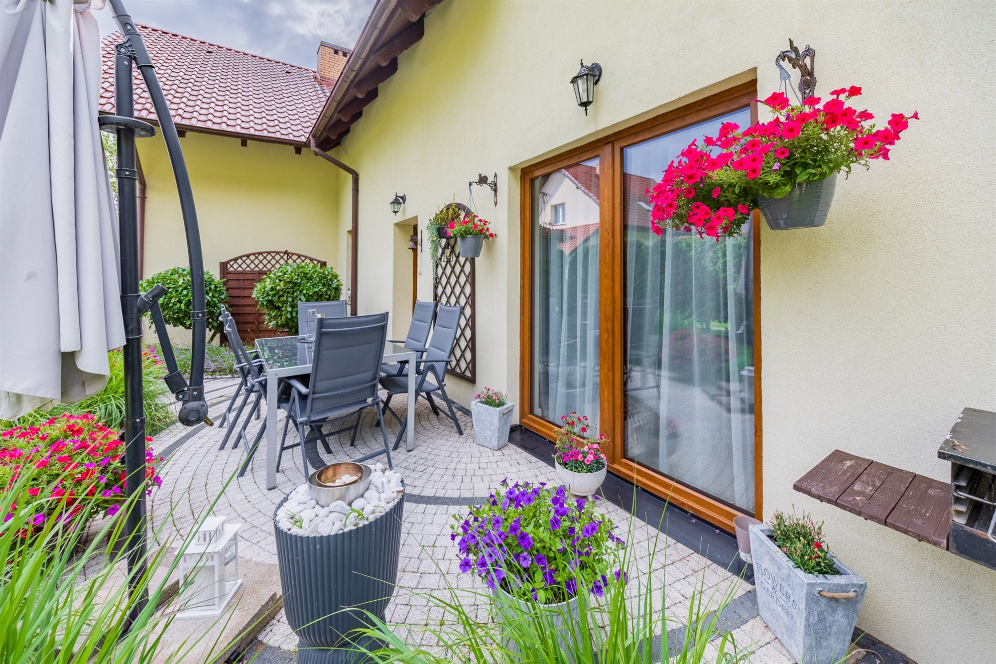 Integralną częścią budynku jest przestronne, dwupoziomowe mieszkanie z osobnym wejściem: