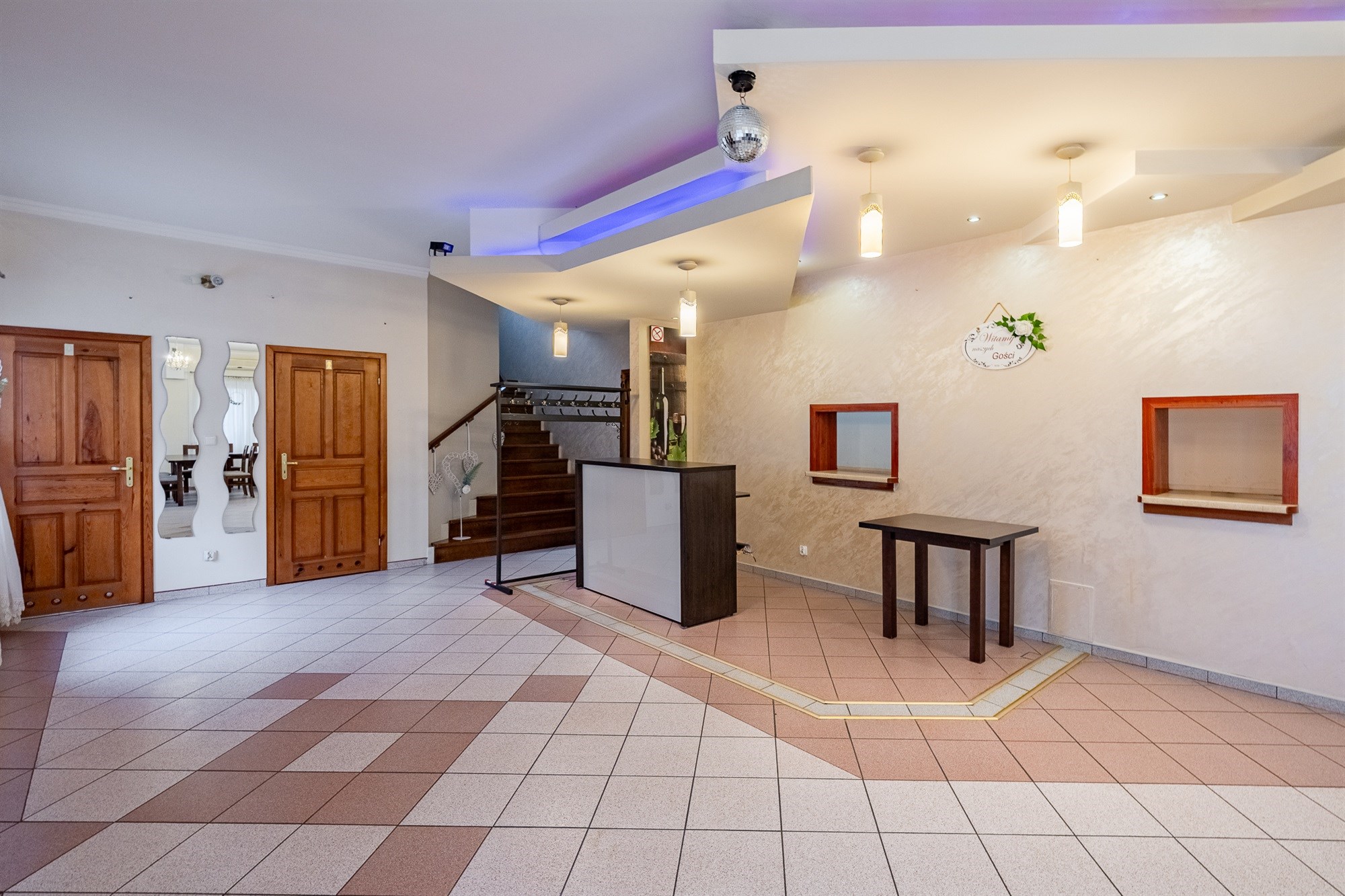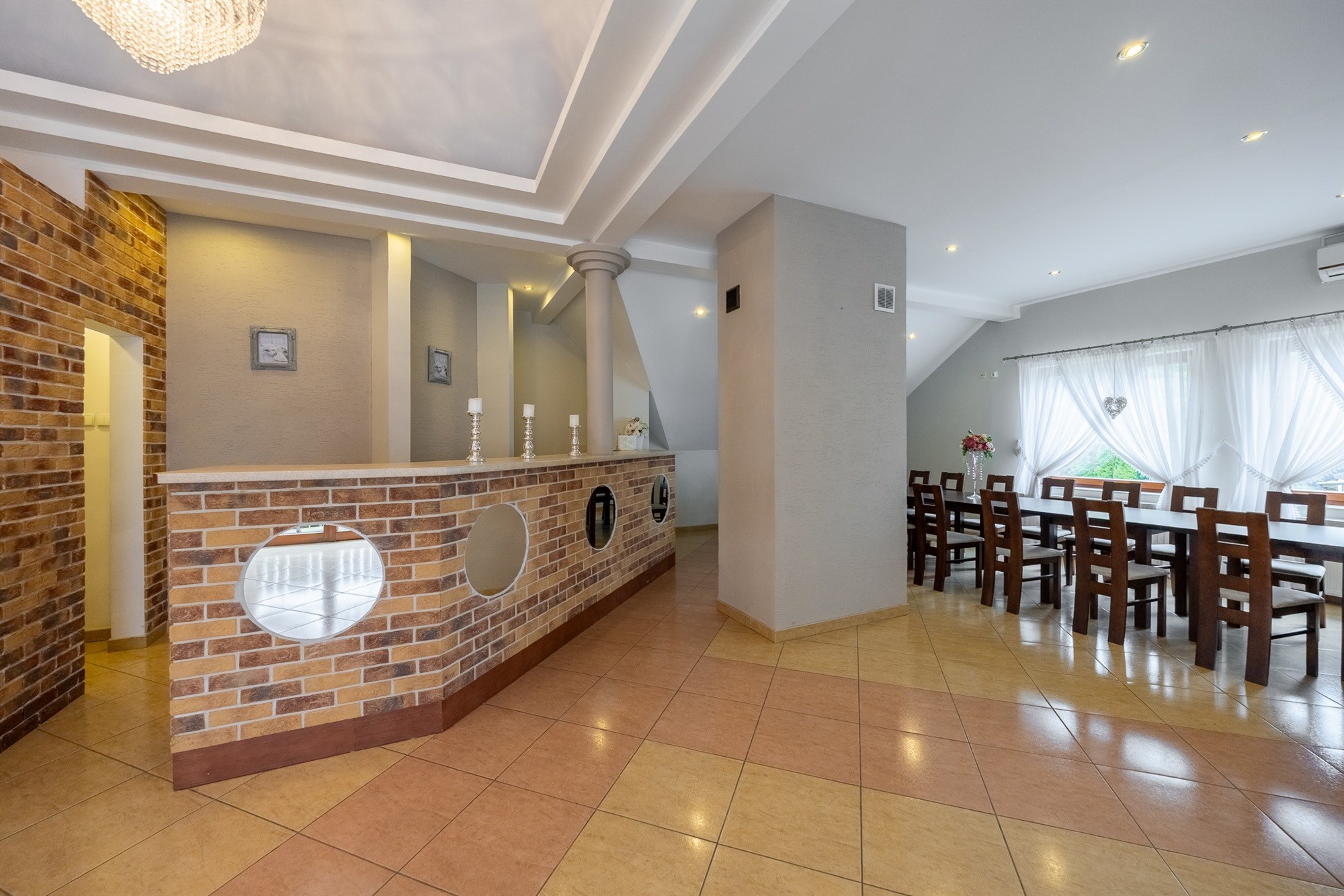 Wcześniej lokal funkcjonował jako obiekt gastronomiczny – jest w pełni przygotowany do wznowienia działalności restauracyjnej, cateringowej lub eventowej. W skład zaplecza wchodzą: