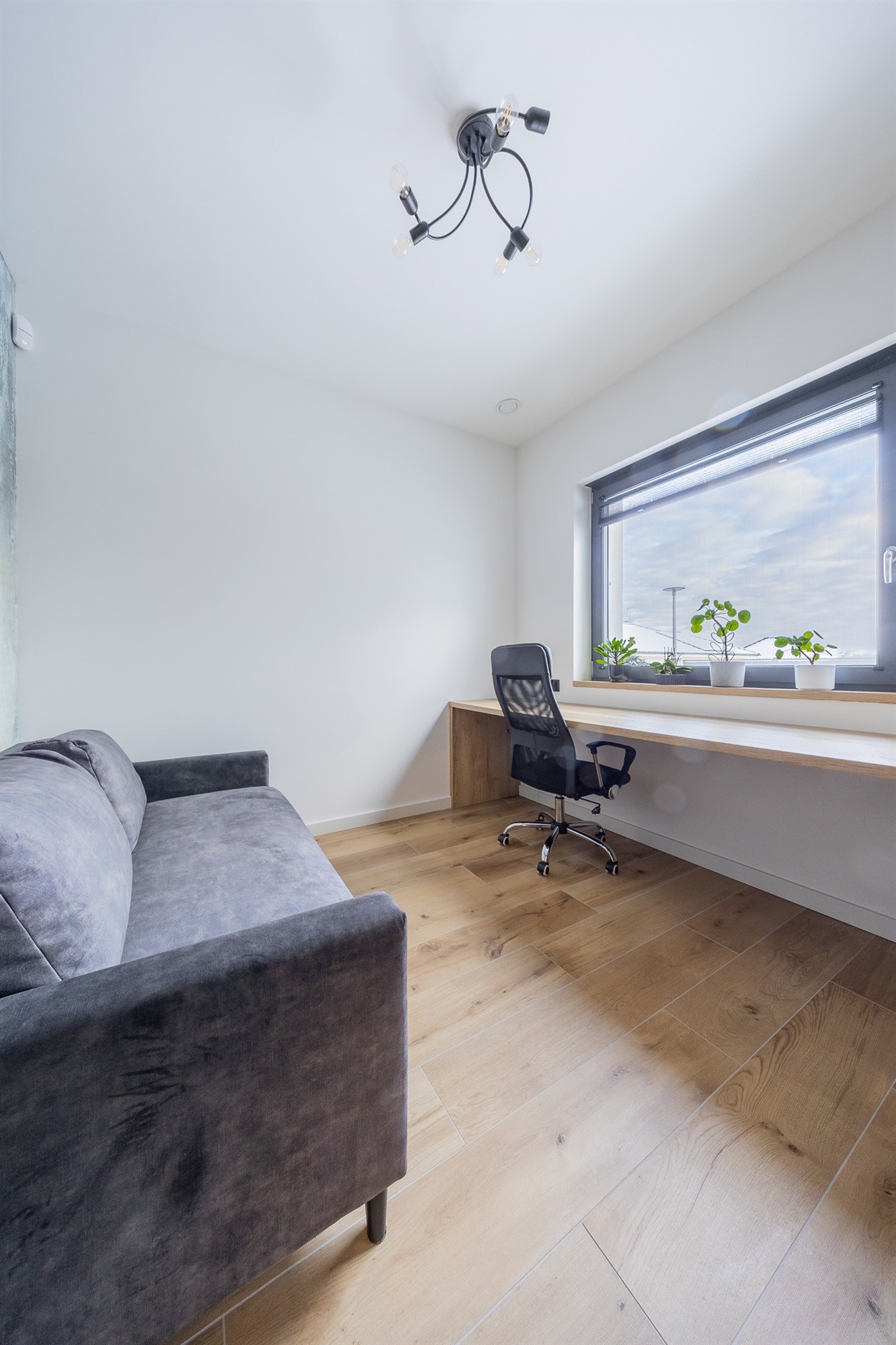 - Gabinet na parterze: Idealne miejsce do pracy zdalnej, które w razie potrzeby stanie się dodatkową sypialnią dla gości.