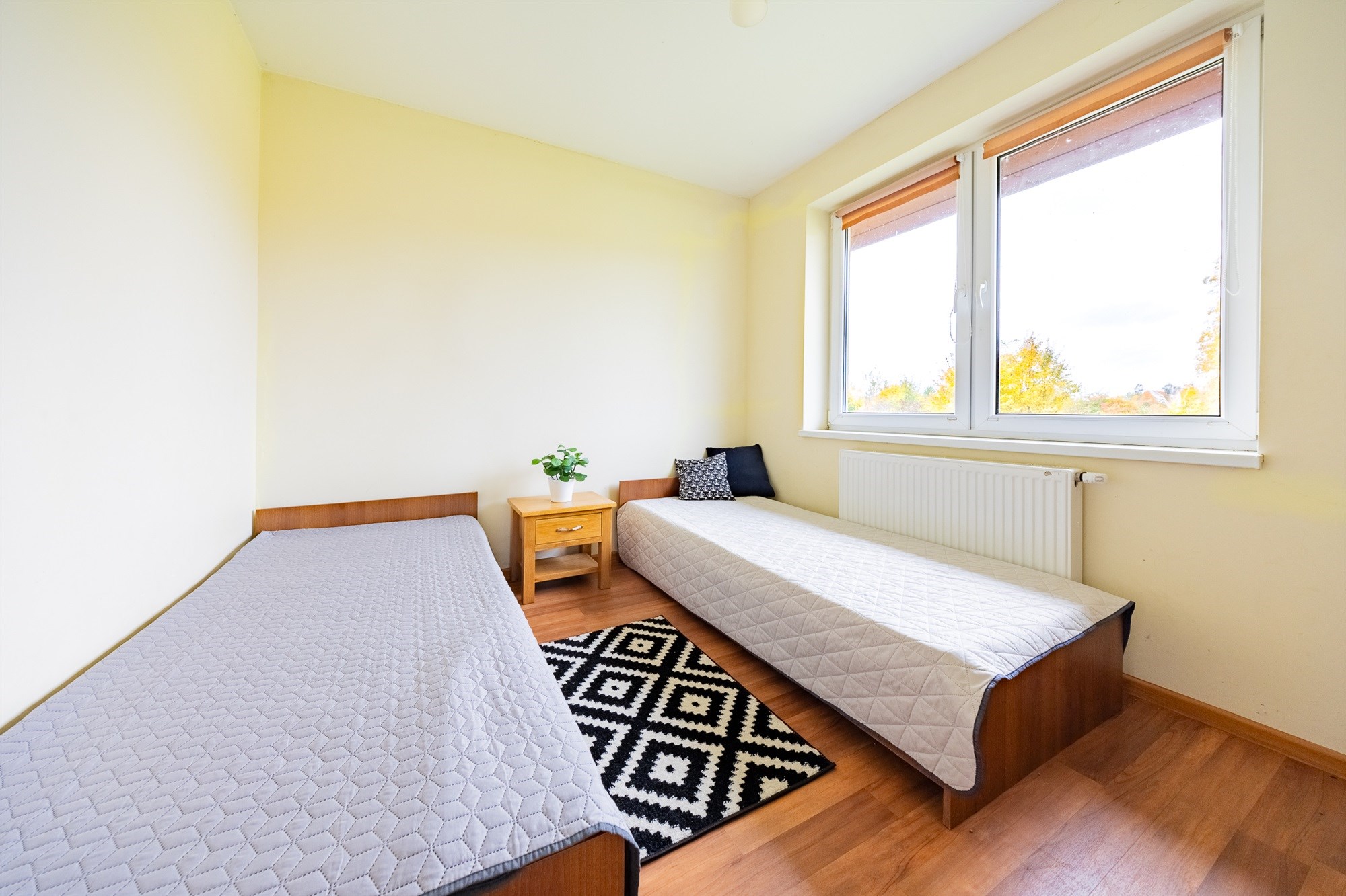 Znajdują się tu: przestronny salon z aneksem kuchennym, dwie przytulne sypialnie, łazienka z prysznicem oraz praktyczny wiatrołap. W salonie znajduje się piec kominkowy typu koza, opalany drewnem, który wprowadza wyjątkowy klimat i ciepło w chłodniejsze dni. Na podłogach płytki, w sypialniach panele. Okna PCV wyposażone w rolety.