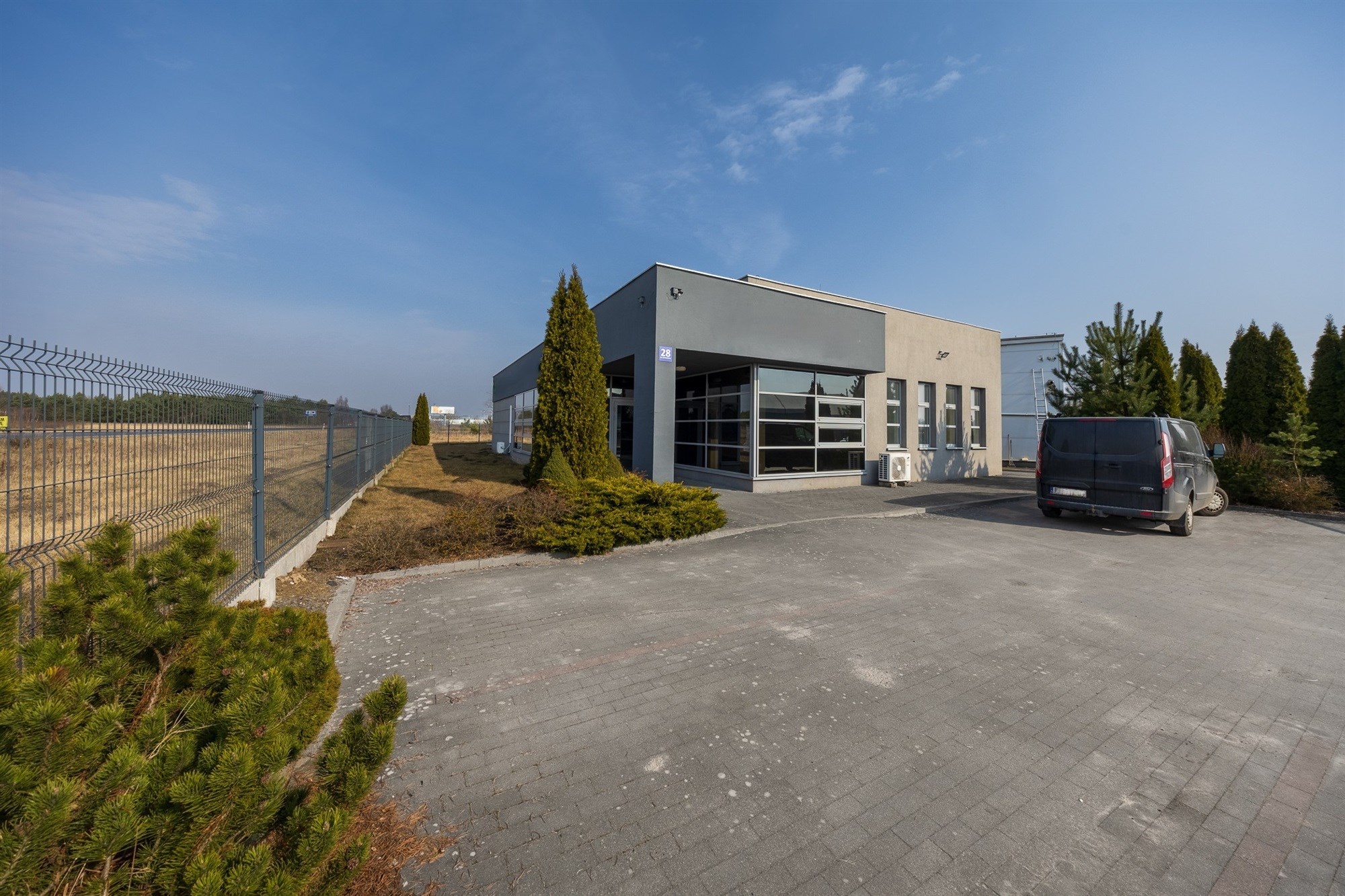 - cześć administracyjna o powierzchni 55 m2, w skład której wchodzą biuro, aneks kuchenny, archiwum, wc, wiatrołap,