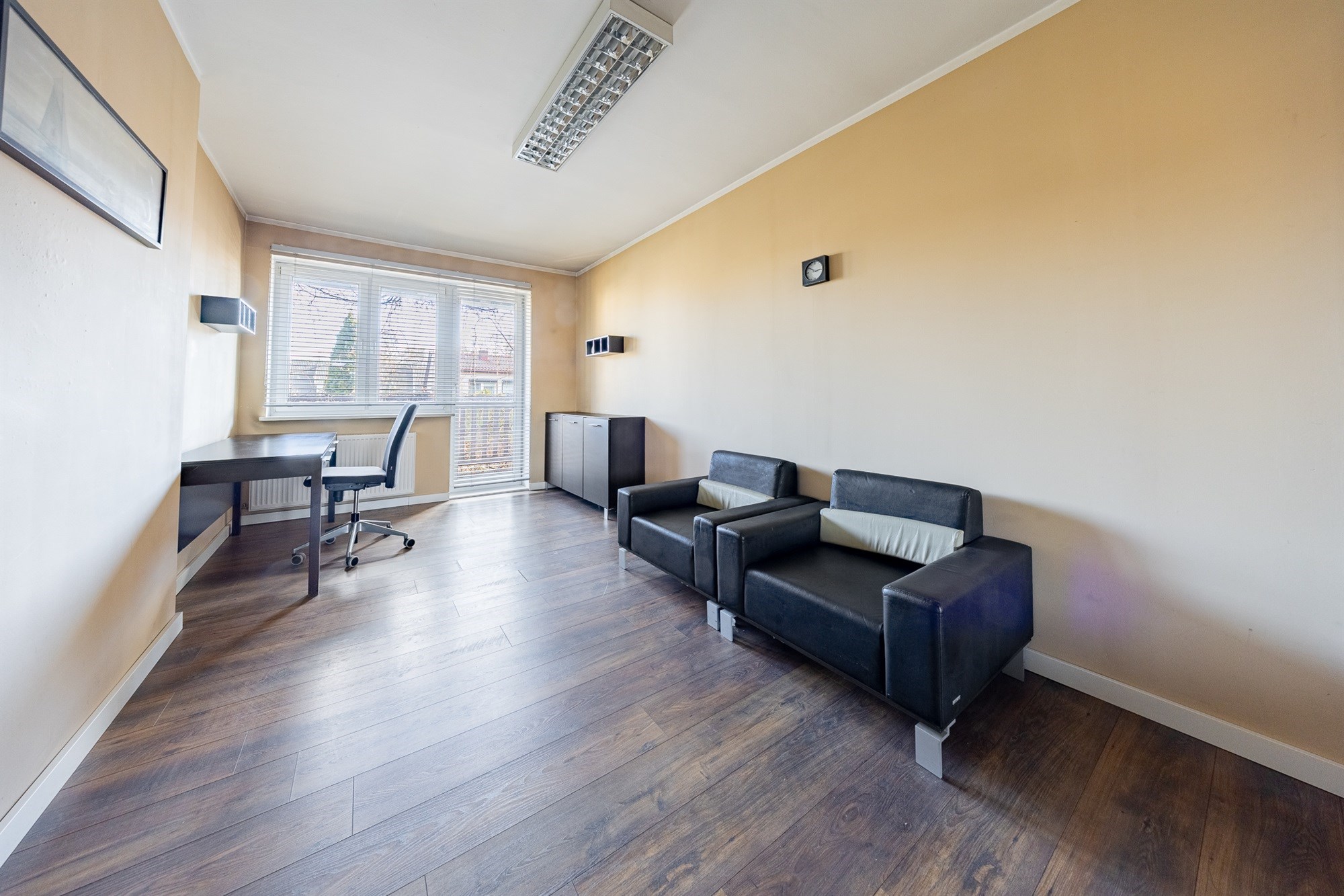 - PIĘTRO (74 m2) – biura/gabinety : Powierzchnia mieszkalna z osobnym wejściem i klatką schodową. Składa się z salonu z kominkiem, sypialni, gabinetu i łazienki. Powierzchnia może być z powodzeniem wykorzystywana alternatywnie jako powierzchnia biurowa. Pomieszczenia są wyremontowane i jasne, idealne na biura, pracownie, gabinety lekarskie lub kancelarię. Piętro posiada własną łazienkę, co może zapewnić pełną niezależność od części handlowej i mieszkalnej.