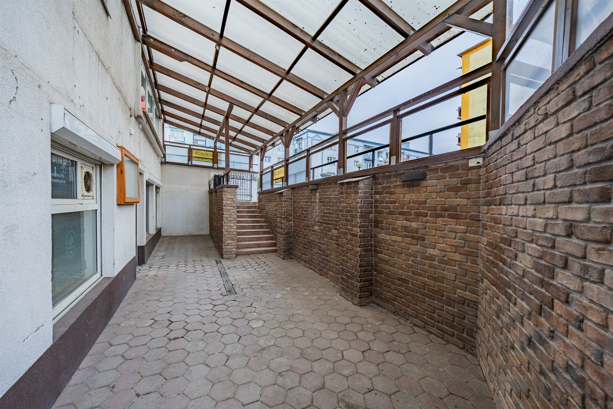 - Prywatna przestrzeń przed wejściem: do lokalu prowadzą schody przy których znajduje się prywatny placyk wyłożony trylinką, który doskonale sprawdzi się jako ogródek letni, wystawa towaru lub strefa przyjęć klientów.