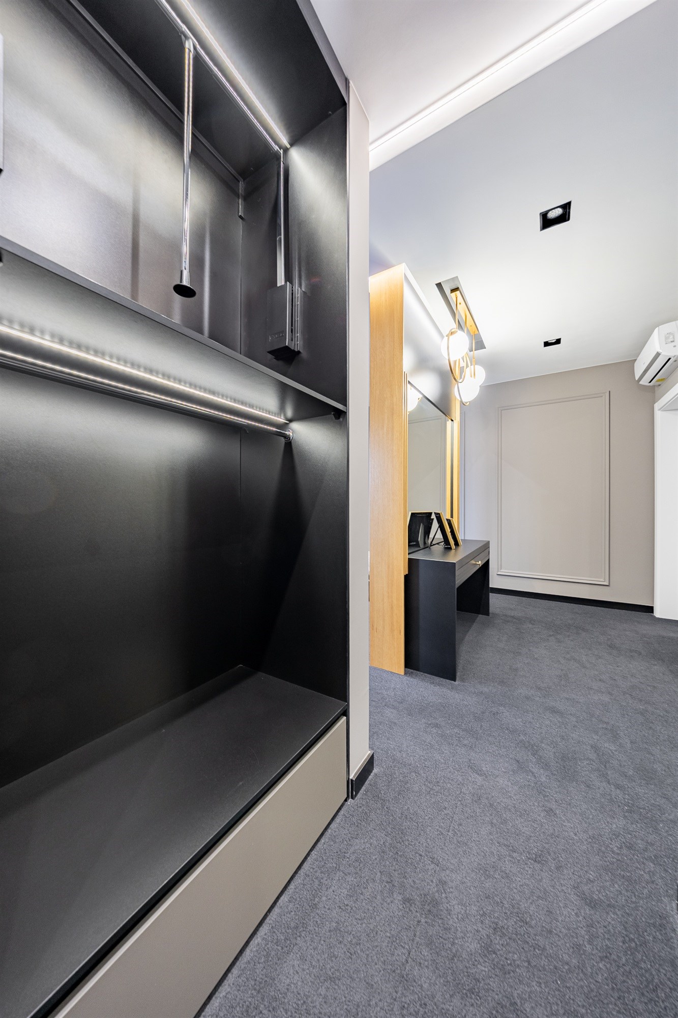 Zabudowana szafa z lustrem w przedpokoju (11,34 m²) – wygoda i organizacja już od progu.