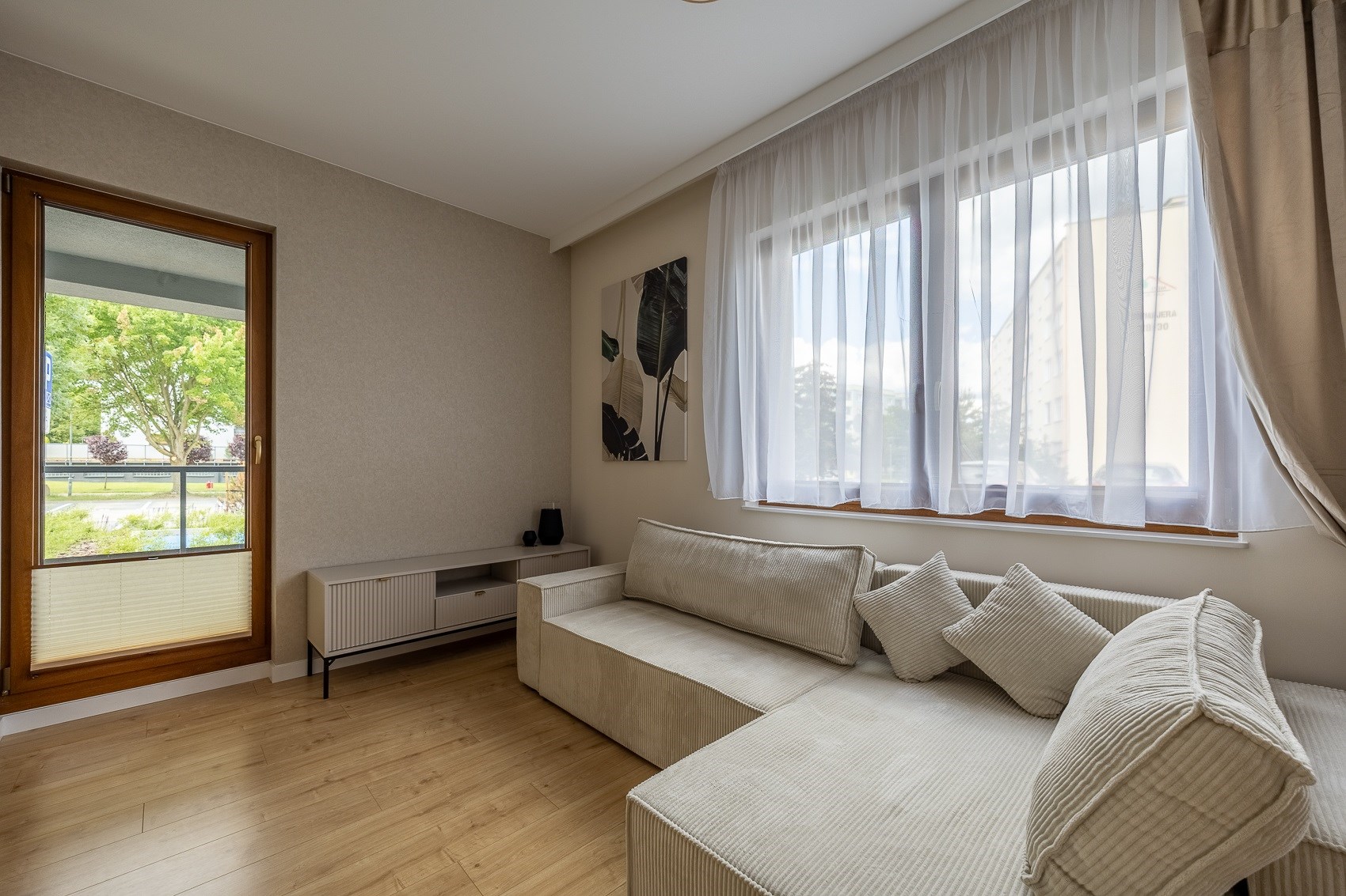 Zapraszamy do zapoznania się z ofertą wynajmu mieszkania o powierzchni 35,30 m2, położonego w nowym budownictwie na osiedlu Górnym. Mieszkanie składa się z pokoju z aneksem kuchennym, sypialni, łazienki z wc. Salon jest jasny i przytulny, wyposażony w narożnik, komodę oraz stół z krzesłami. Aneks kuchenny jest funkcjonalny i nowocześnie urządzony, posiada lodówkę, zmywarkę, płytę indukcyjną, piekarnik i okap. Sypialnia jest jasna, cicha i spokojna, zapewniająca komfortowy wypoczynek. Znajduje się w niej komoda oraz łóżko. Łazienka jest elegancka i czysta, wyposażona w kabinę prysznicową, umywalkę, toaletę i pralkę. Mieszkanie jest umeblowane i gotowe do zamieszkania.