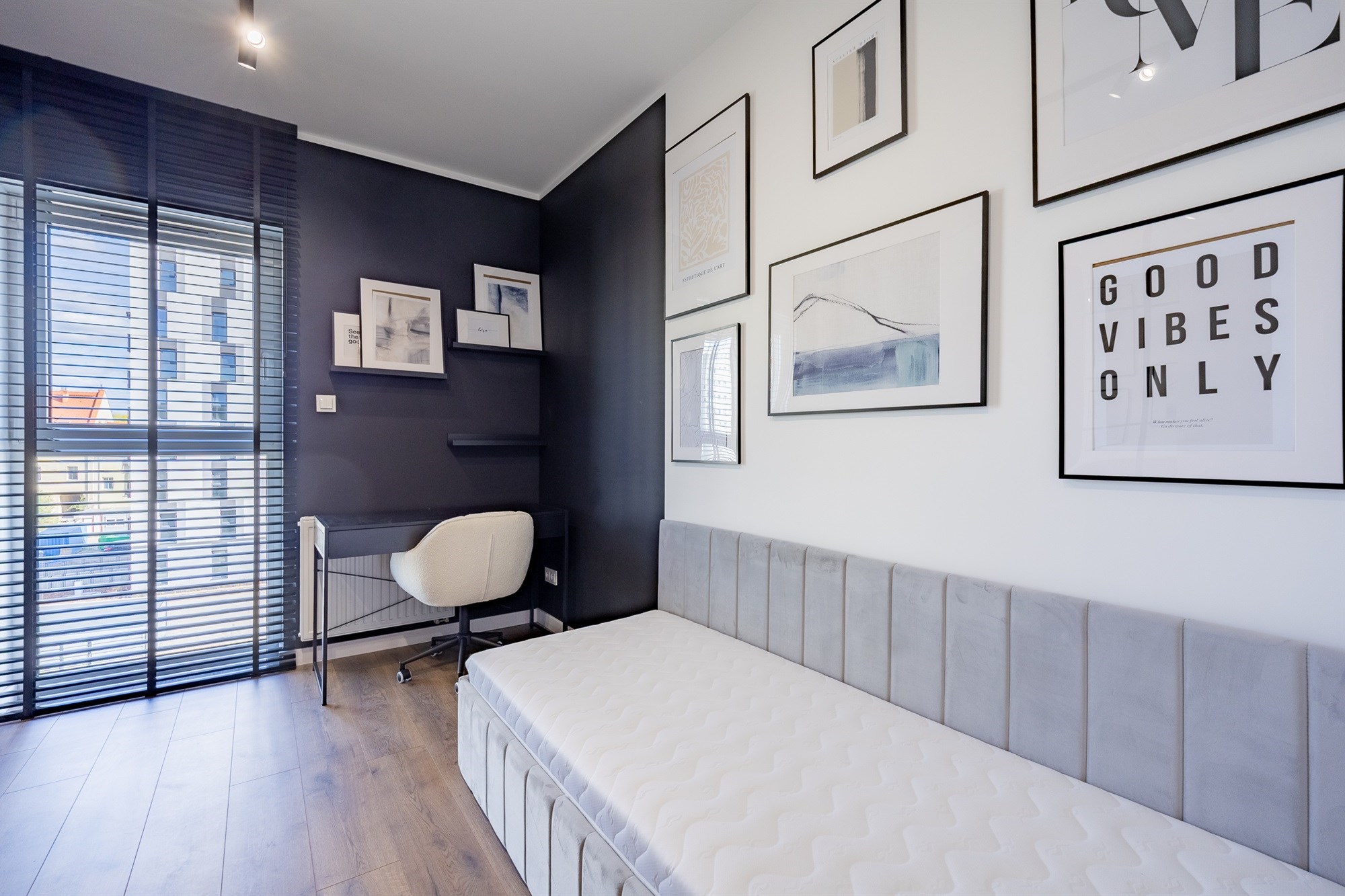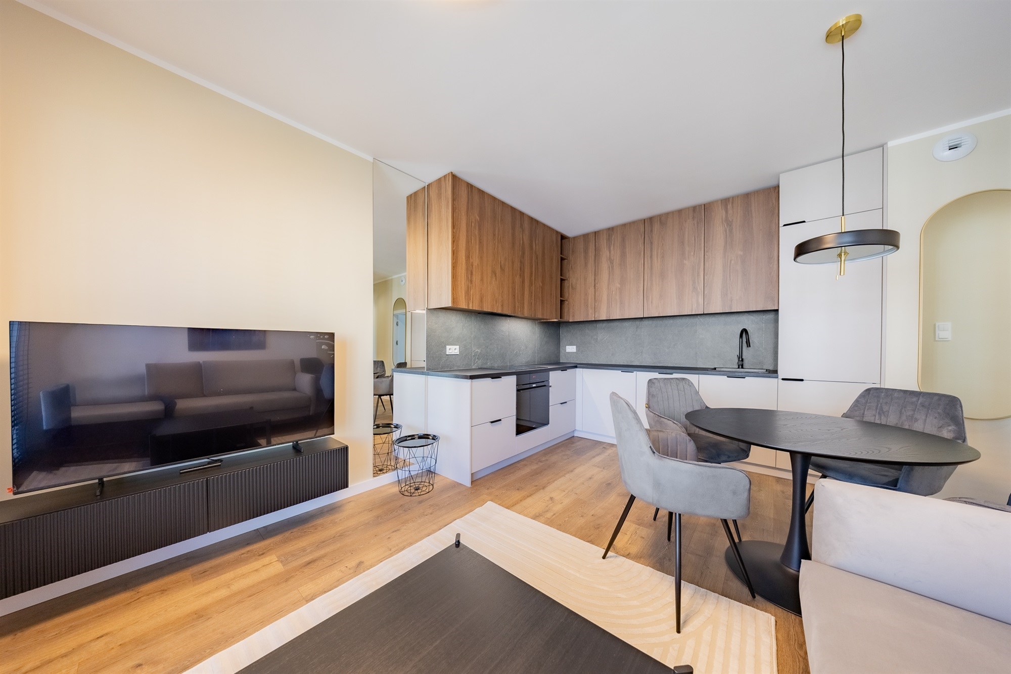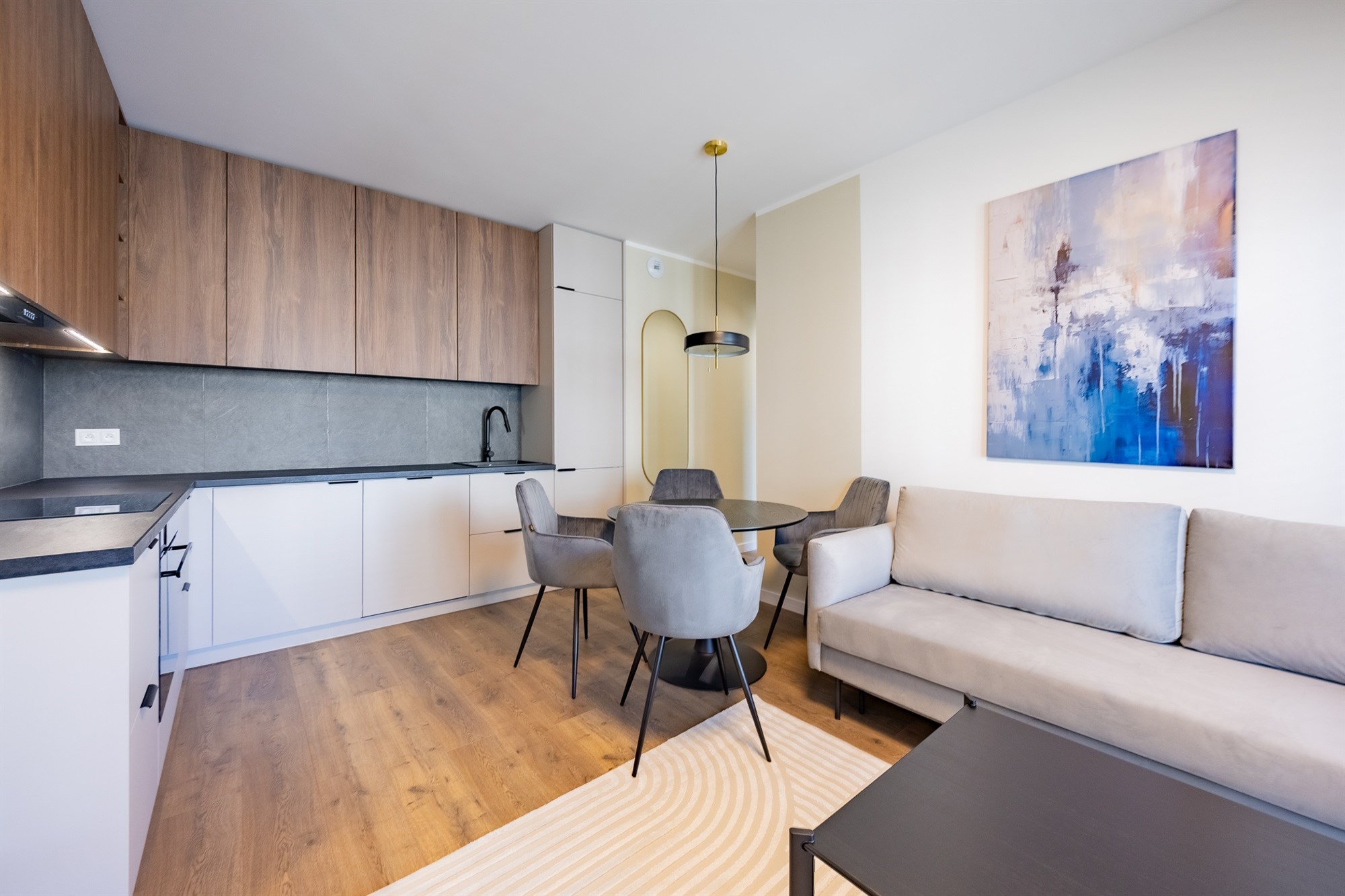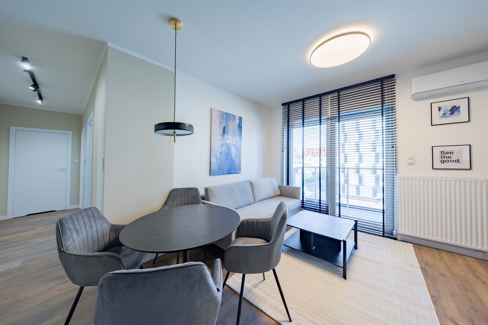 Stylowe mieszkanie w nowym budownictwie z windą, urządzone w eleganckim, harmonijnym stylu i w pełni gotowe do zamieszkania od zaraz. Jasny, przestronny salon z dużymi przeszkleniami oraz wyjściem na balkon zapewnia doskonałe doświetlenie i tworzy idealną przestrzeń do wypoczynku. Nowoczesna kuchnia wyposażona w komplet sprzętów AGD gwarantuje wygodę na co dzień. Dwa dodatkowe pokoje oferują pełen komfort mieszkania, zapewniając prywatność wszystkim domownikom.
