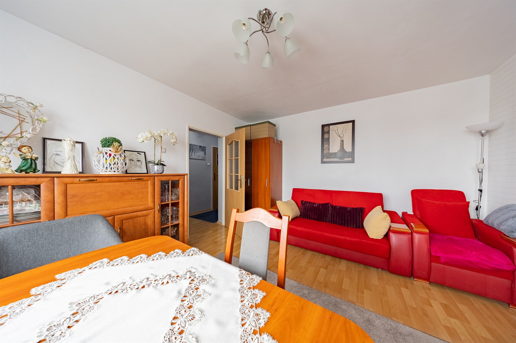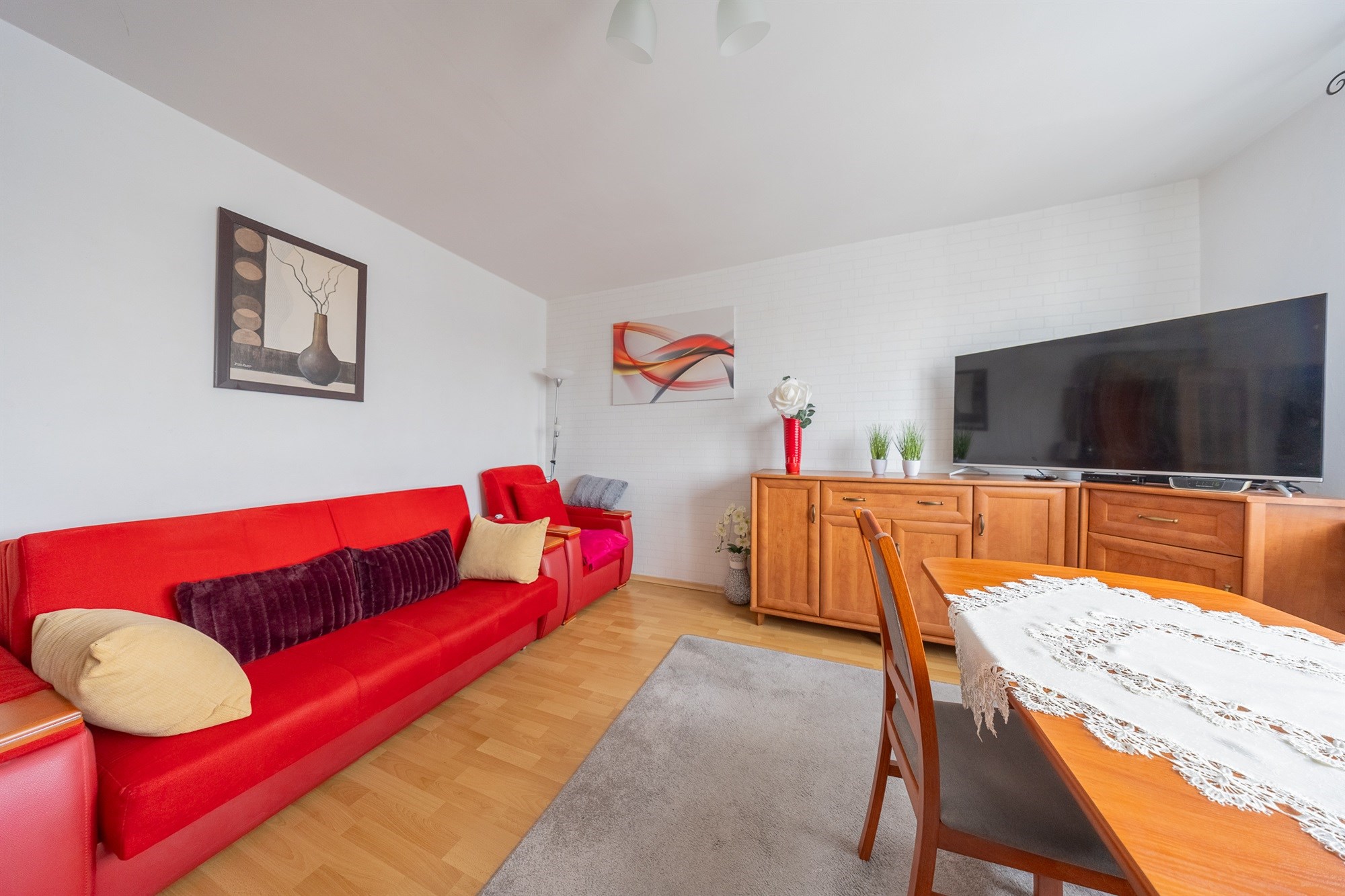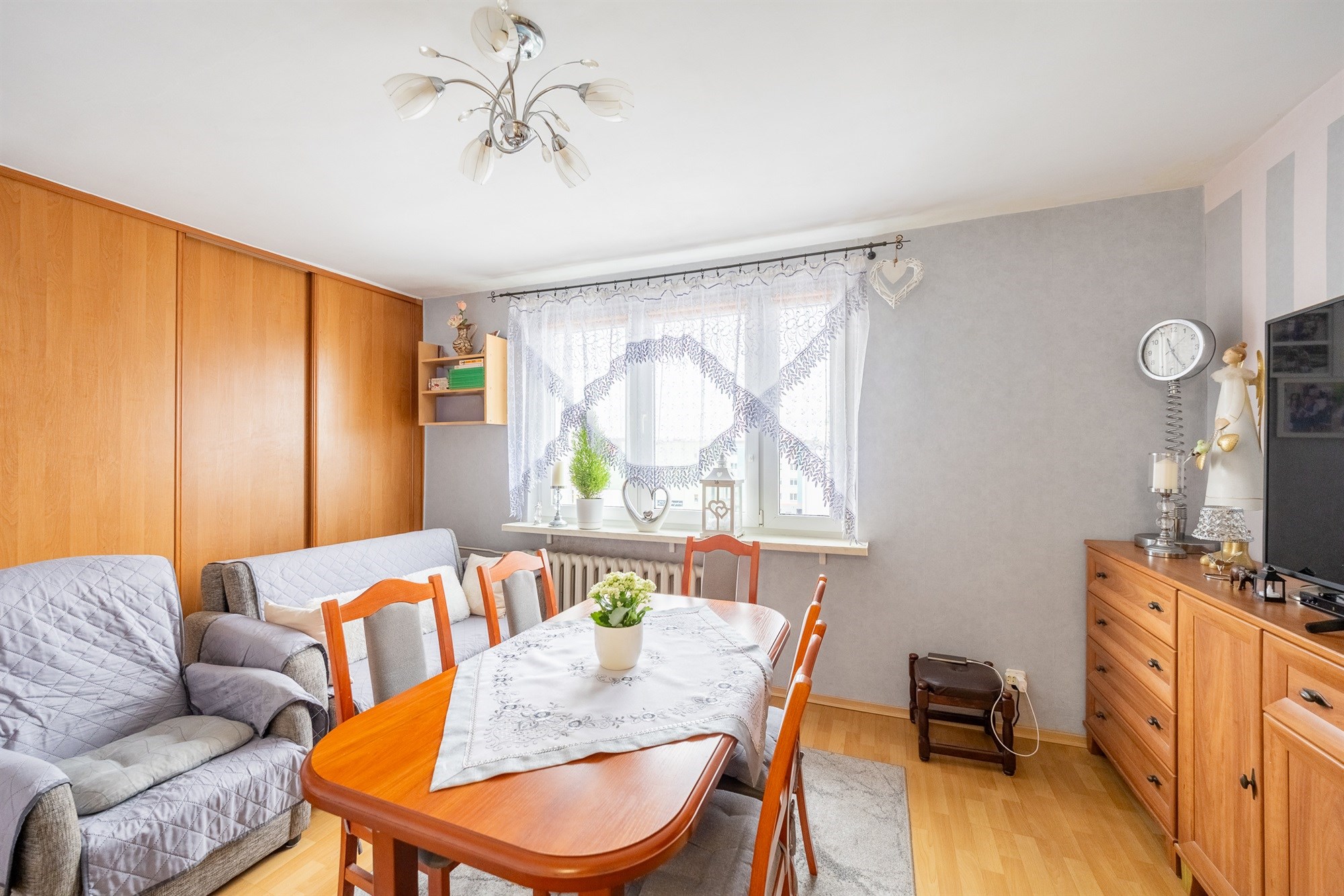 Mieszkanie jest sprzedawane z umeblowaniem – wyposażenie pozostaje w cenie, co umożliwia natychmiastowe zamieszkanie bez konieczności ponoszenia dodatkowych nakładów finansowych.
