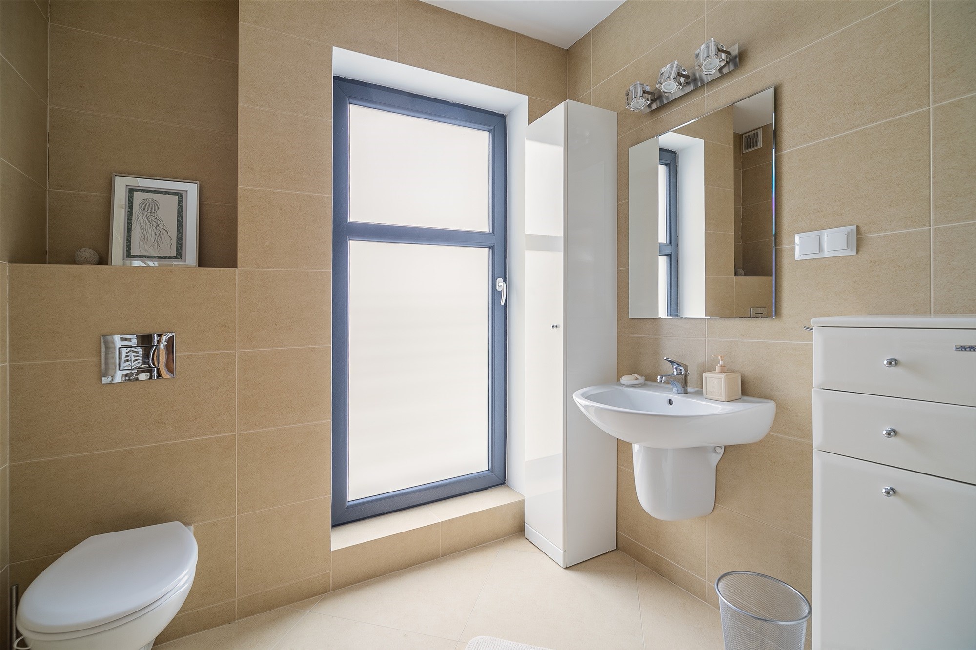- Nowoczesna stolarka okienna PVC, podłogi w panelach, łazienka w płytkach. Ściany gładkie, współczesna neutralna kolorystyka i aranżacja wnętrz, drzwi i ościeżnice z dębu greko, kamienne blaty kuchenne.