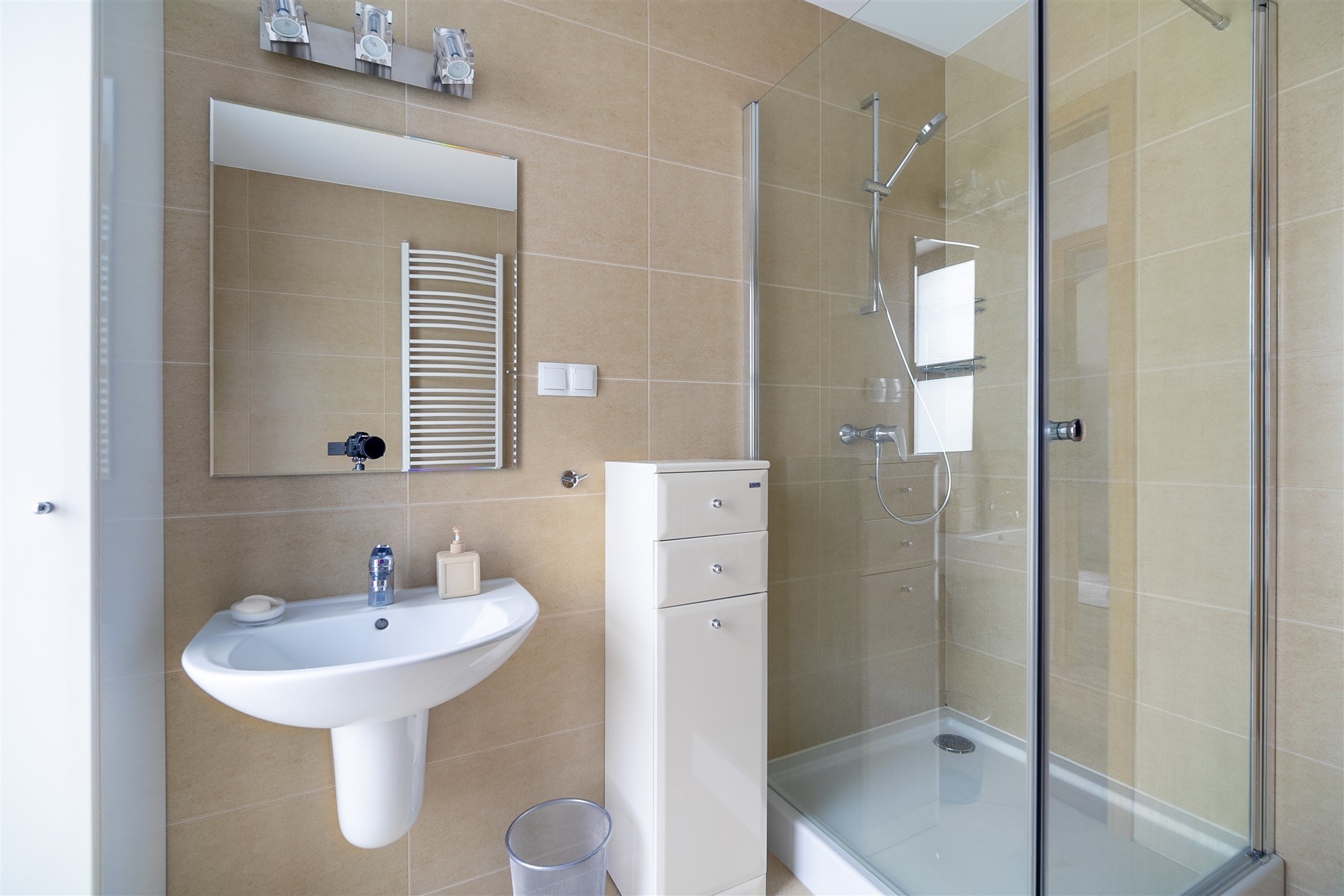 - W oknach rolety materiałowe, oświetlenie halogenowe LED, punktowe.