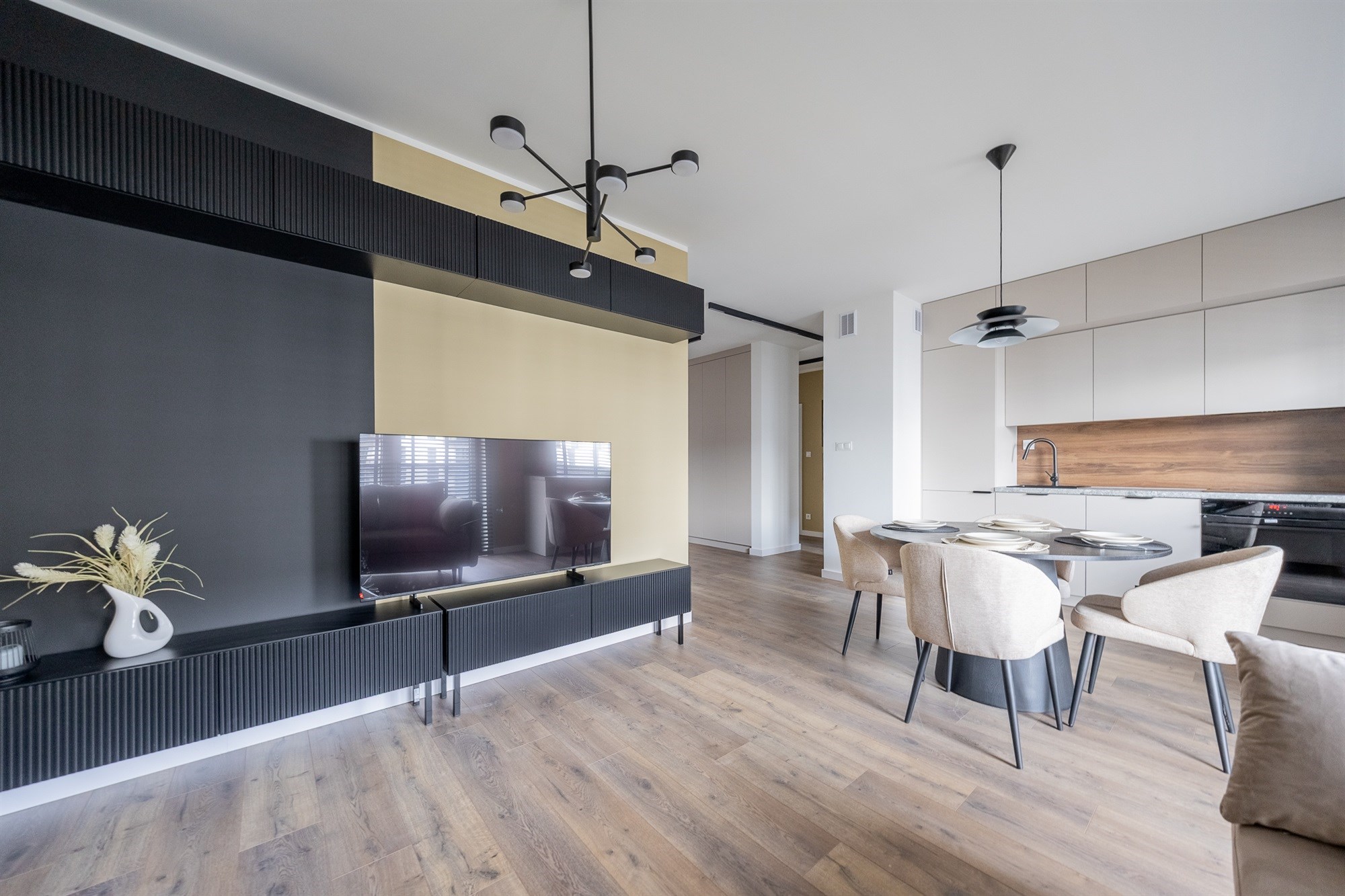 Do wynajęcia nowoczesne, 3‑pokojowe mieszkanie o wysokim standardzie wykończenia w nowym budownictwie położone w samym sercu Śródmieścia. Lokal jest w pełni wyposażony, urządzony w eleganckim, spójnym stylu i gotowy do wprowadzenia od zaraz.