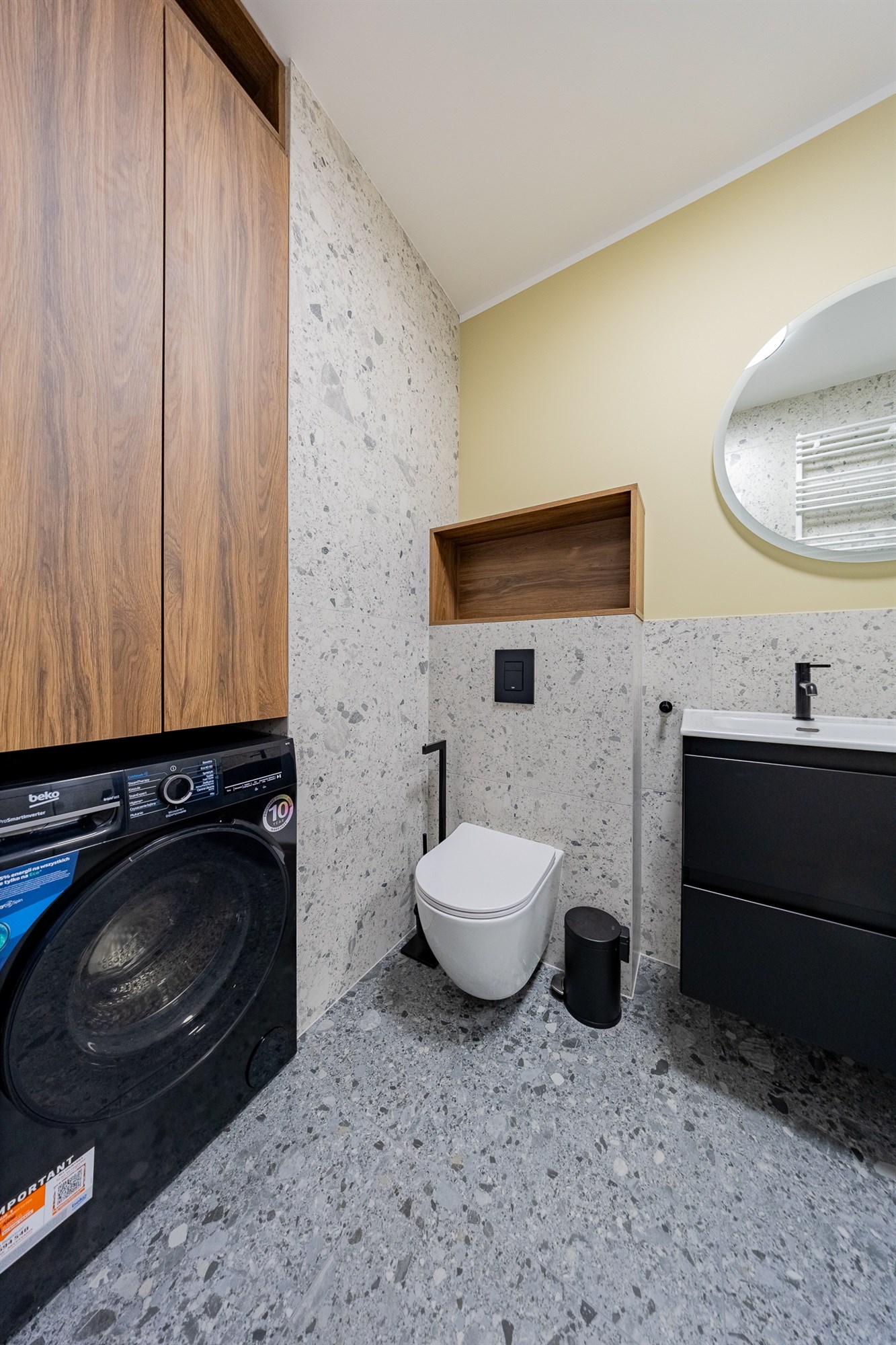W mieszkaniu znajduje się komfortowa łazienka oraz dodatkowo osobna toaleta, co znacząco usprawnia codzienne funkcjonowanie całej rodziny.