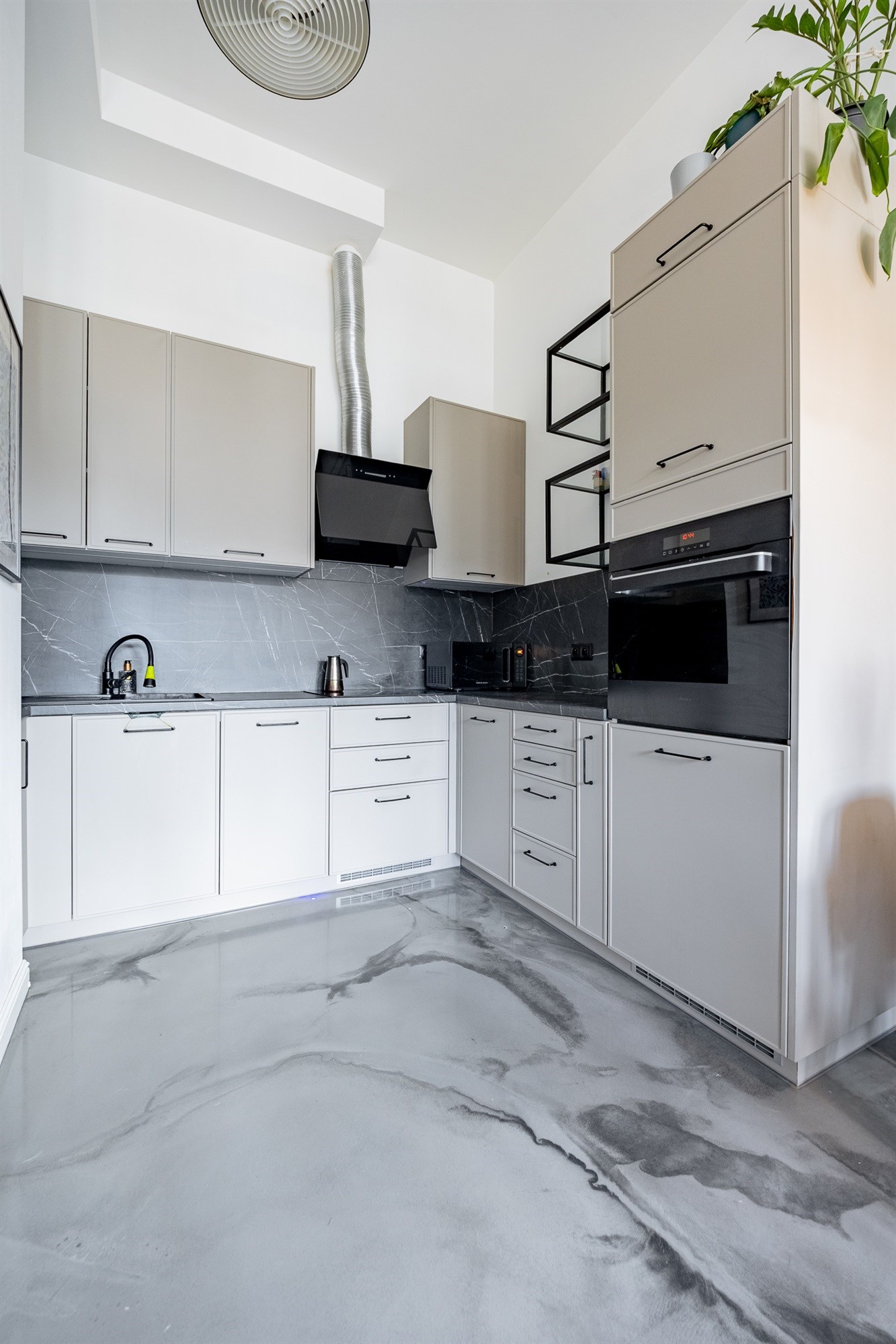 - Wysoki standard wykończenia: nowoczesny design, wysokie sufity dające poczucie przestrzeni i duże okna zapewniające dużo naturalnego światła.