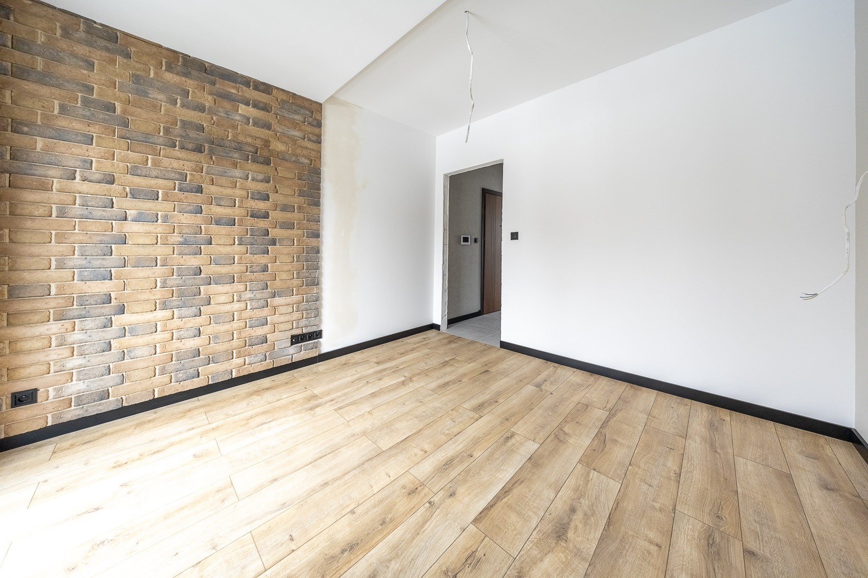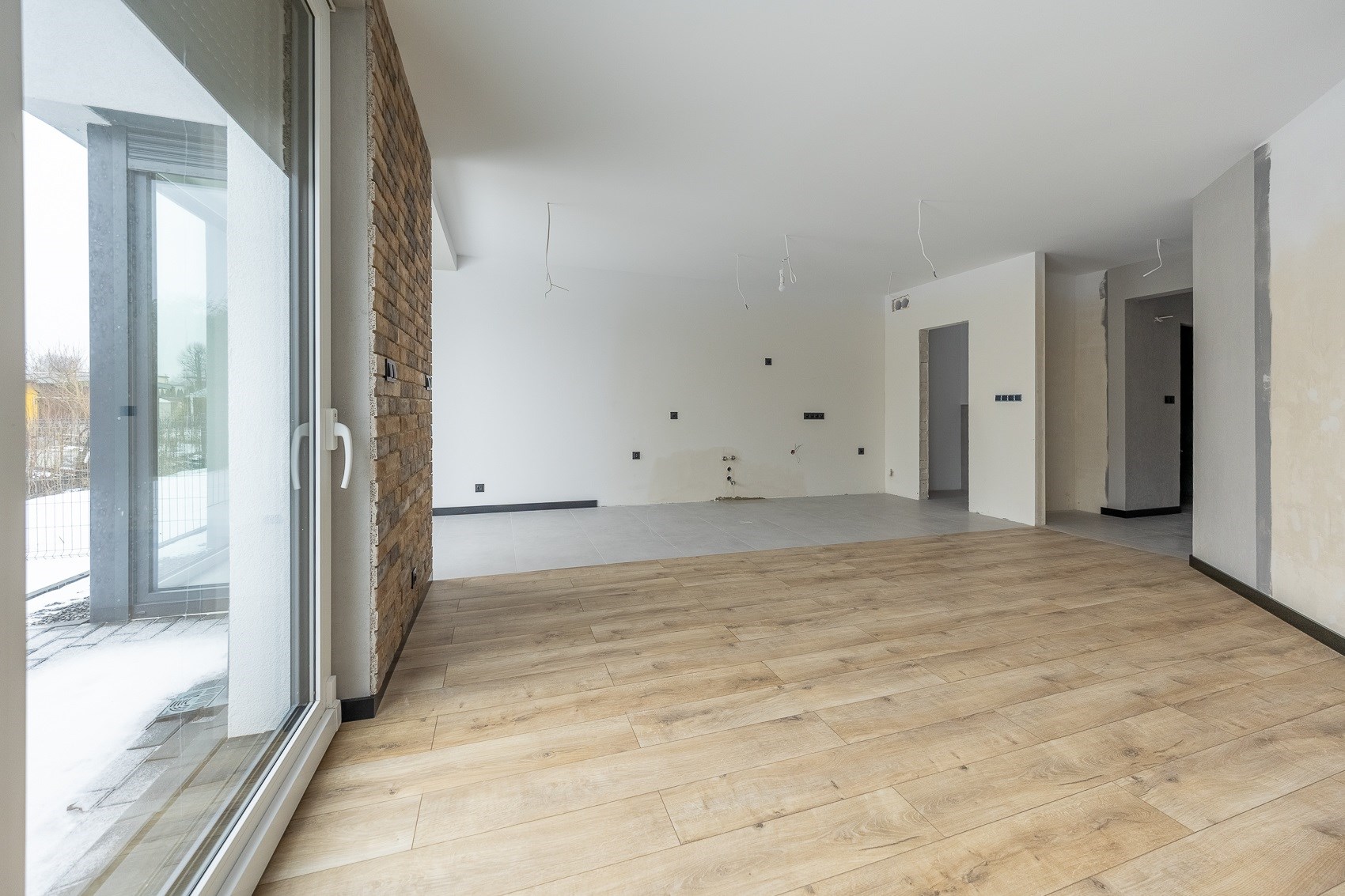 Wnętrze jest przygotowane „pod Ciebie”: wykończona łazienka, dekoracyjne płytki na ścianach i ułożone podłogi. Pozostałą część przestrzeni – jak wymarzoną kuchnię, drzwi czy oświetlenie – zaaranżujesz według własnego projektu. To idealne rozwiązanie, jeśli chcesz mieć wpływ na detale, zachowując przy tym atrakcyjną cenę.