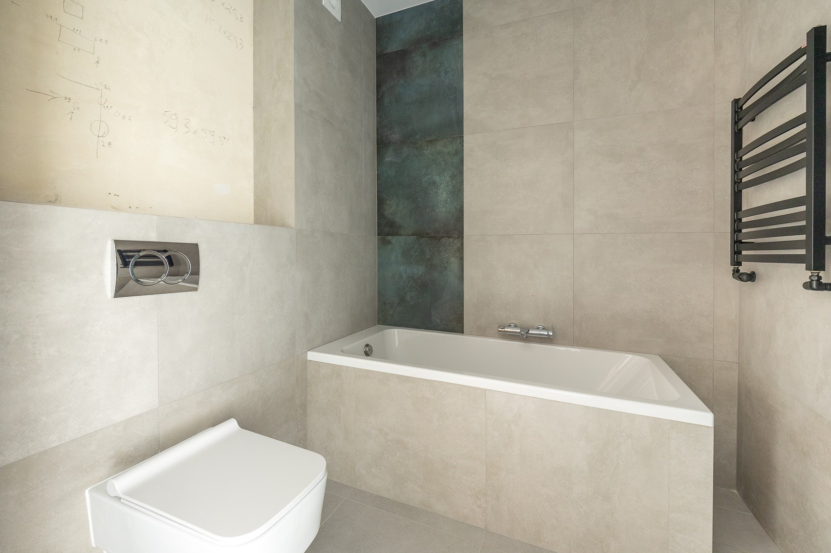- Wysoki standard: Najtrudniejsze prace masz z głowy! Podłogi są ułożone, dekoracyjne płytki zdobią ściany, a łazienka wykończona jest w nowoczesnym stylu.