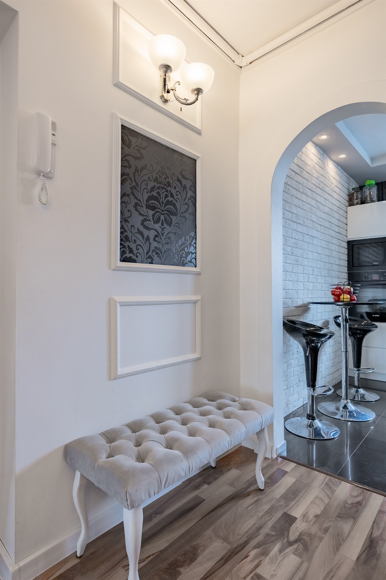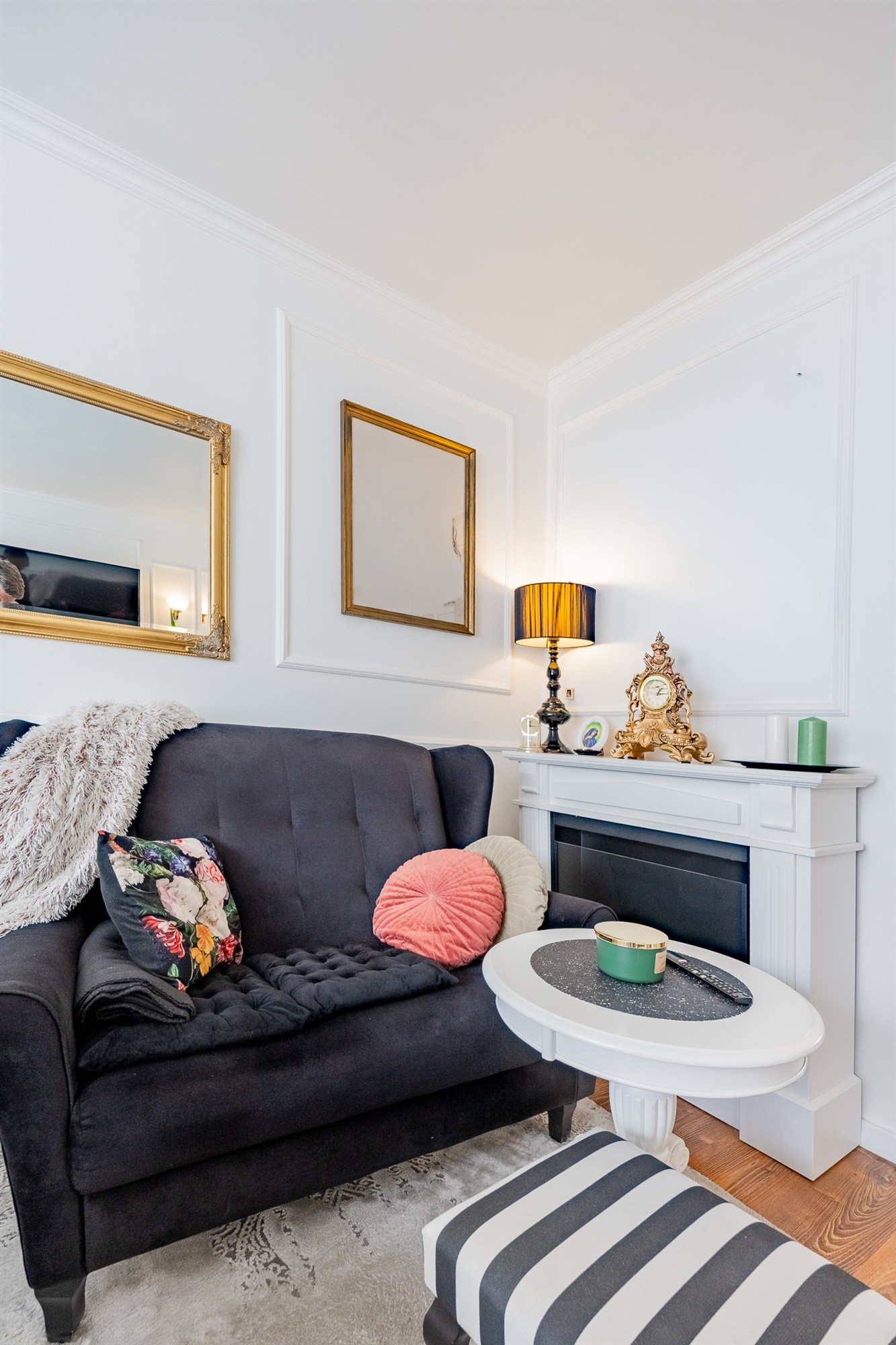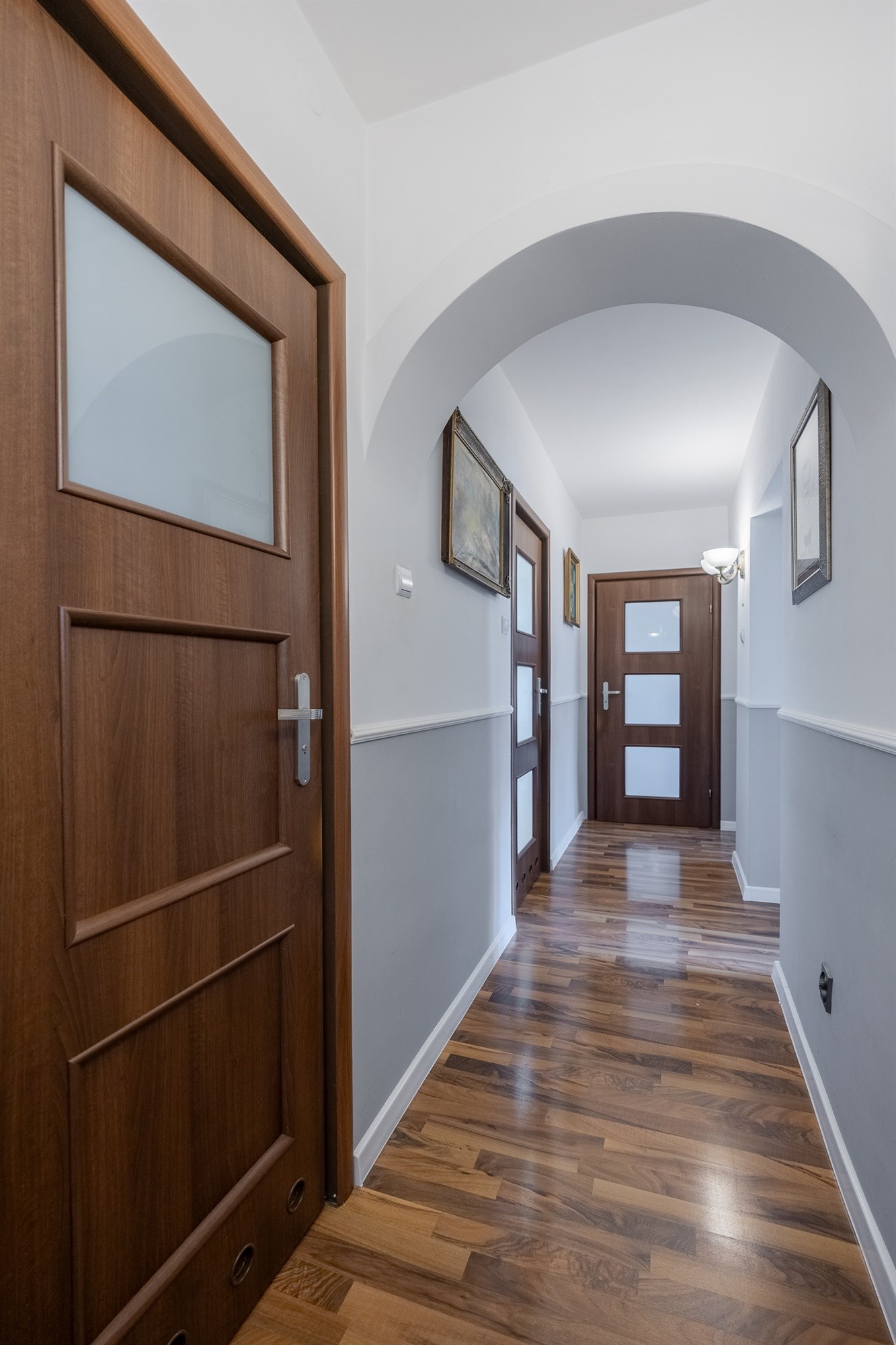Wnętrze zostało stylowo wykończone – gładzie na ścianach, elegancka sztukateria, spójna i ponadczasowa estetyka, która tworzy przytulną, reprezentacyjną przestrzeń.