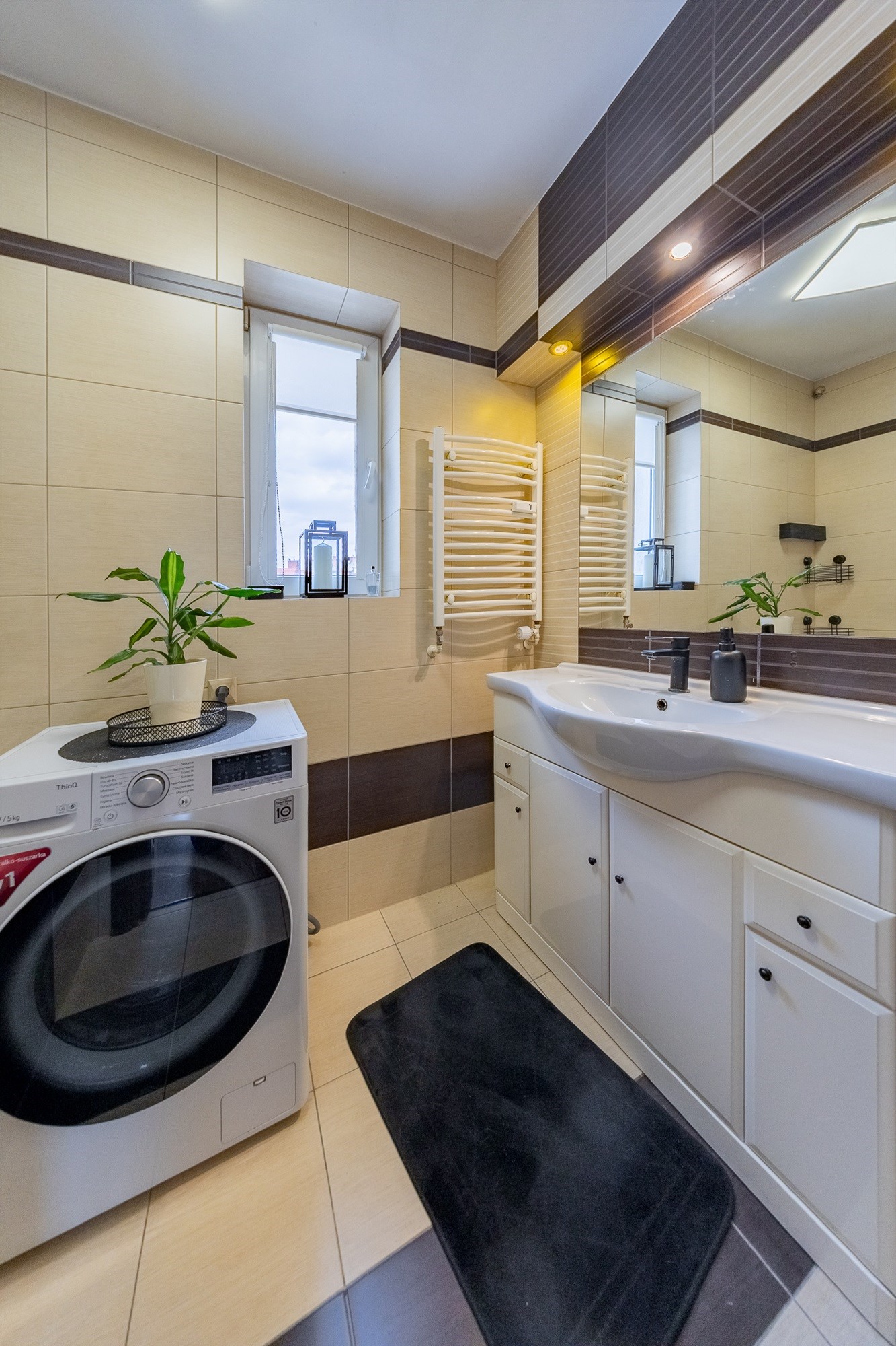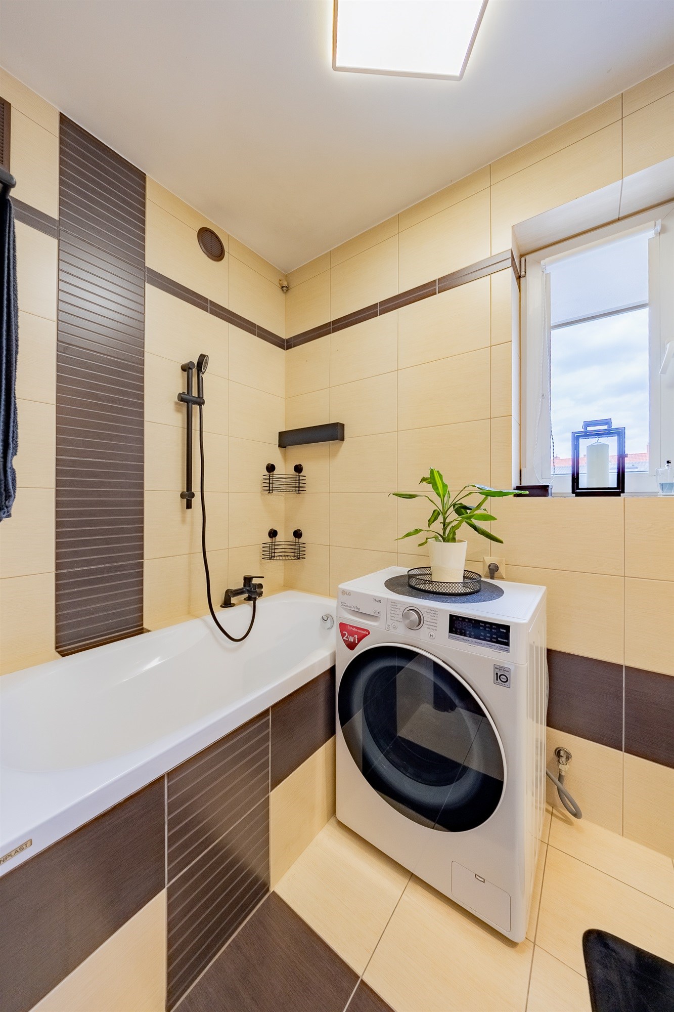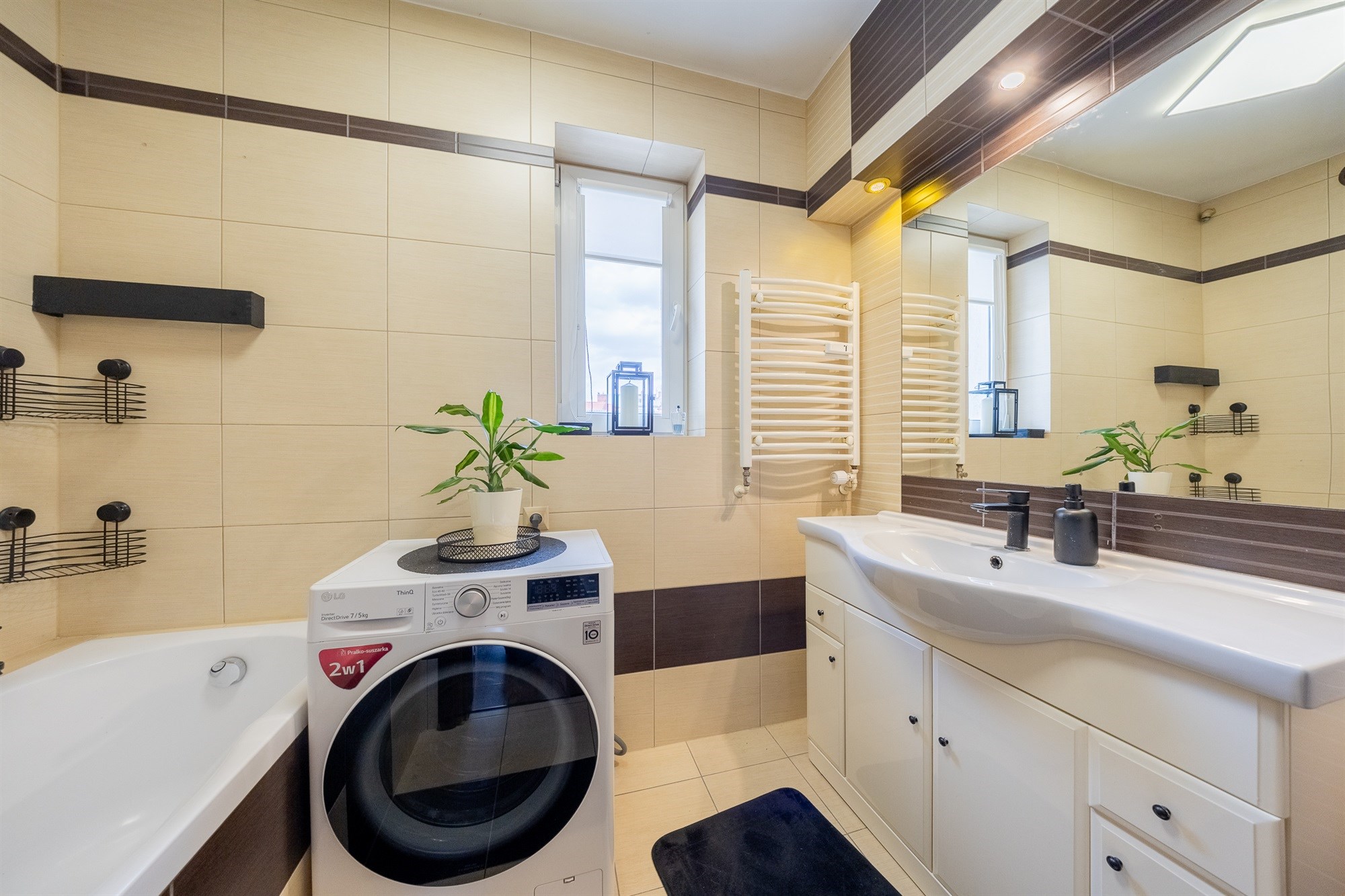 Dużym atutem jest łazienka z oknem, zapewniająca naturalne światło i możliwość skutecznej wentylacji.