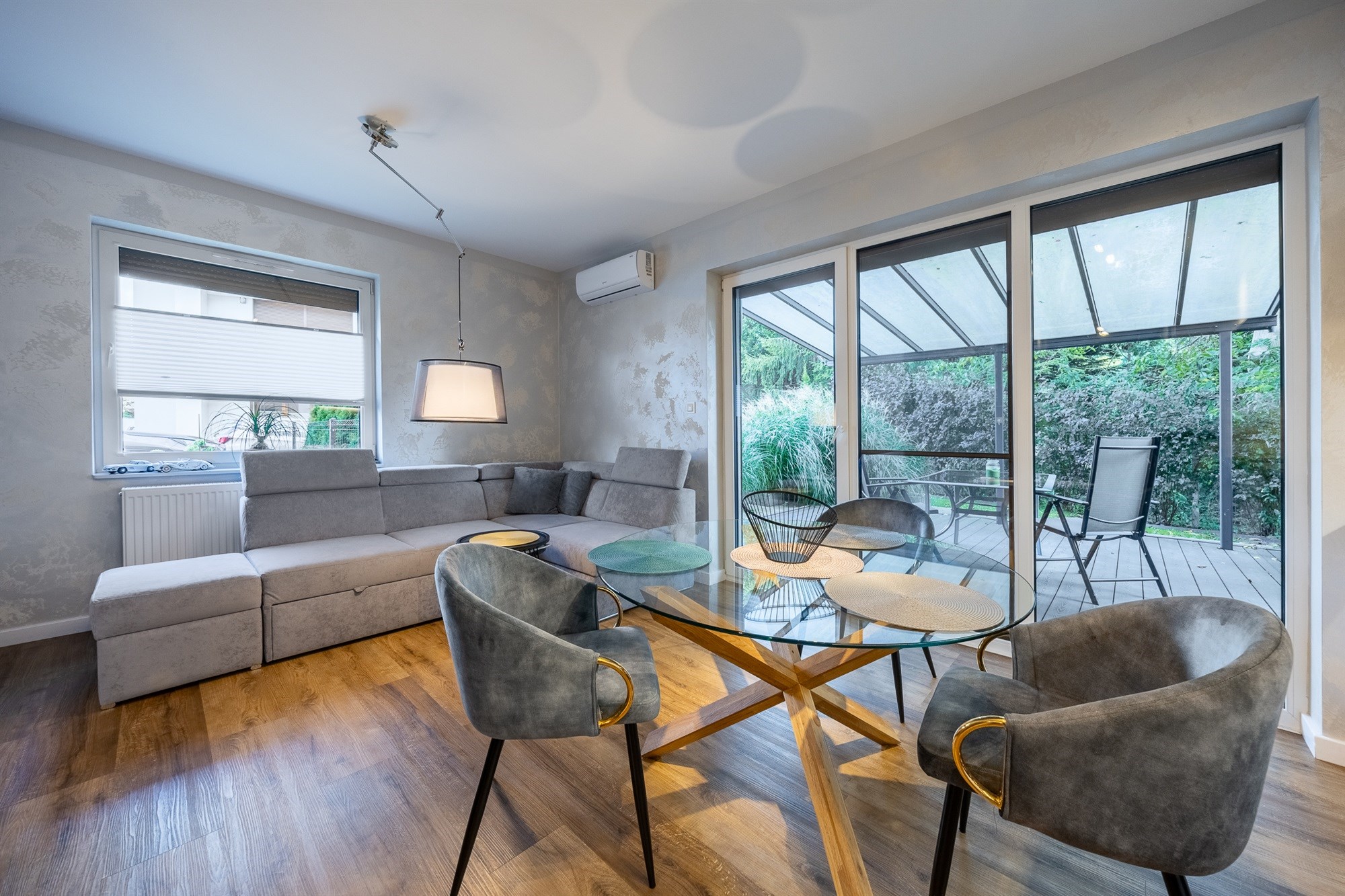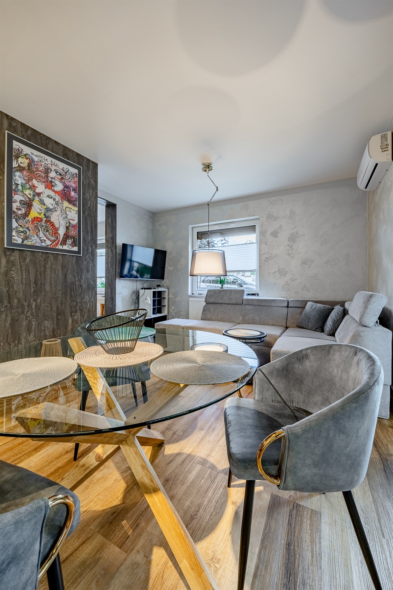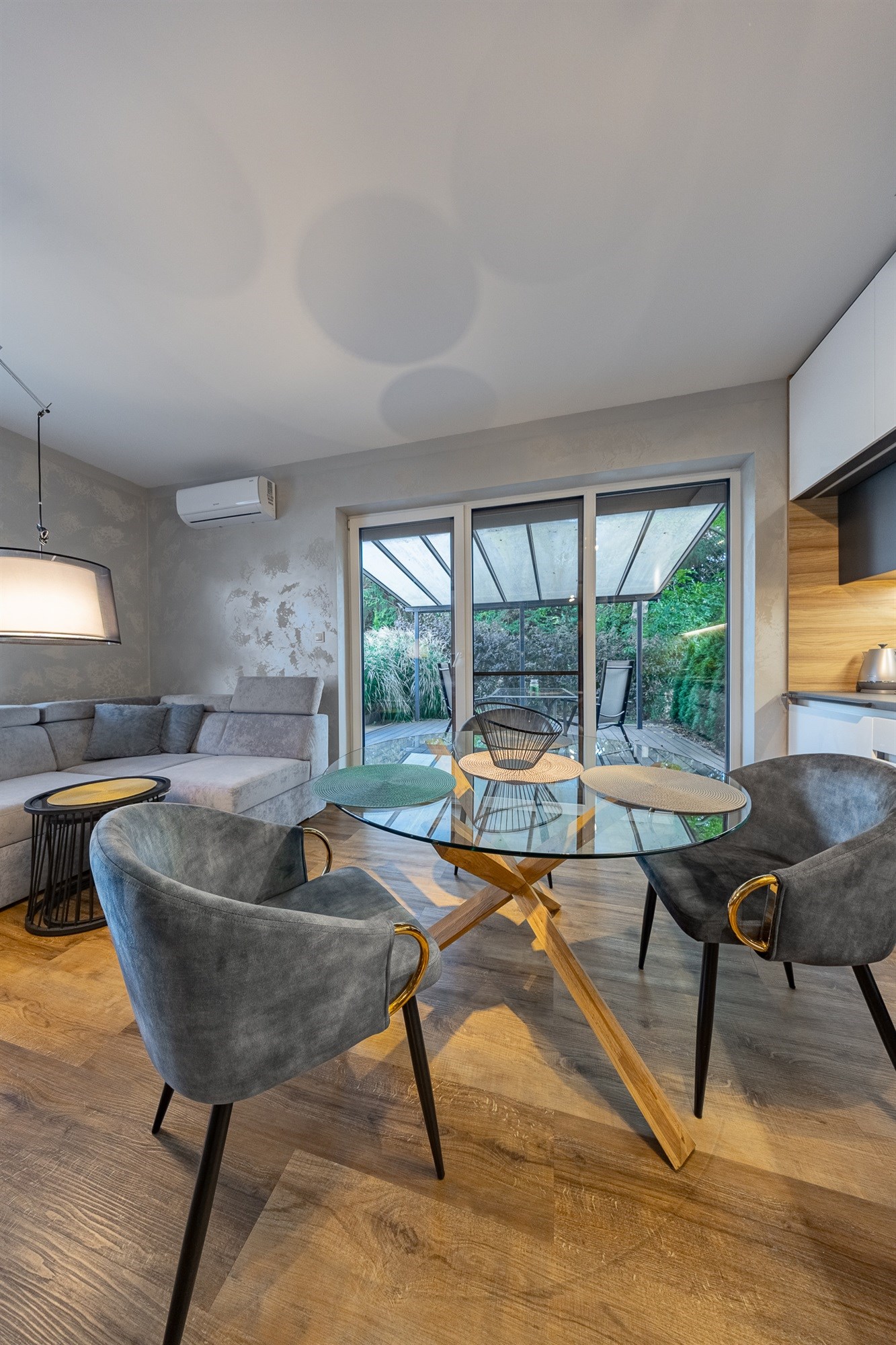 Mieszkanie sprzedawane jest z całym wyposażeniem – gotowe do natychmiastowego wprowadzenia się. Każdy element wnętrza i ogrodu został zaprojektowany z myślą o komforcie codziennego życia.